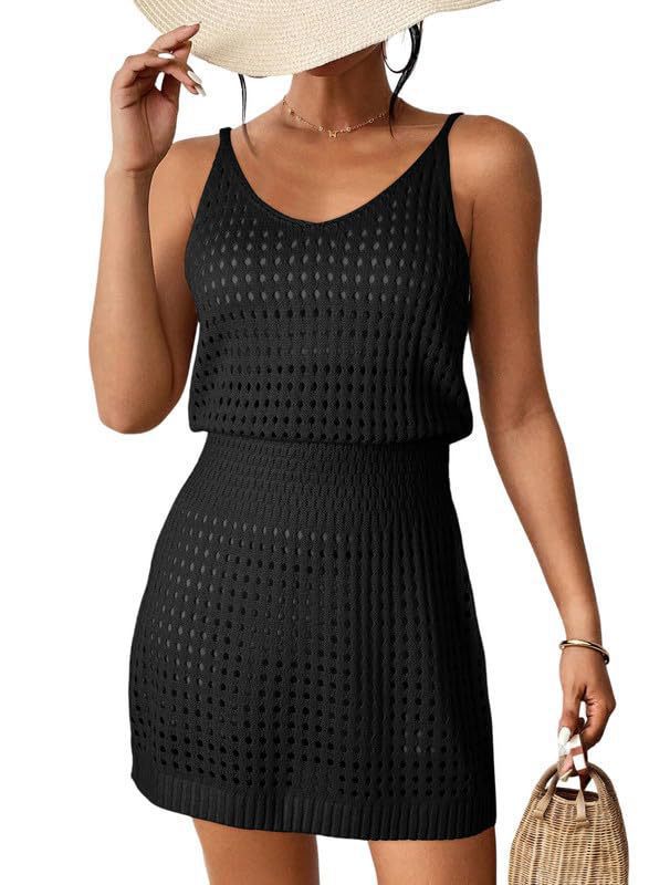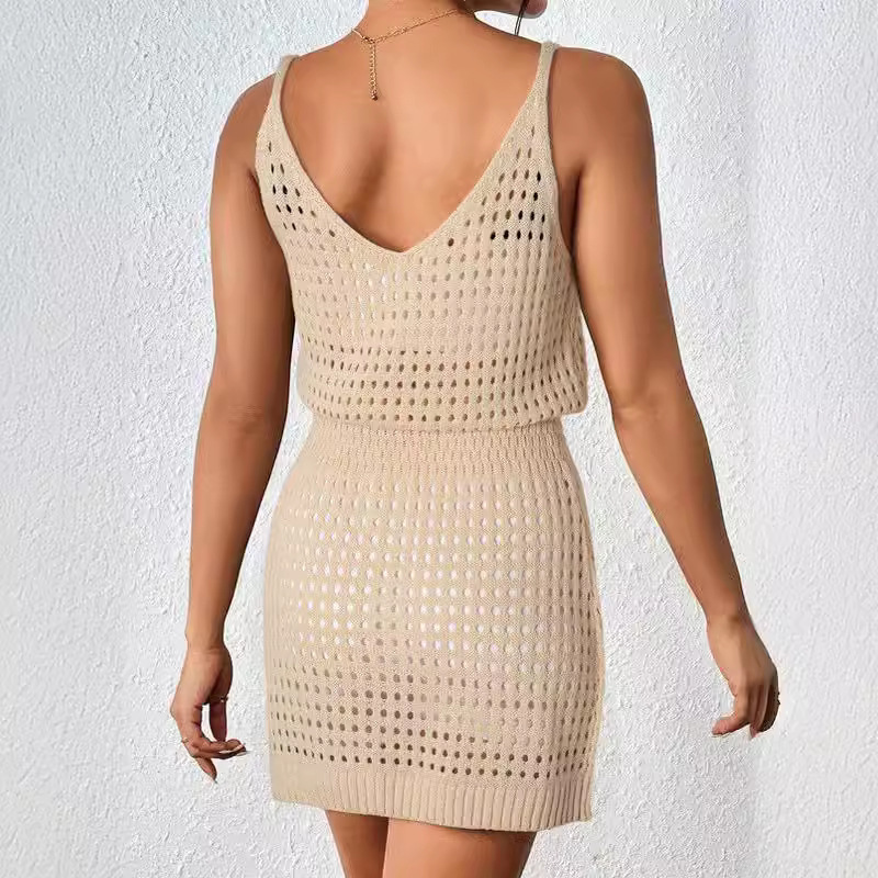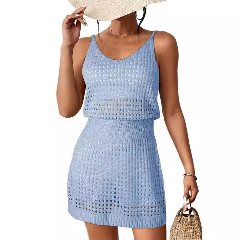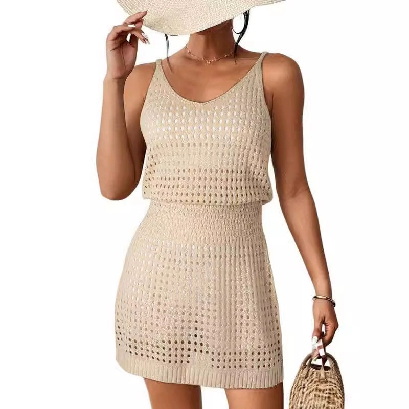 2025 여름 유럽과 미국의 크로스보더 크로셰 중공 니트 비치 수영복 스웨터 커버 아마존 휴가 드레스
