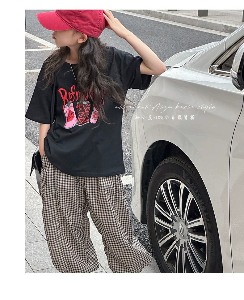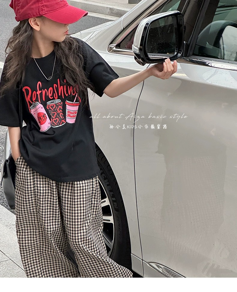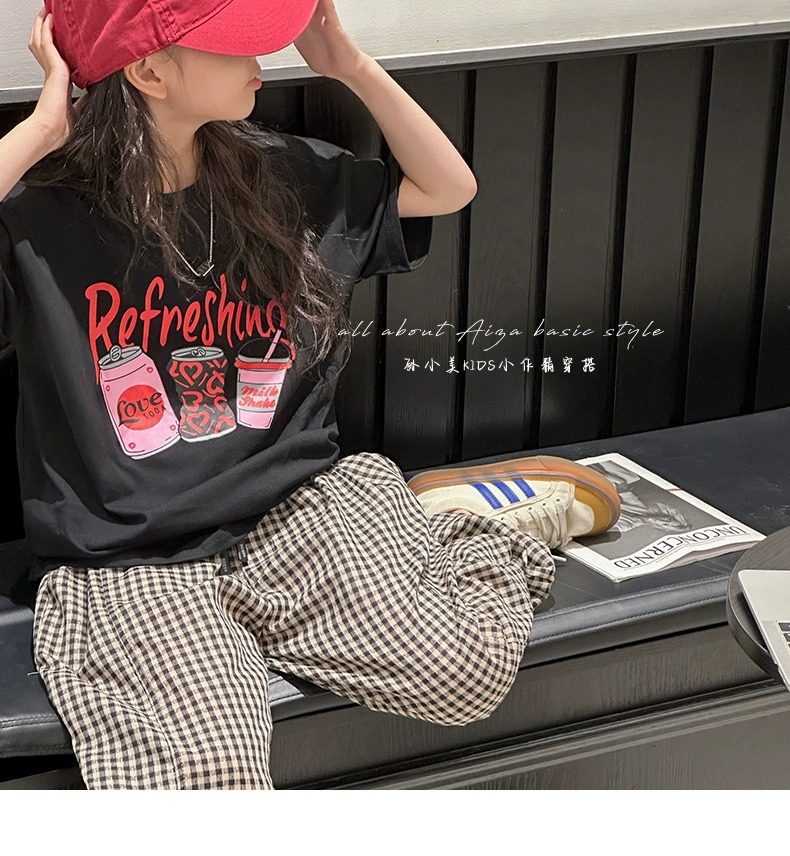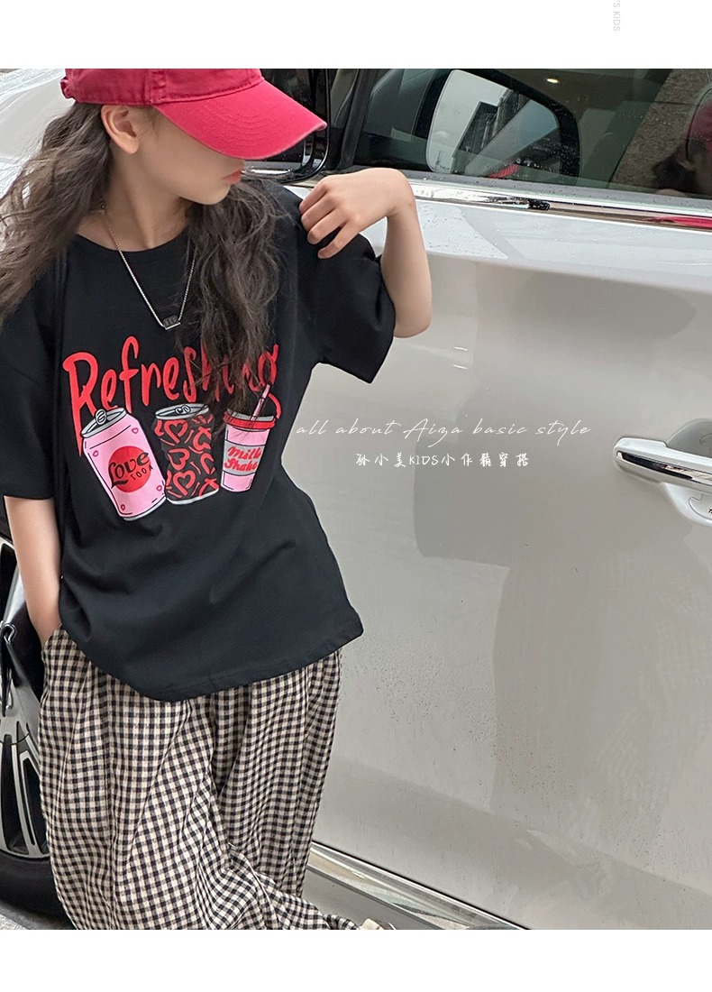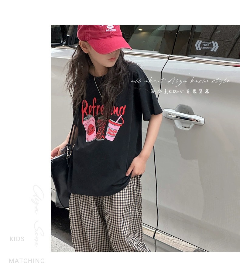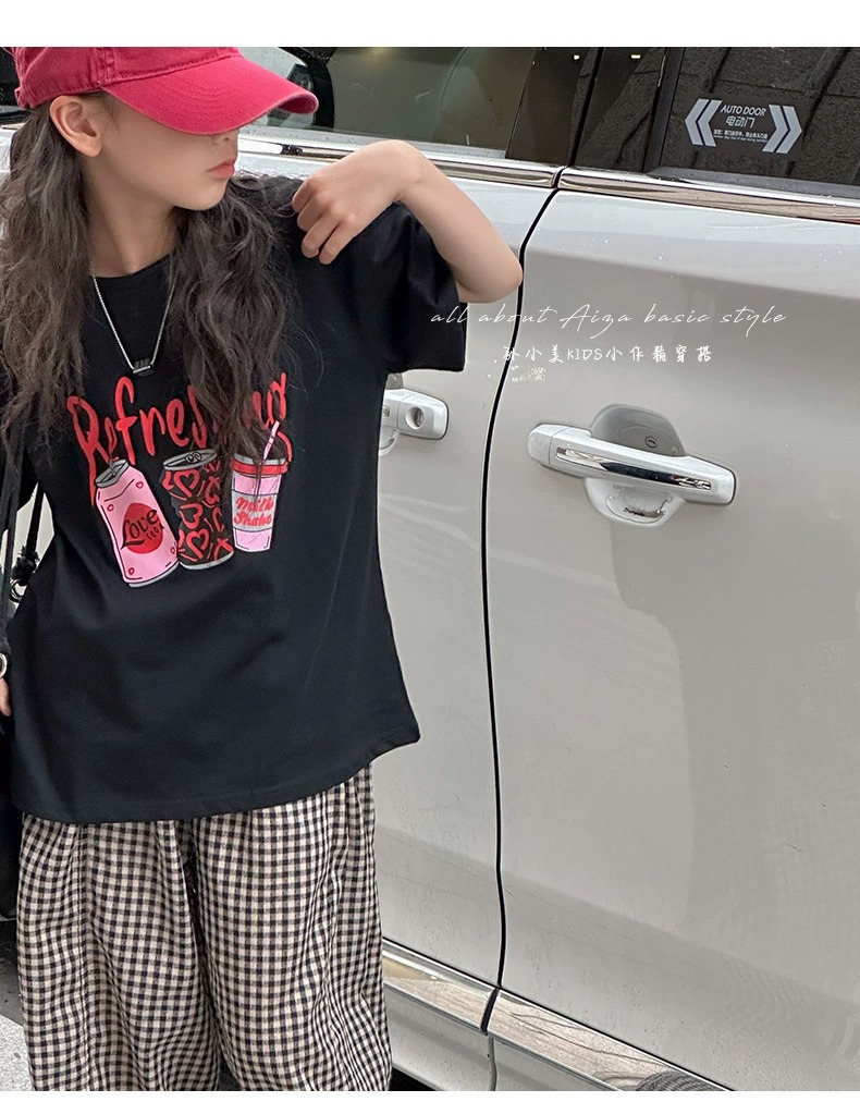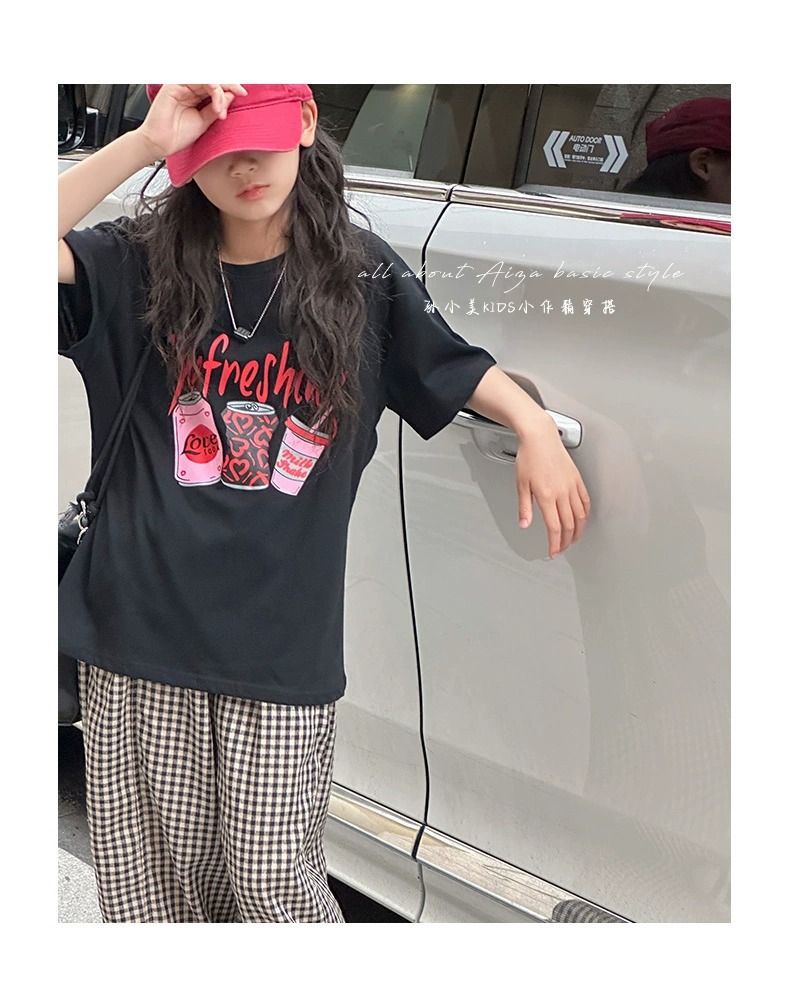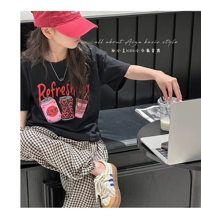 한국 아동복 여아 반팔 티셔츠 아동 상의 2026 여름 신상 중대형 아동용 티셔츠 루즈핏 블랙 트렌디 티셔츠