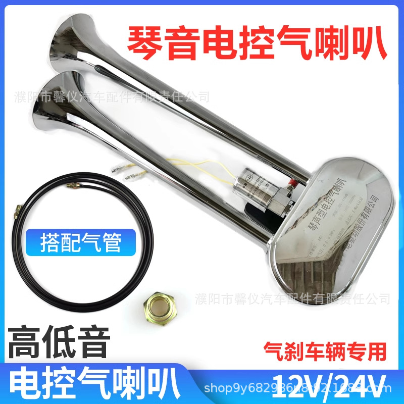 24v 트럭 오르간 에어 경적 12V 버스 대형 트럭 범용 전자 제어 에어 경적 방수 슈퍼 시끄러운 수정 오르간 사운드