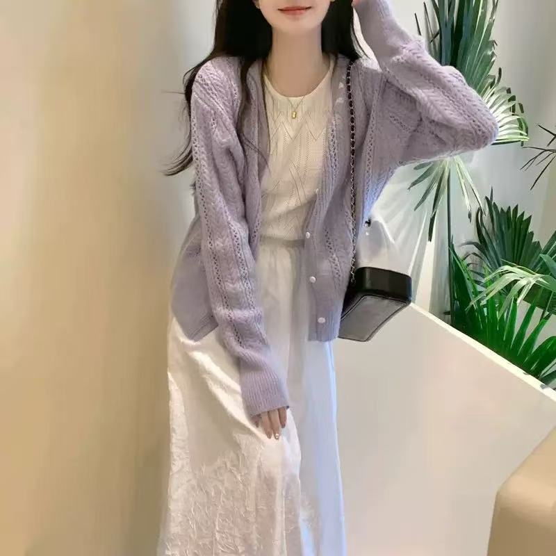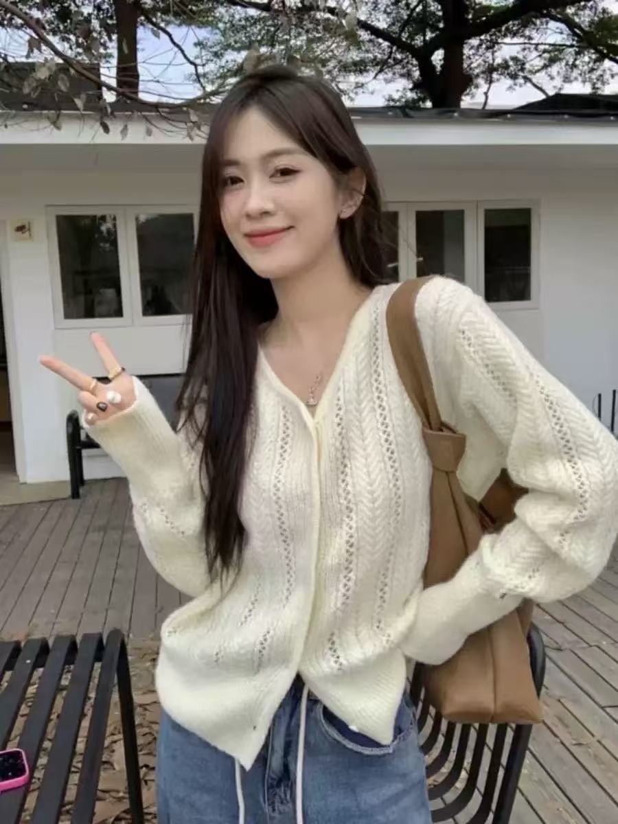 한국어 버전 솔리드 컬러 v 넥 여성 얇은 얼음 실크 셔츠 긴팔 느슨한 니트 카디건 2025 봄 새 코트 여름스토어 가기