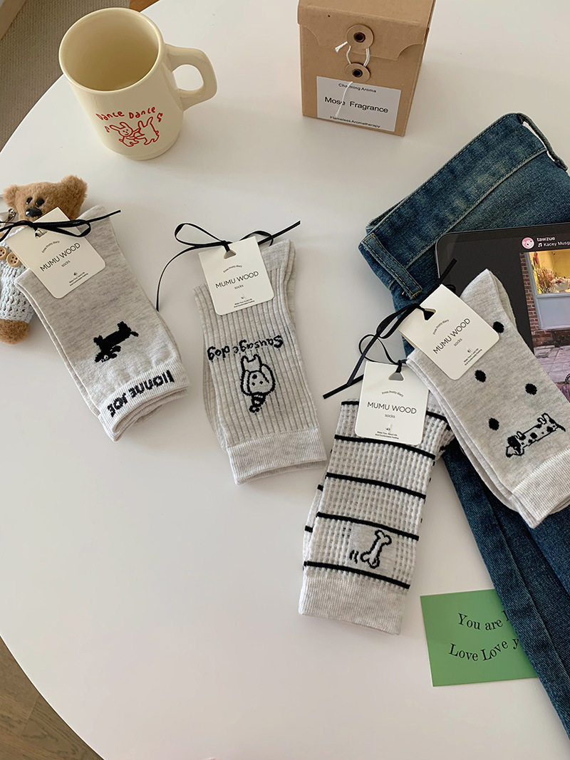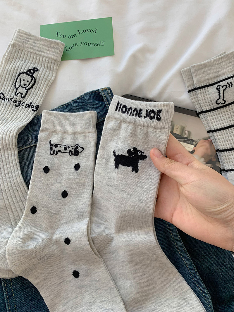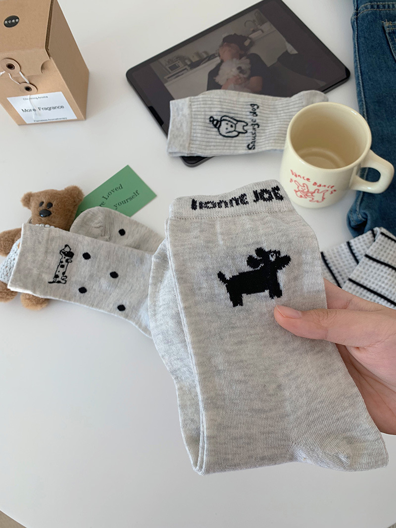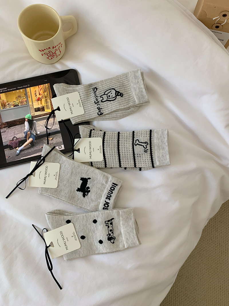 양말 여성의 얇은 줄무늬 만화 강아지 양말 봄과 여름 귀여운 메쉬 중공 폴카 도트 면 회색 양말스토어 가기