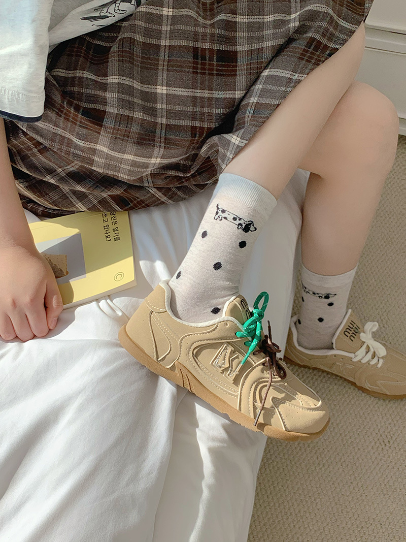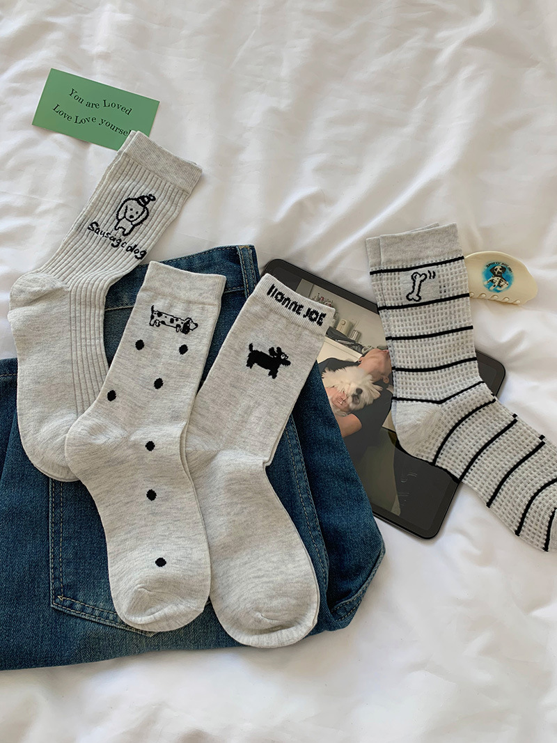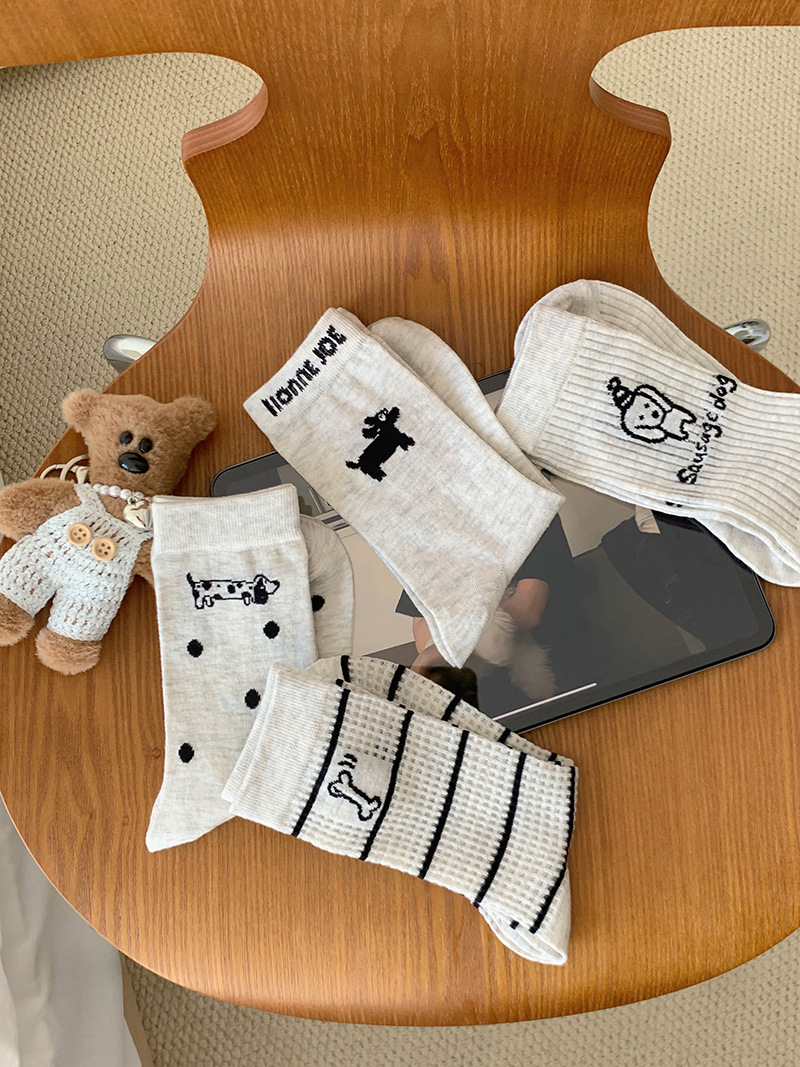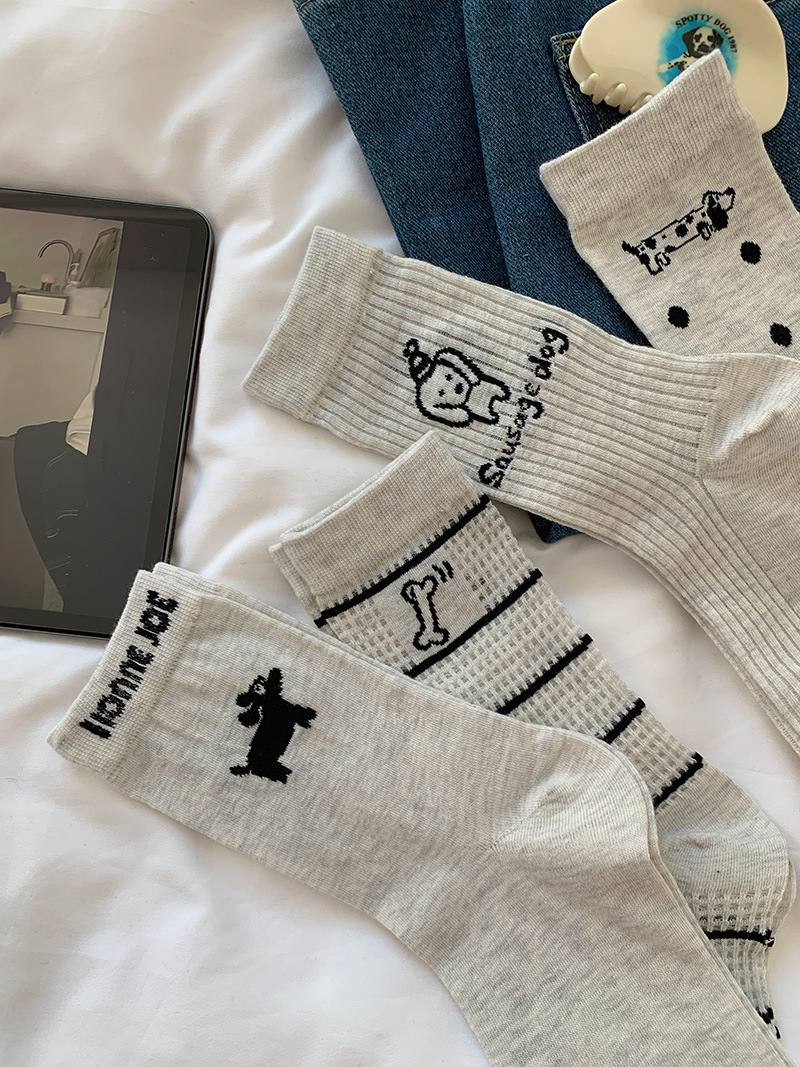 양말 여성의 얇은 줄무늬 만화 강아지 양말 봄과 여름 귀여운 메쉬 중공 폴카 도트 면 회색 양말스토어 가기
