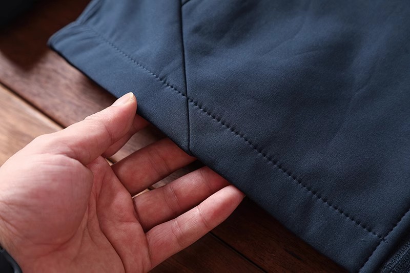 走线针脚紧密工整,内里包括袖子都是荃方位的包边包条加固,非常耐穿