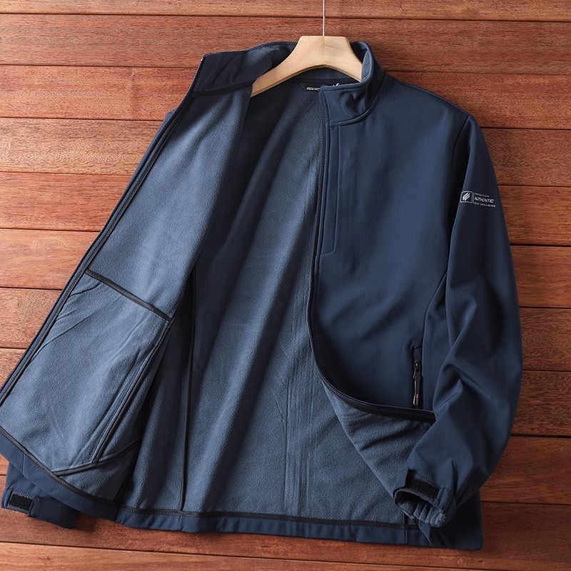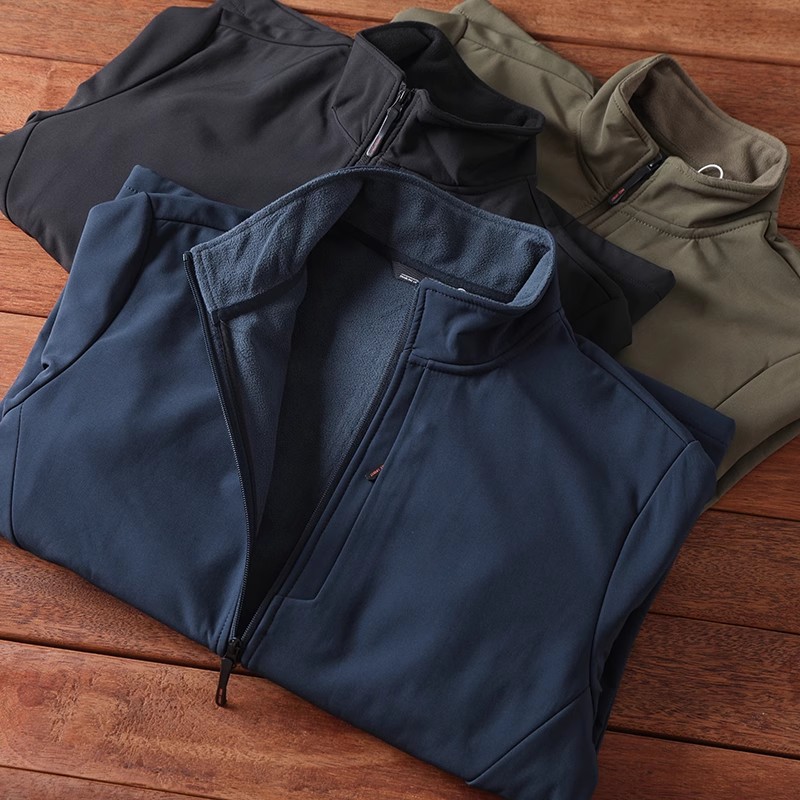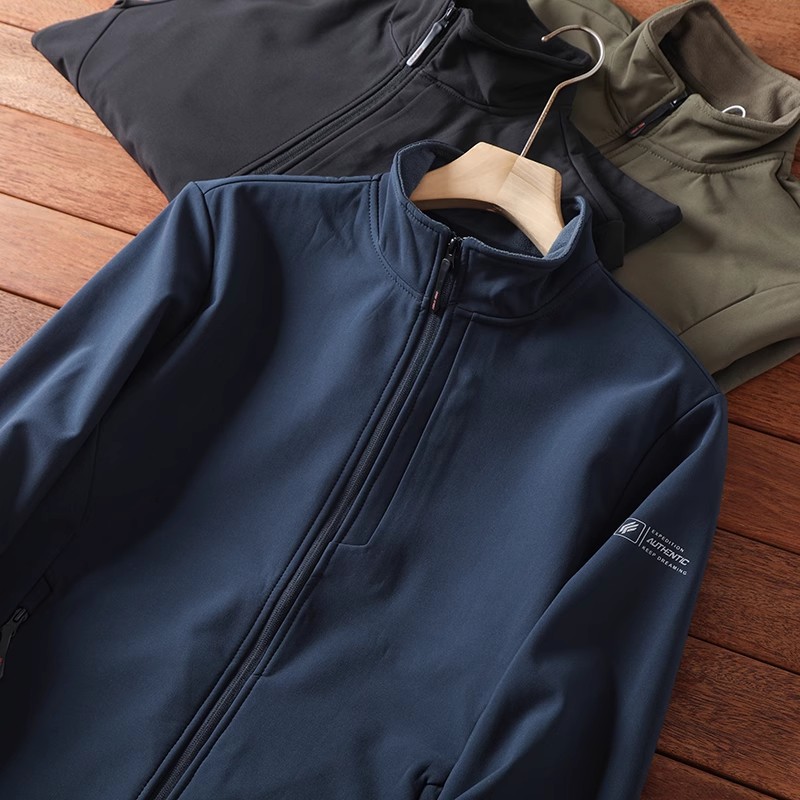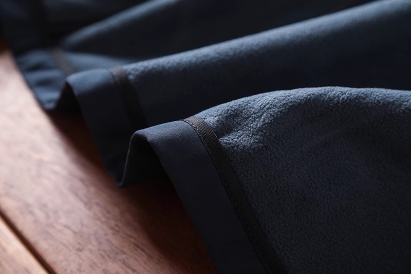 進口的面料,采用三层的复合软壳,科技外层+TPU中层+摇粒绒内层