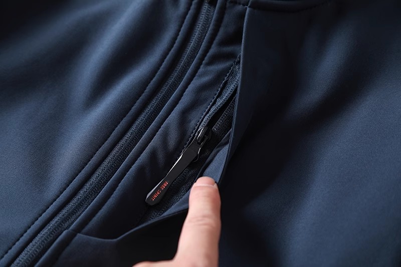 胸口隐藏式拉链袋,两侧口袋也都是拉链闭合的,实用方便又安全,外观简洁大气