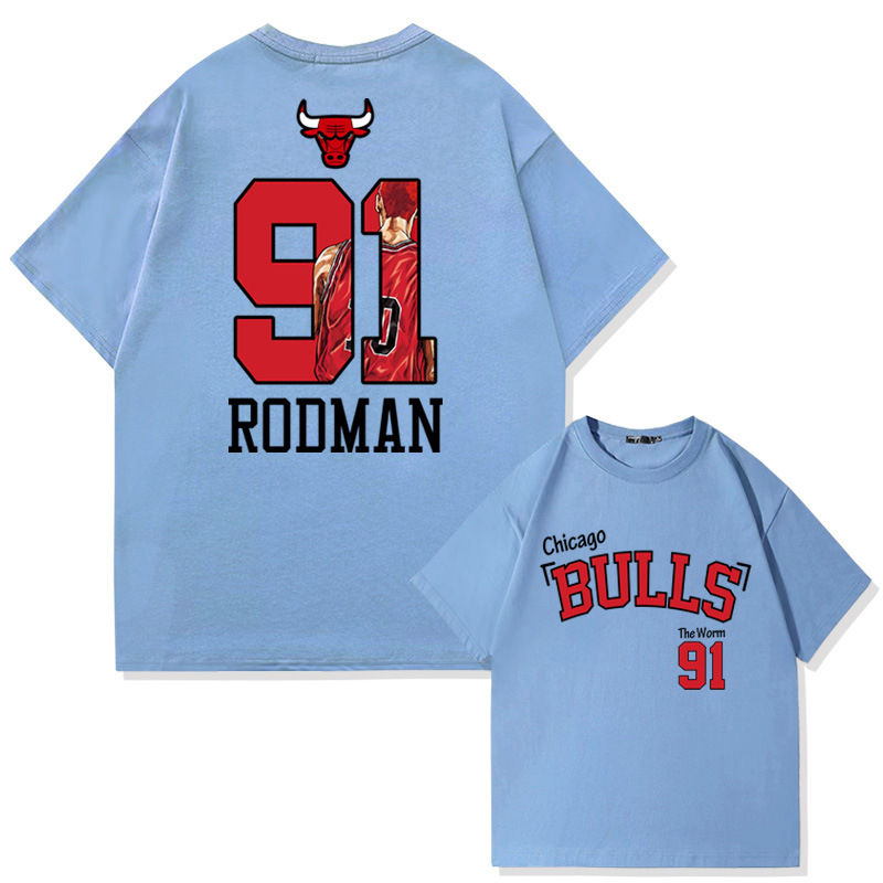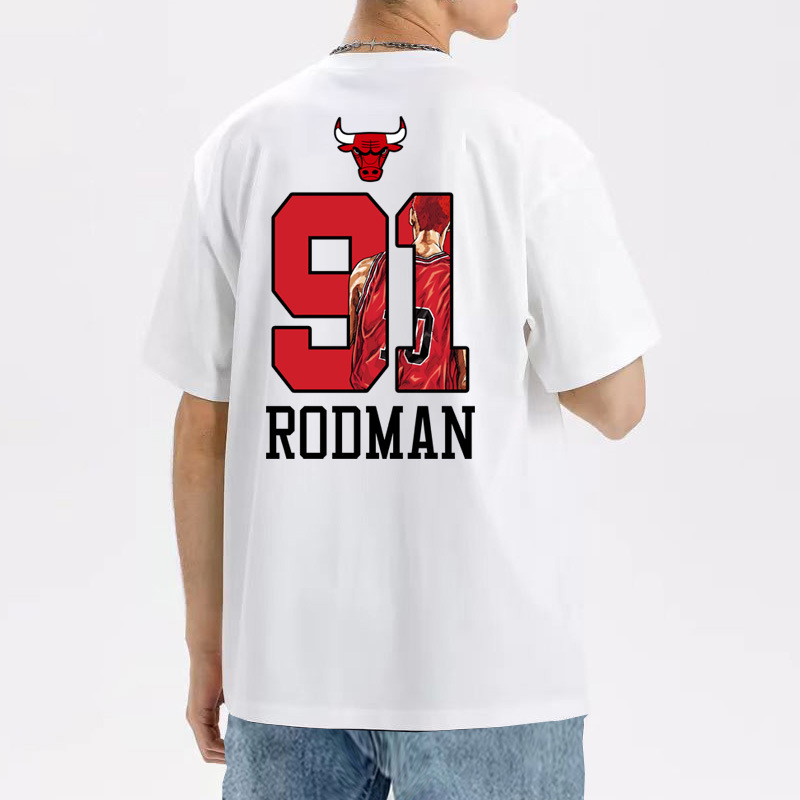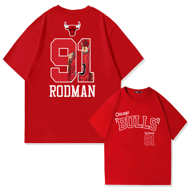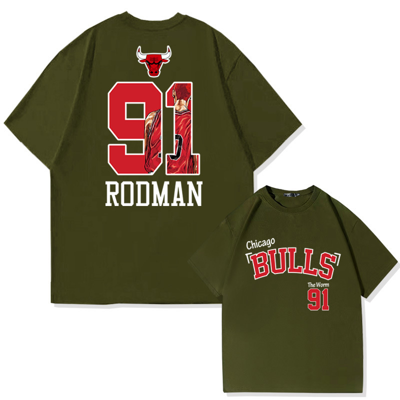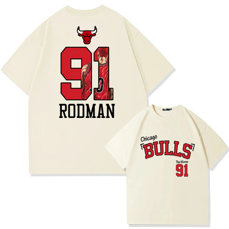 미국 농구 No. 91 Rodman Cotton 반팔 티셔츠 남자 여름 패션 브랜드 느슨한 어깨 반소매 어퍼 옷