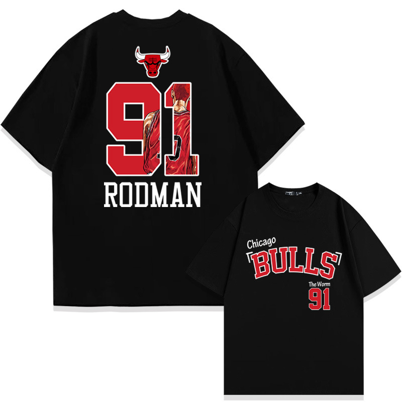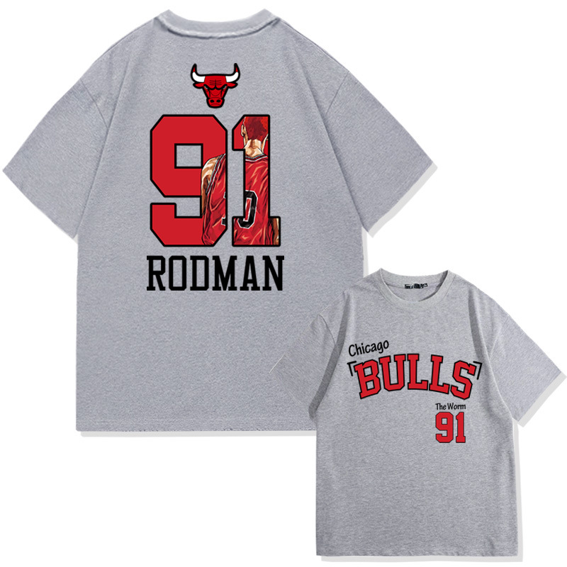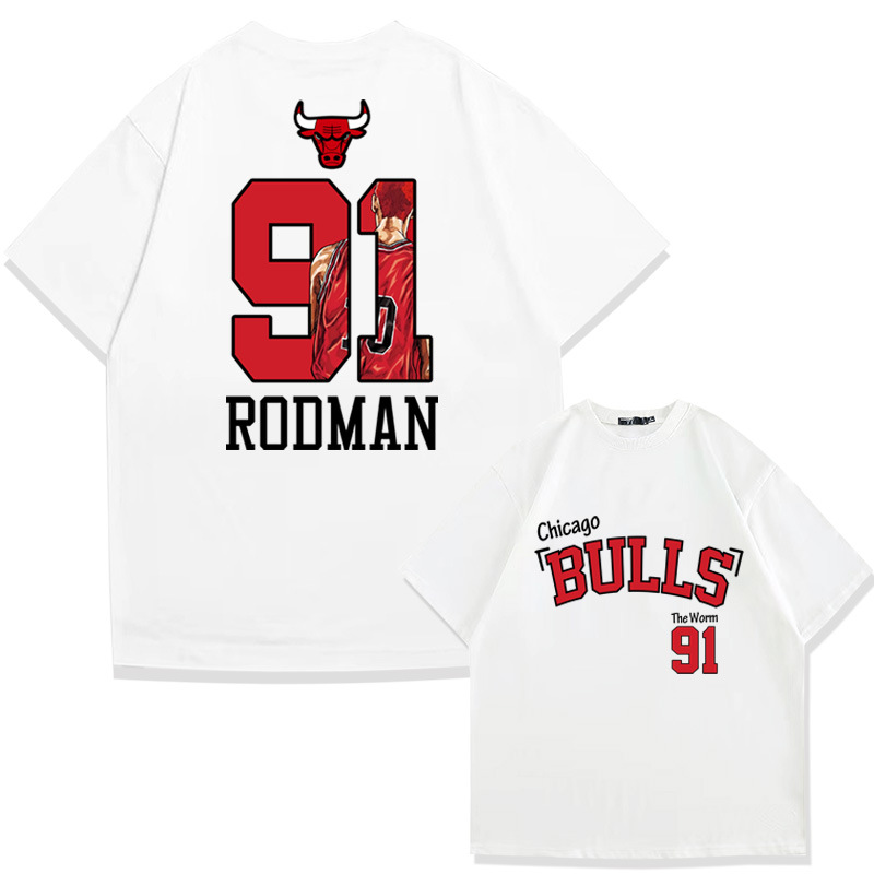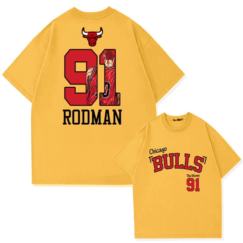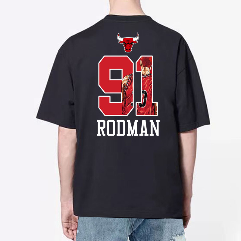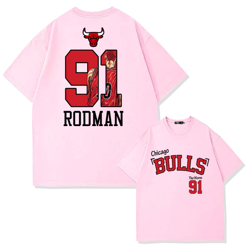 미국 농구 No. 91 Rodman Cotton 반팔 티셔츠 남자 여름 패션 브랜드 느슨한 어깨 반소매 어퍼 옷