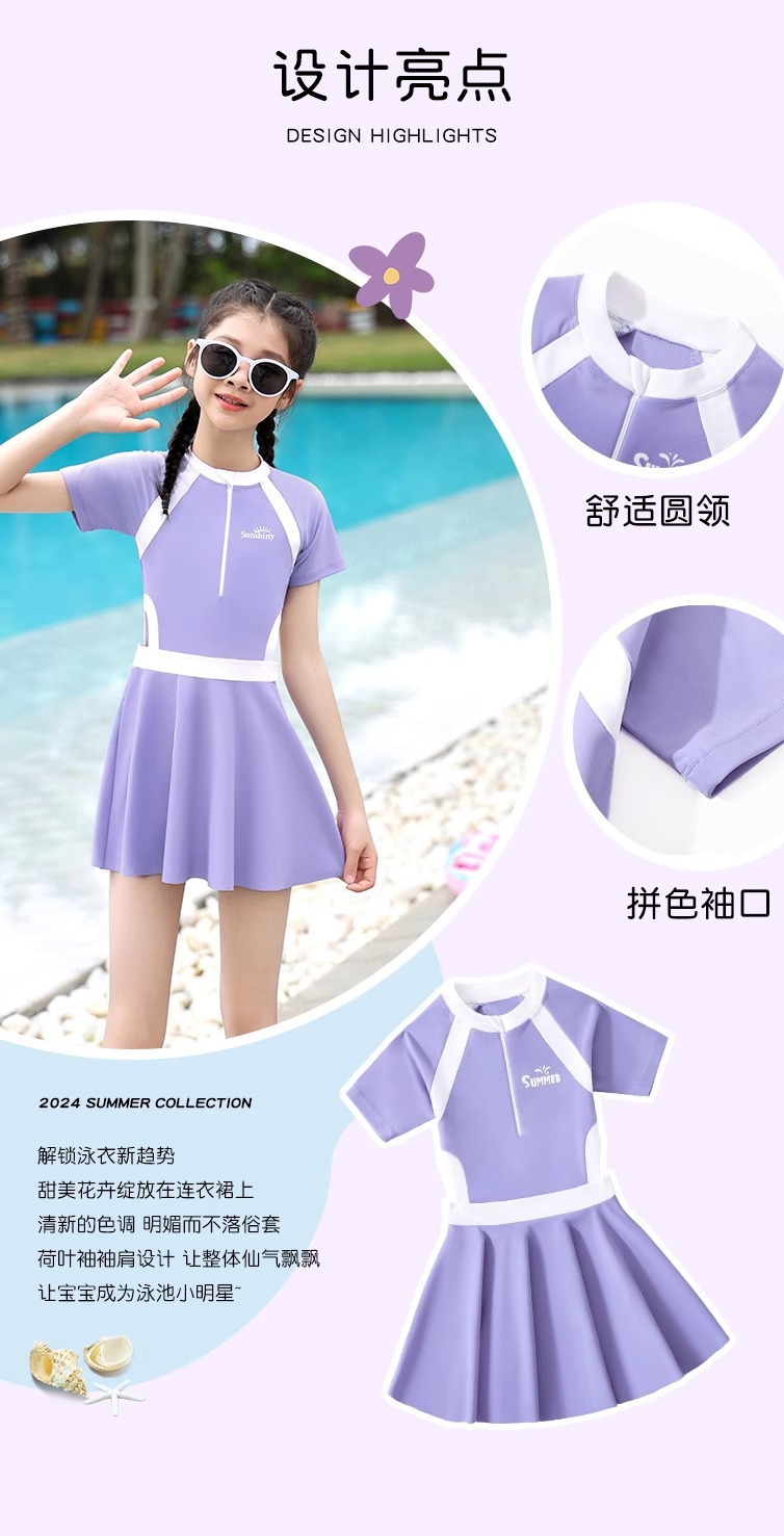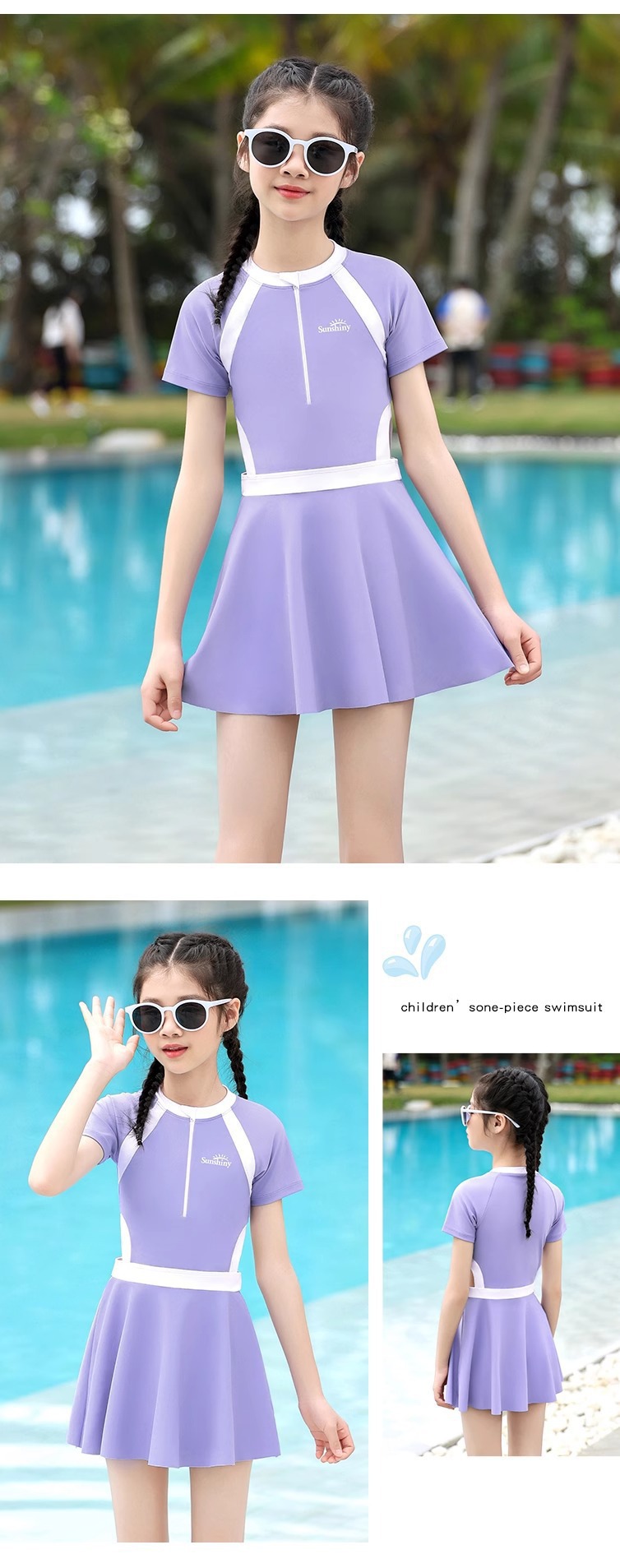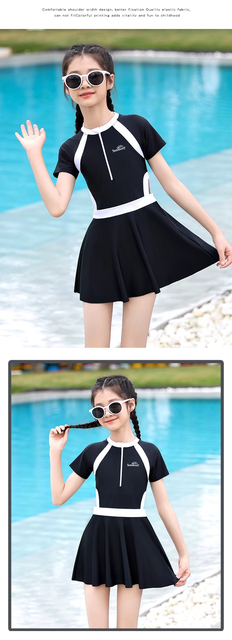 어린이 수영복 2026년 신상 여아용 원피스 스커트 스타일 배색 스포츠 지퍼형 보수적인 온천 수영복스토어 가기