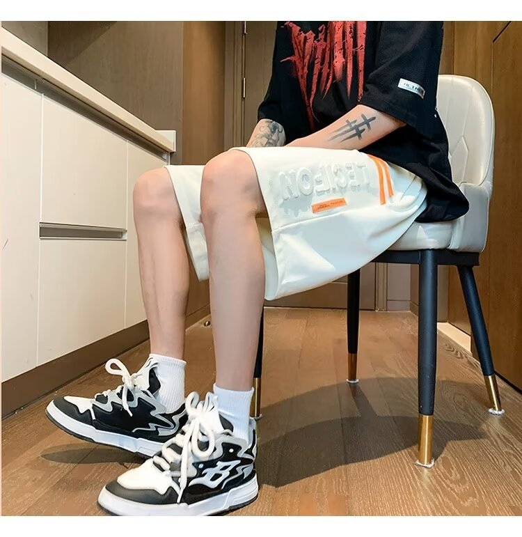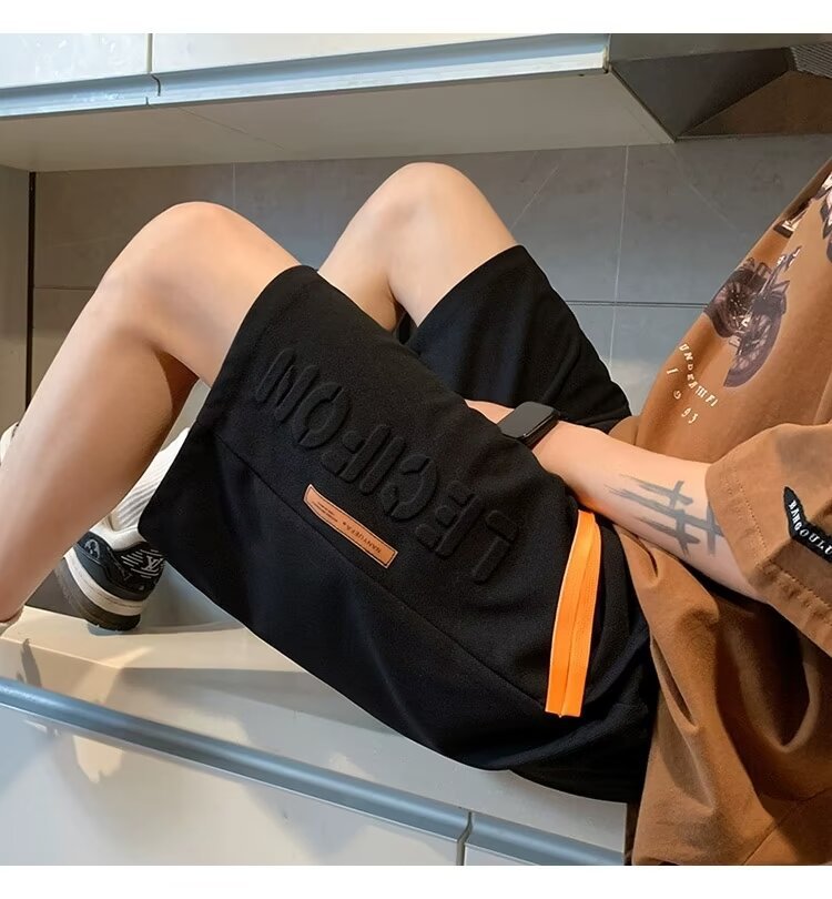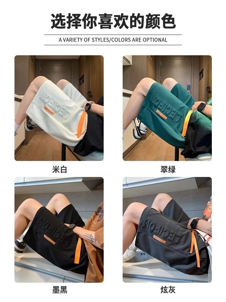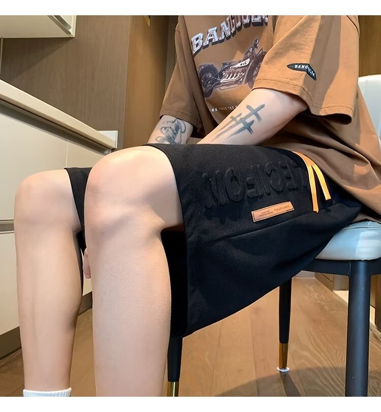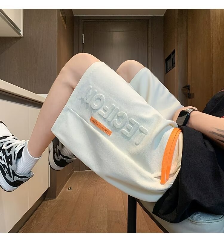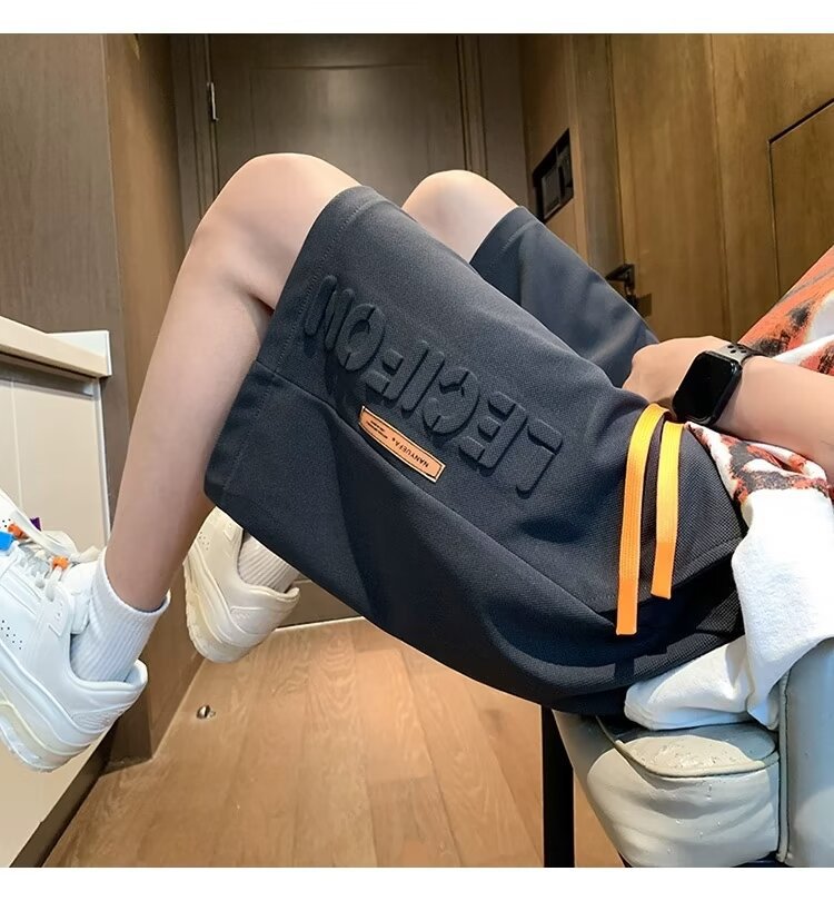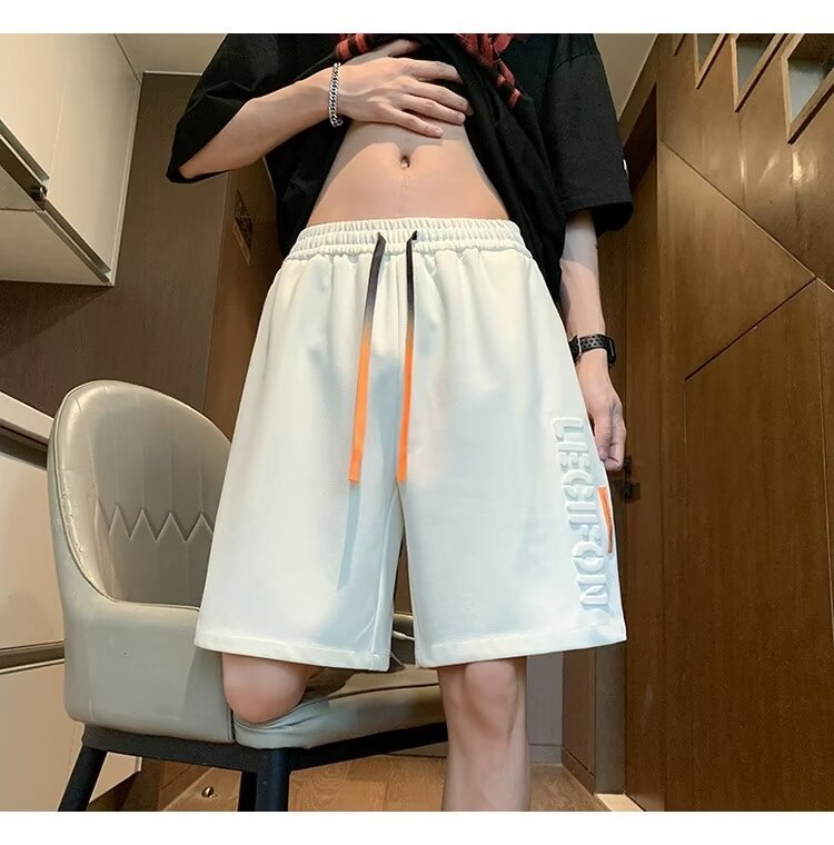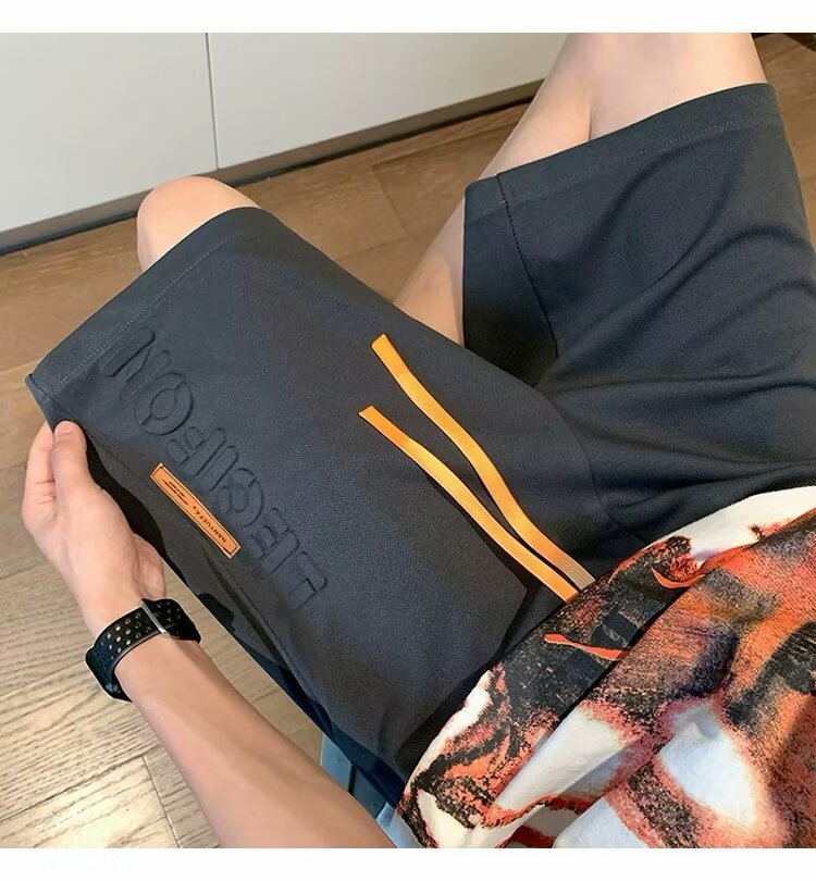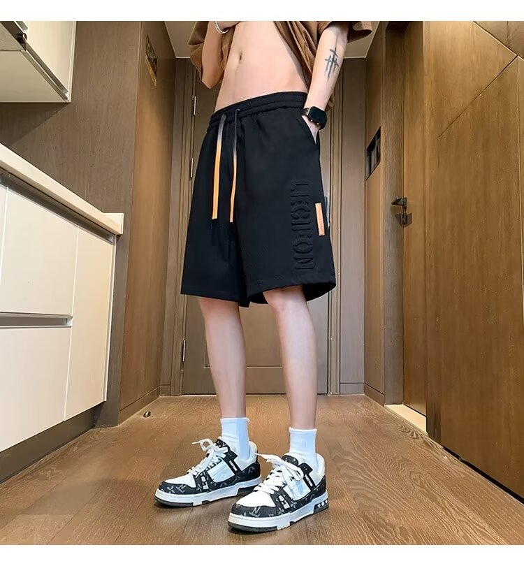 아이스 실크 통기성 여름 반바지 남자 유행 브랜드 편지 양각 5 점 캐주얼 바지 남자 청소년 스포츠 바지