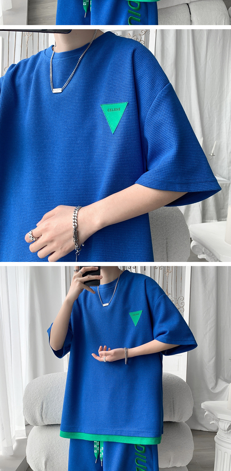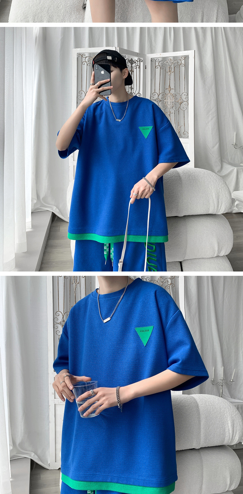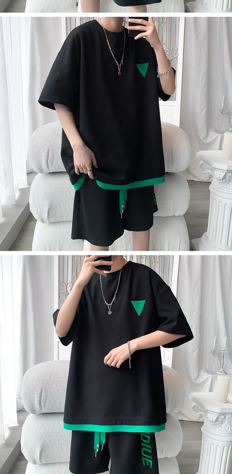 남성용 캐주얼 스포츠 슈트, 여름 와플 트렌디 브랜드 반팔 티셔츠, 남성용 투피스 반바지, 루즈한 옷 세트스토어 가기