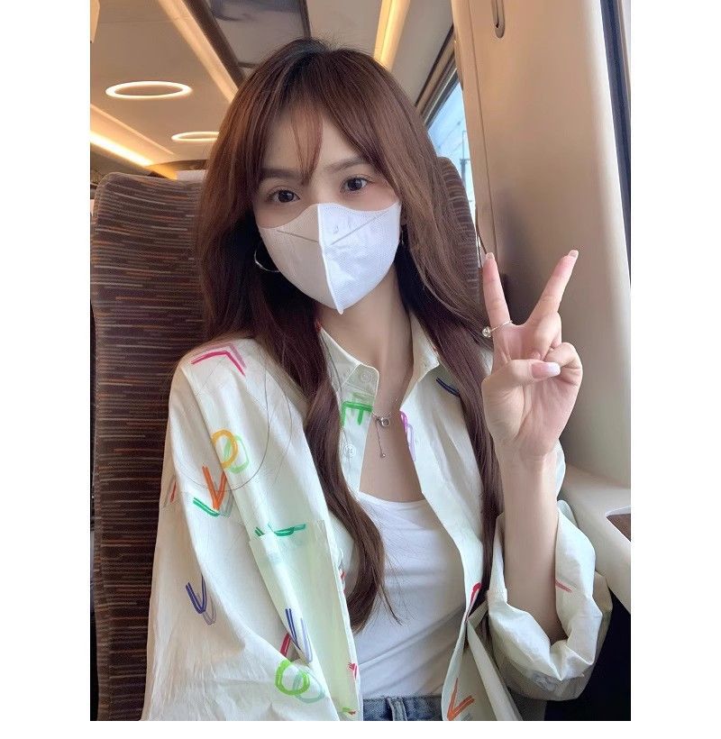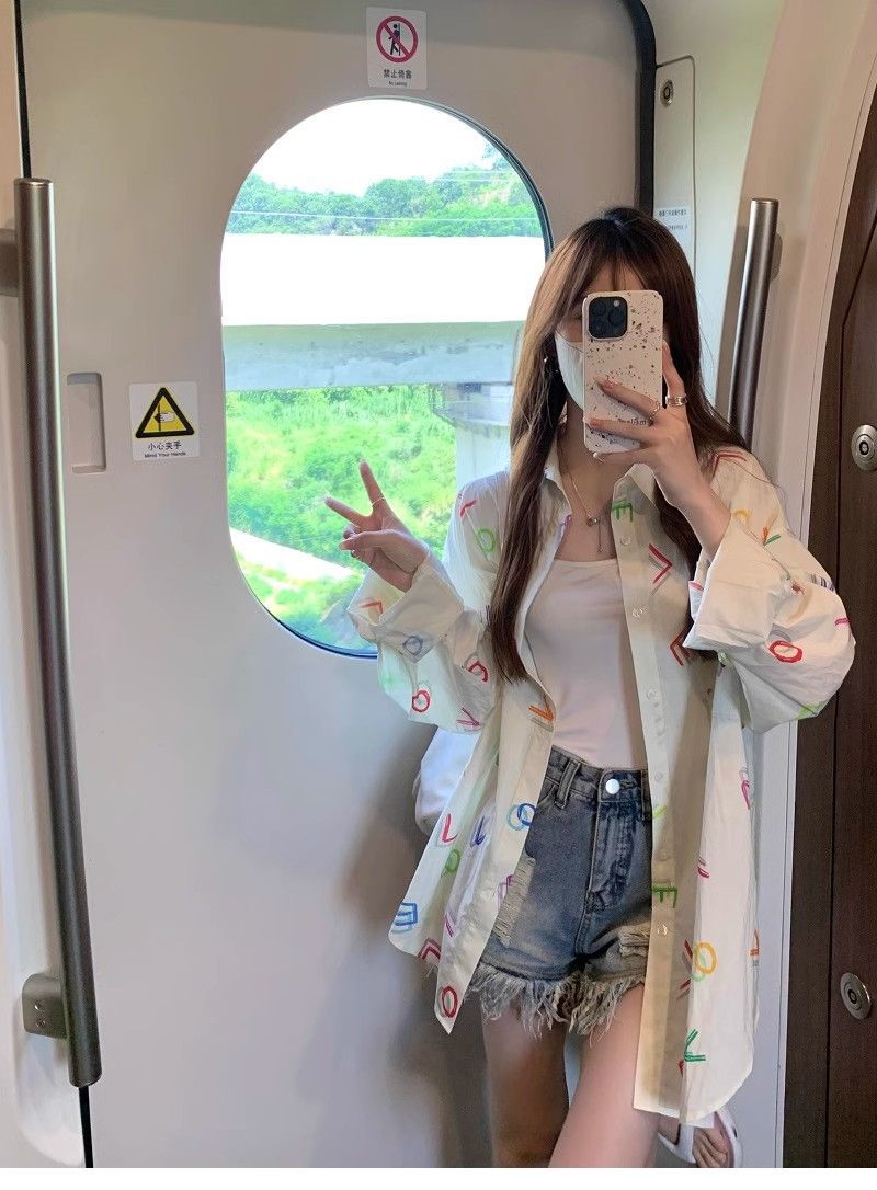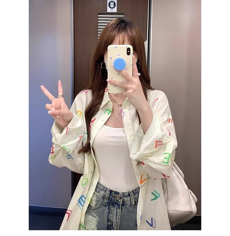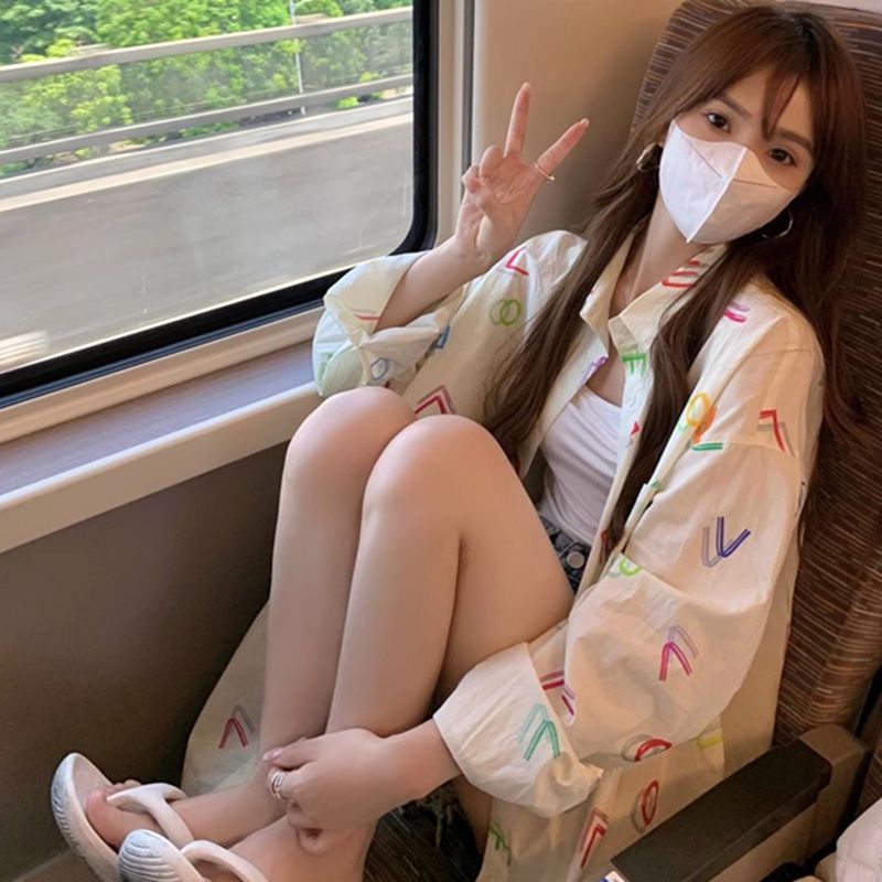 컬러 편지 인쇄 긴팔 선 스크린 셔츠 코트 여성의 여름 중간 길이 느슨한 게으른 캐주얼 셔츠