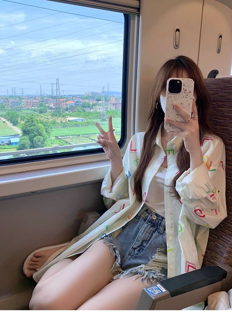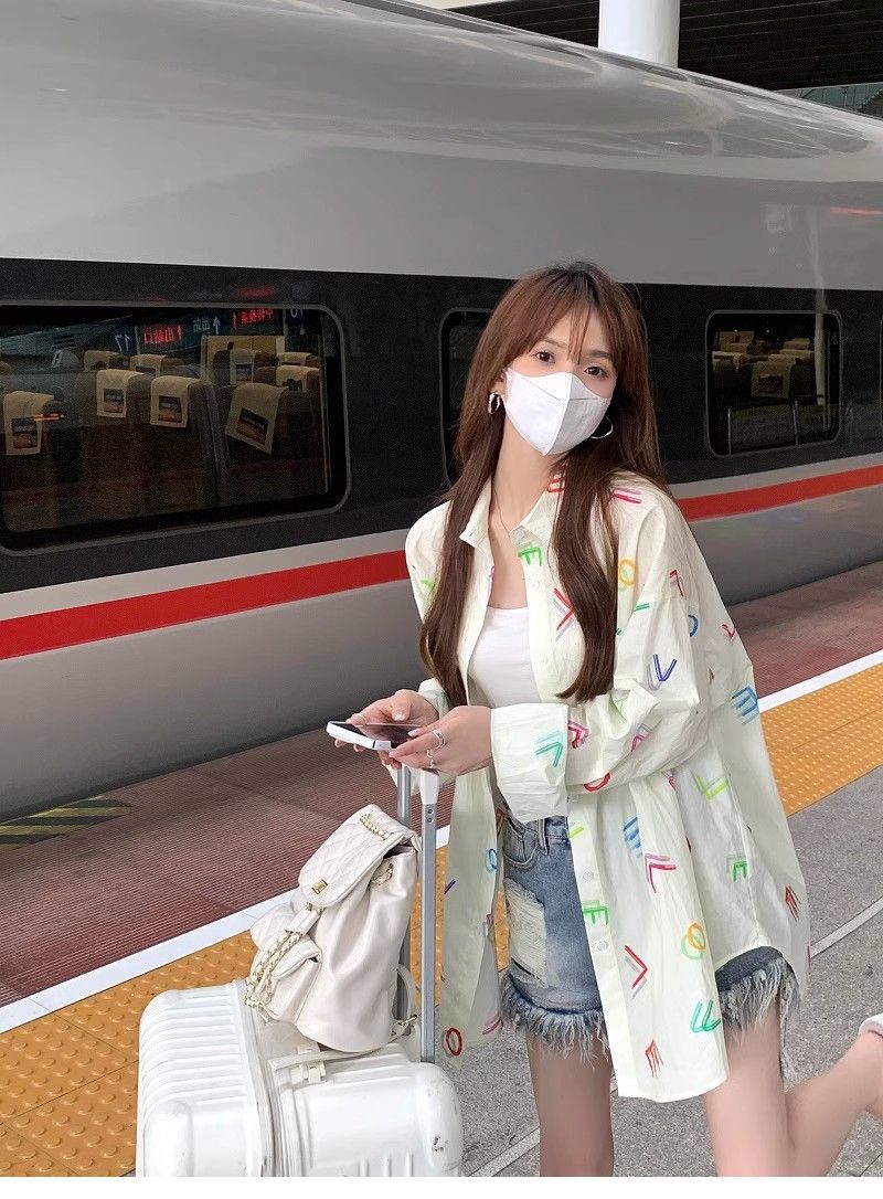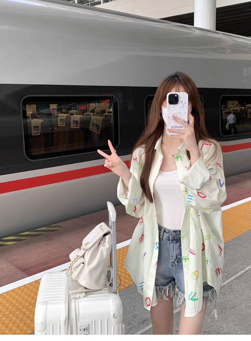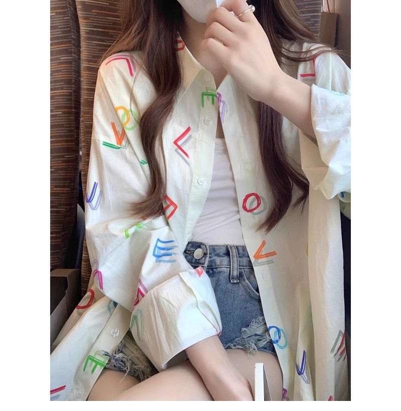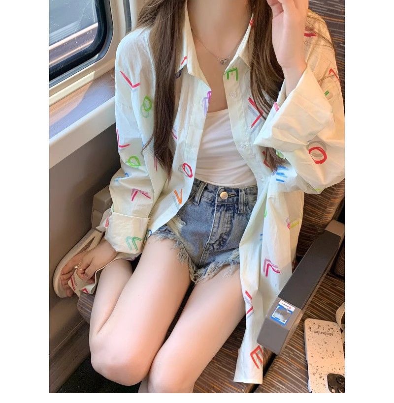 컬러 편지 인쇄 긴팔 선 스크린 셔츠 코트 여성의 여름 중간 길이 느슨한 게으른 캐주얼 셔츠스토어 가기