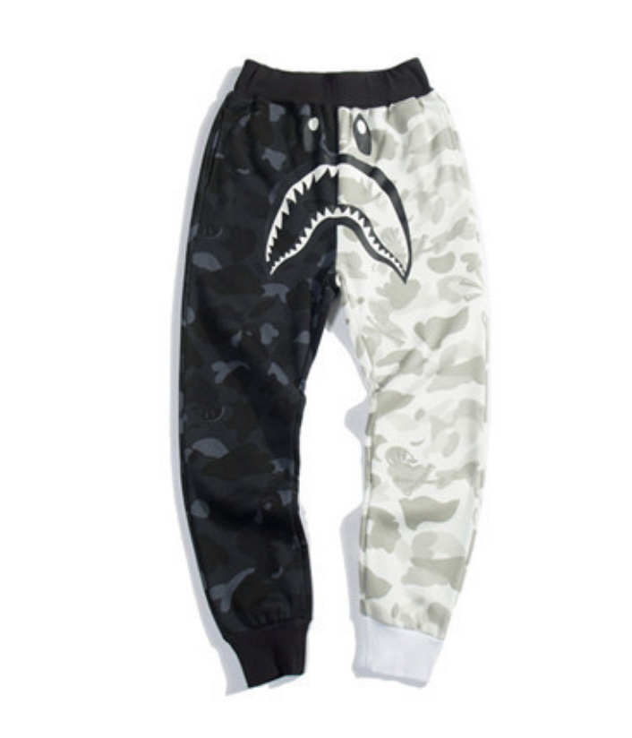 일본 트렌디 브랜드 BAPE 핫 샤크 헤드 원숭이 헤드 바지 3D 프린트 스웨트 셔츠 스웨트 팬츠 캐주얼 스포츠 바지스토어 가기