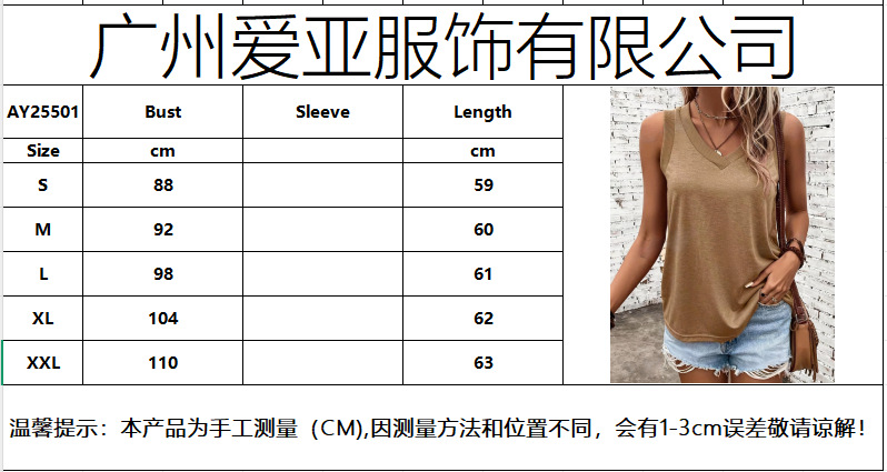 유럽과 미국 국경 통기성 면화 조끼 아마존 여성 대외 무역 핫셀러 느슨한 V 넥 민소매 편안한 티셔츠 여성스토어 가기