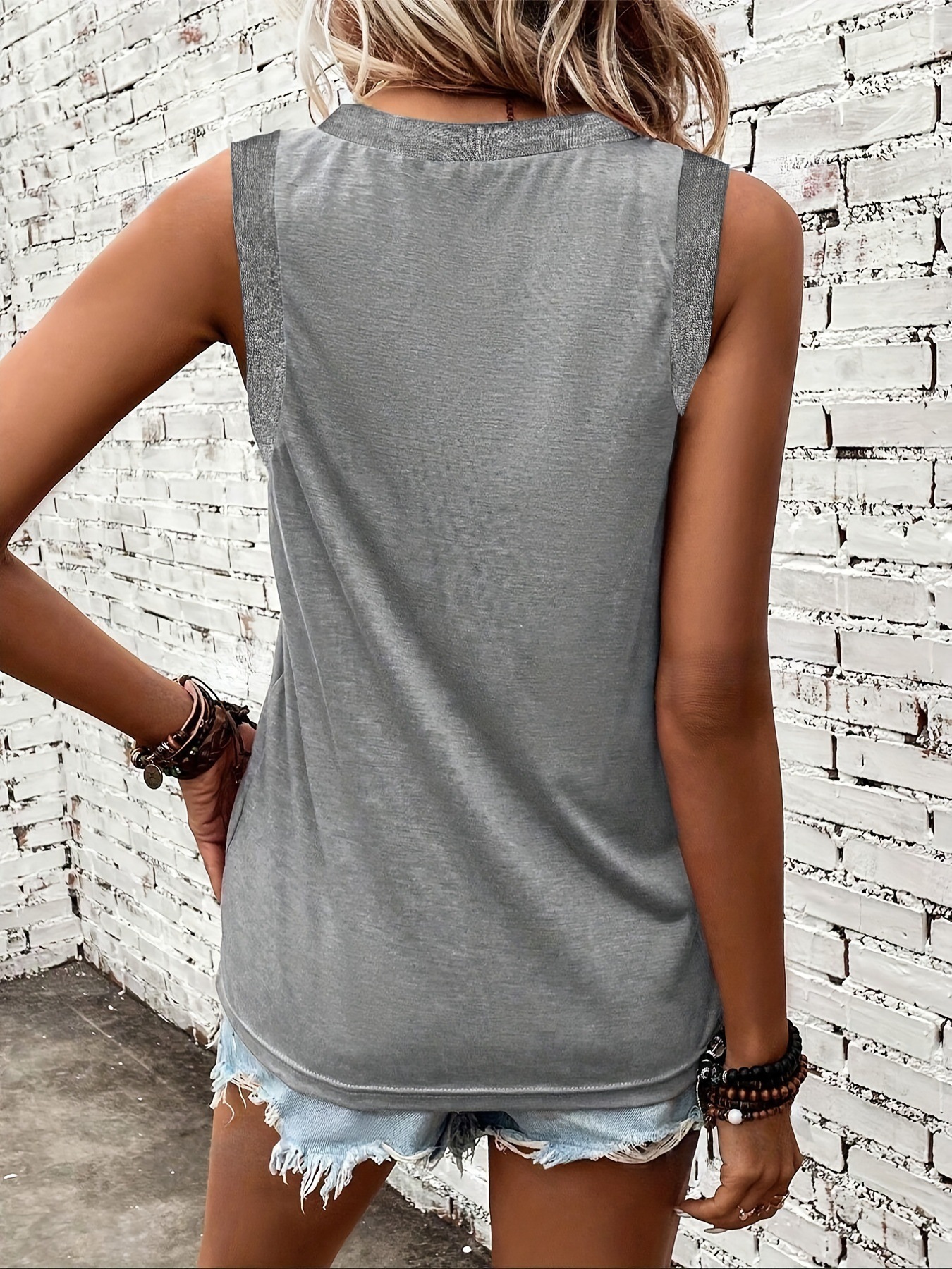 유럽과 미국 국경 통기성 면화 조끼 아마존 여성 대외 무역 핫셀러 느슨한 V 넥 민소매 편안한 티셔츠 여성