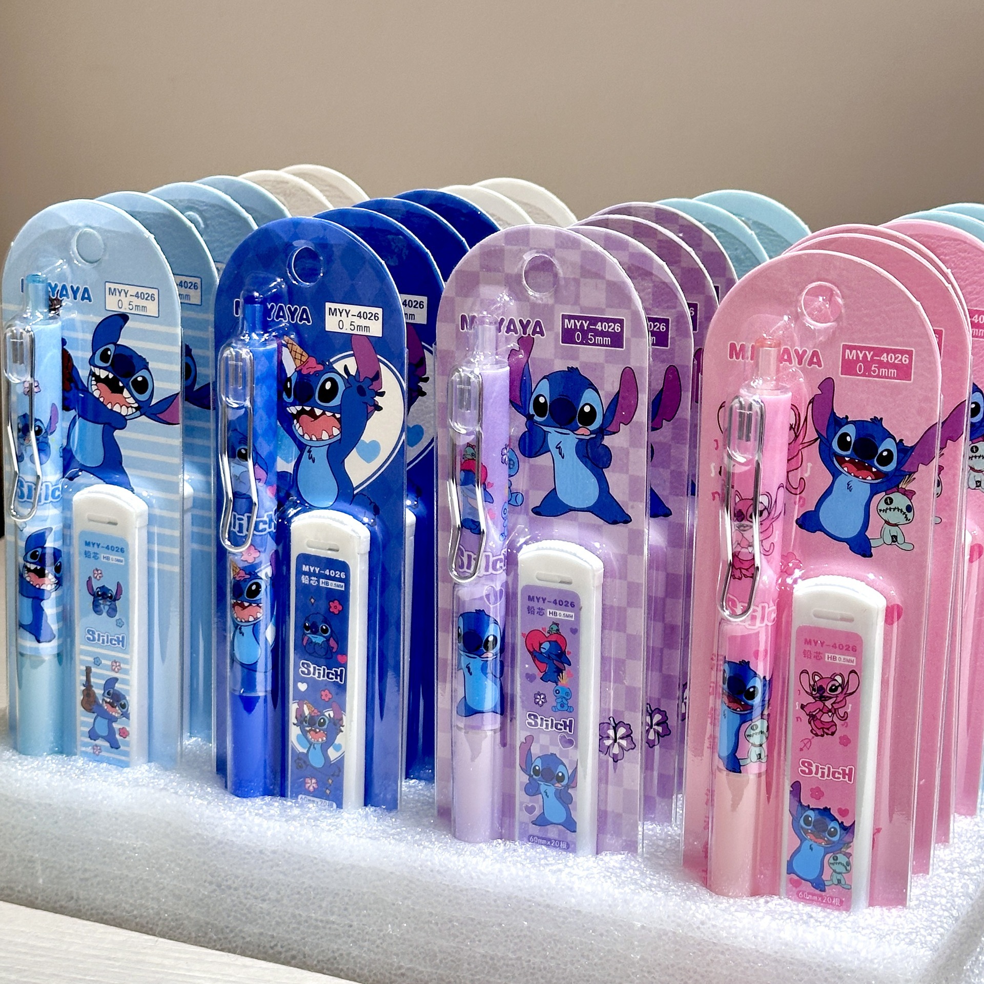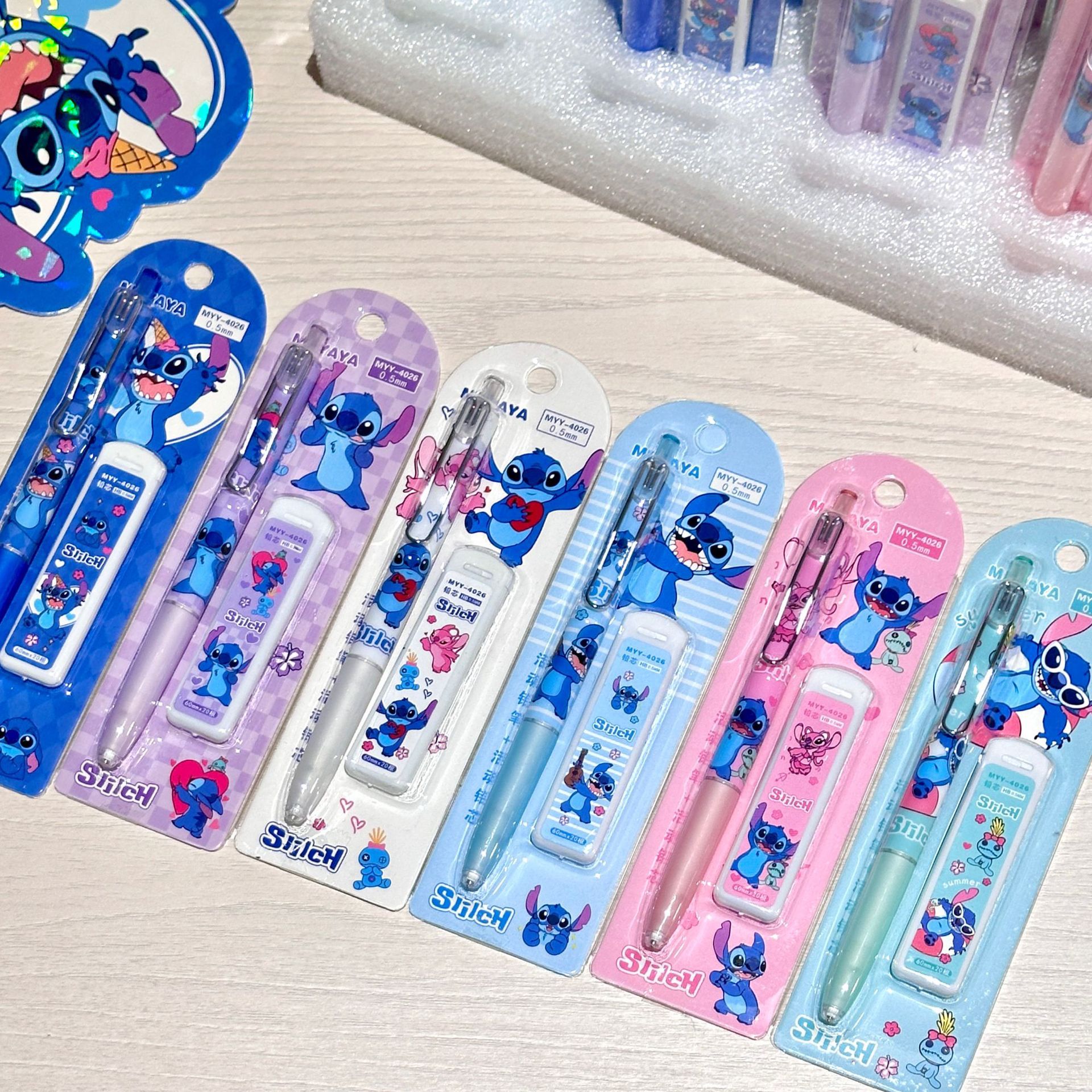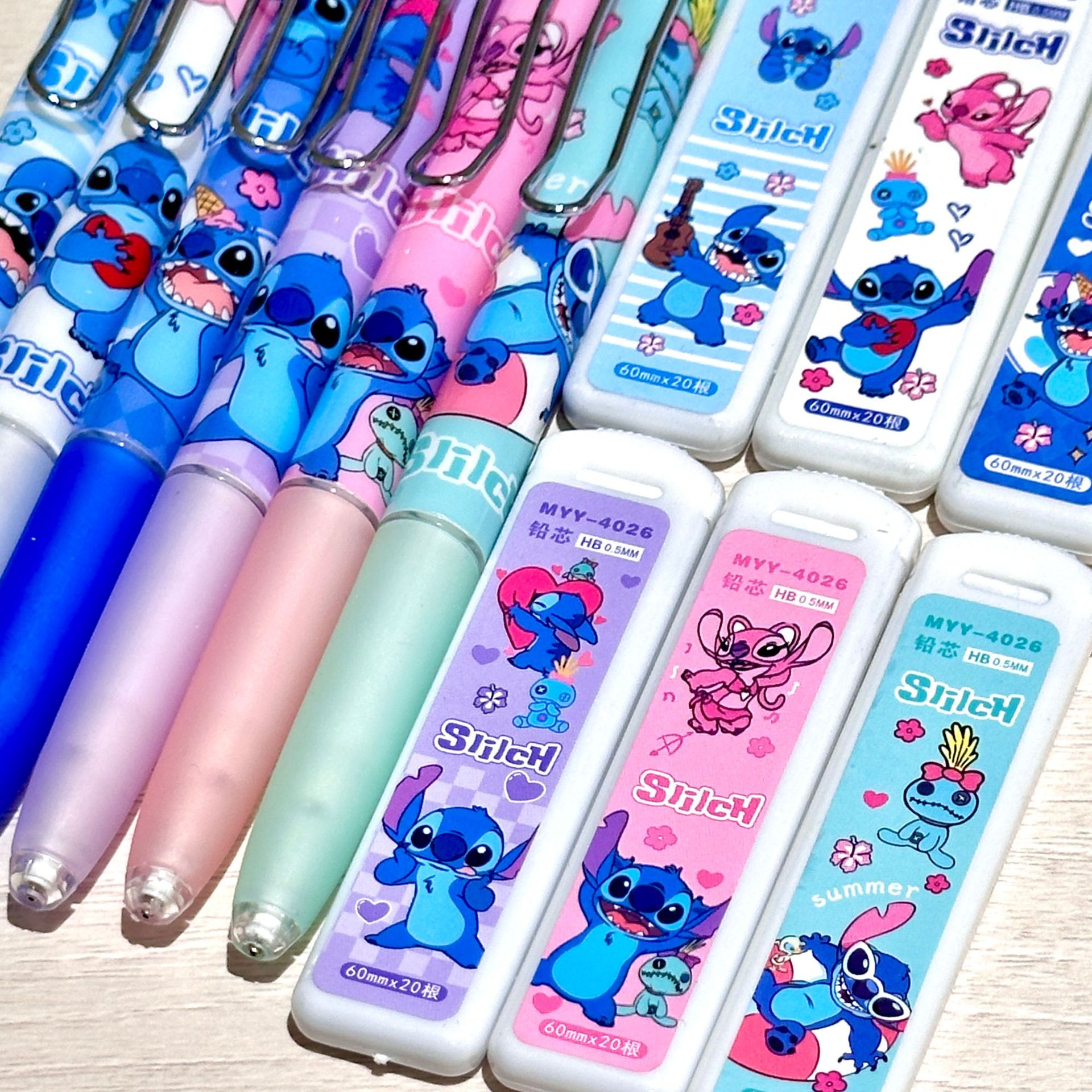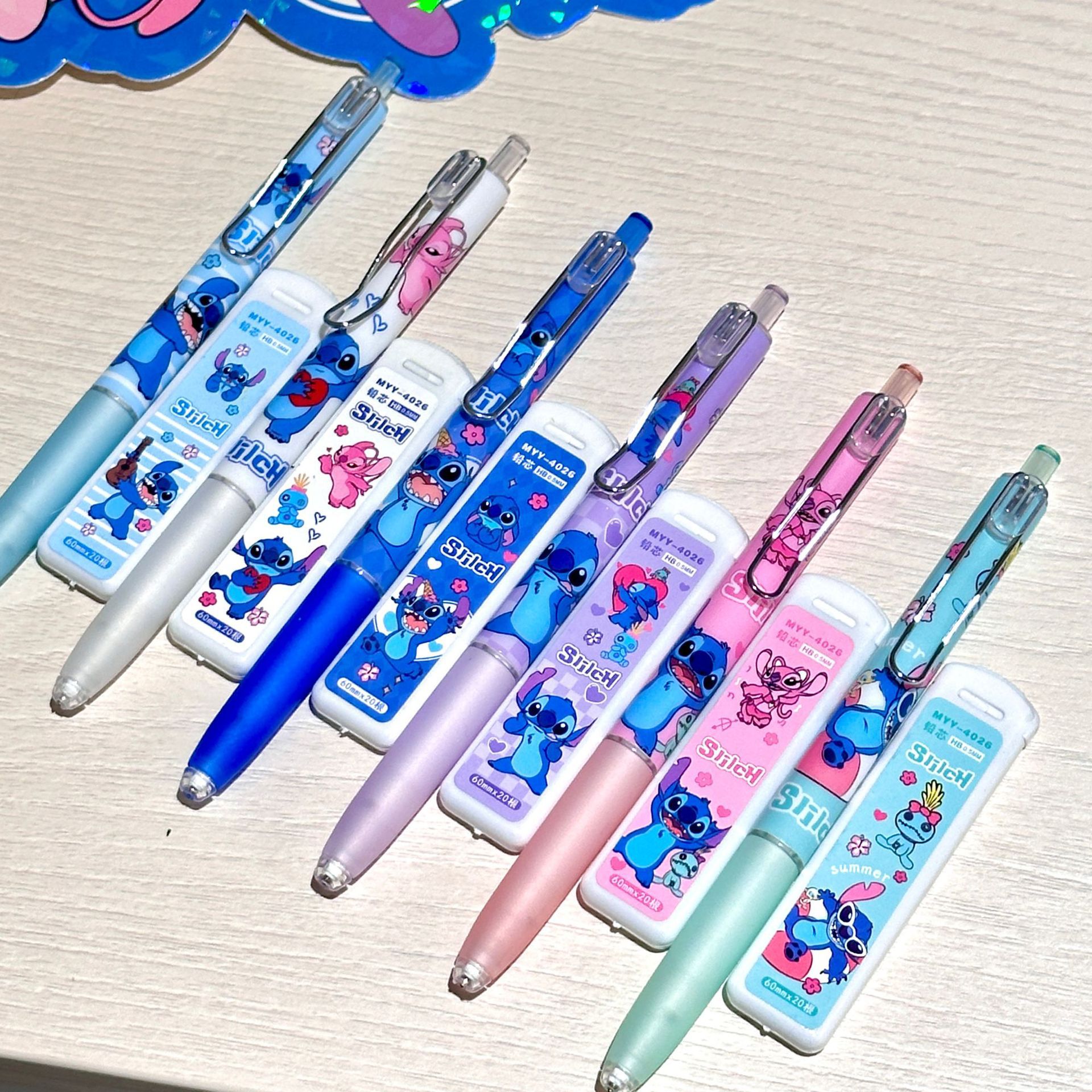 만화 스티치 자동 연필 세트 0.5 높은 색 가치 활동 연필 학생 문구 국경 대외 무역 도매스토어 가기
