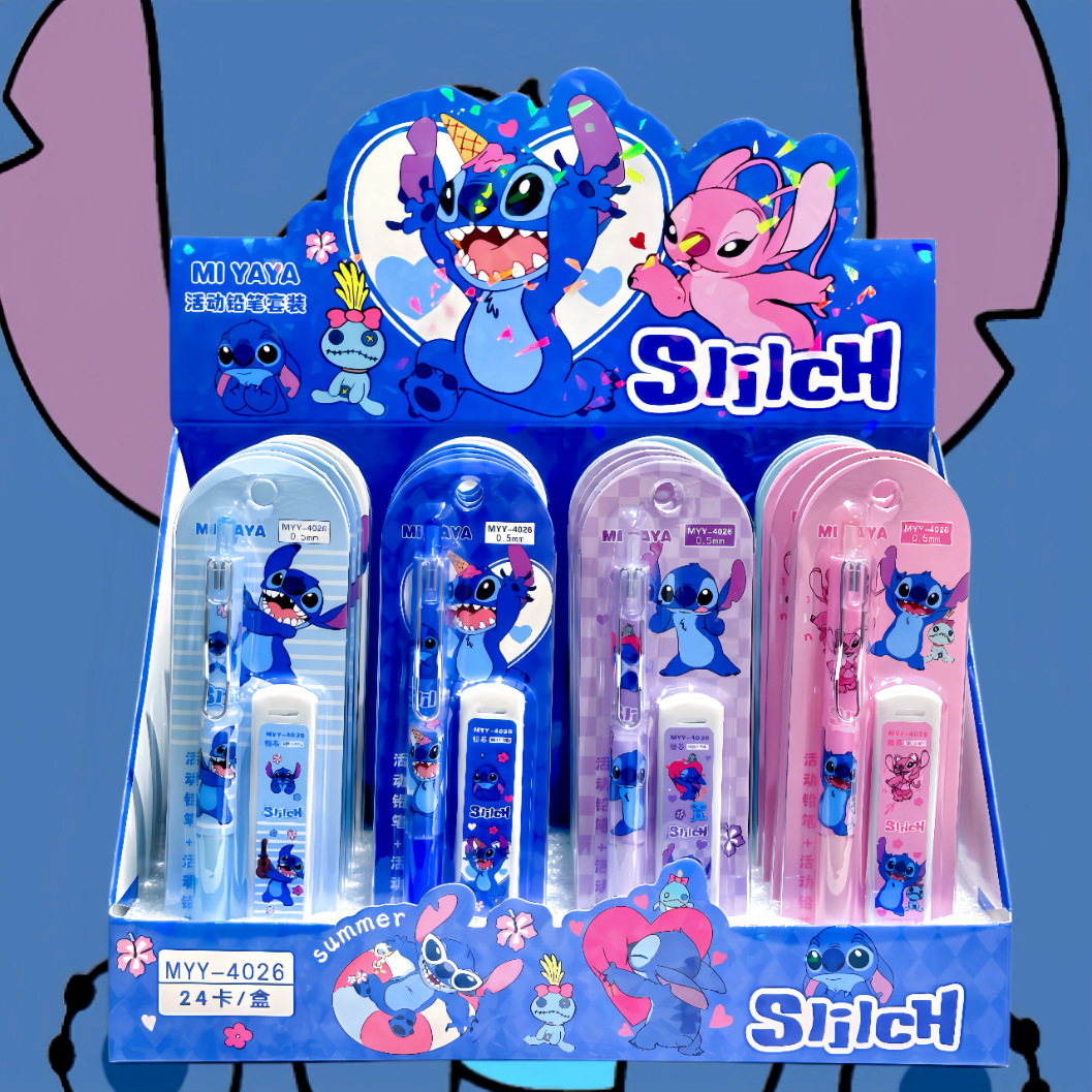 만화 스티치 자동 연필 세트 0.5 높은 색 가치 활동 연필 학생 문구 국경 대외 무역 도매