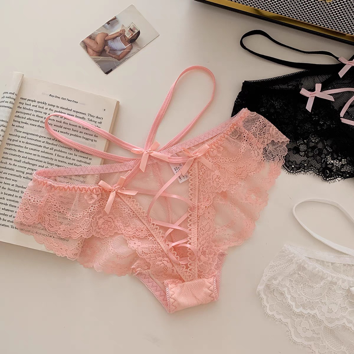 연애에 빠졌습니다 프랑스 섹시한 소녀 순수한 욕망 스타일 레이스 통기성 낮은 허리 팬티 여성의 달콤하고 귀여운 속옷스토어 가기