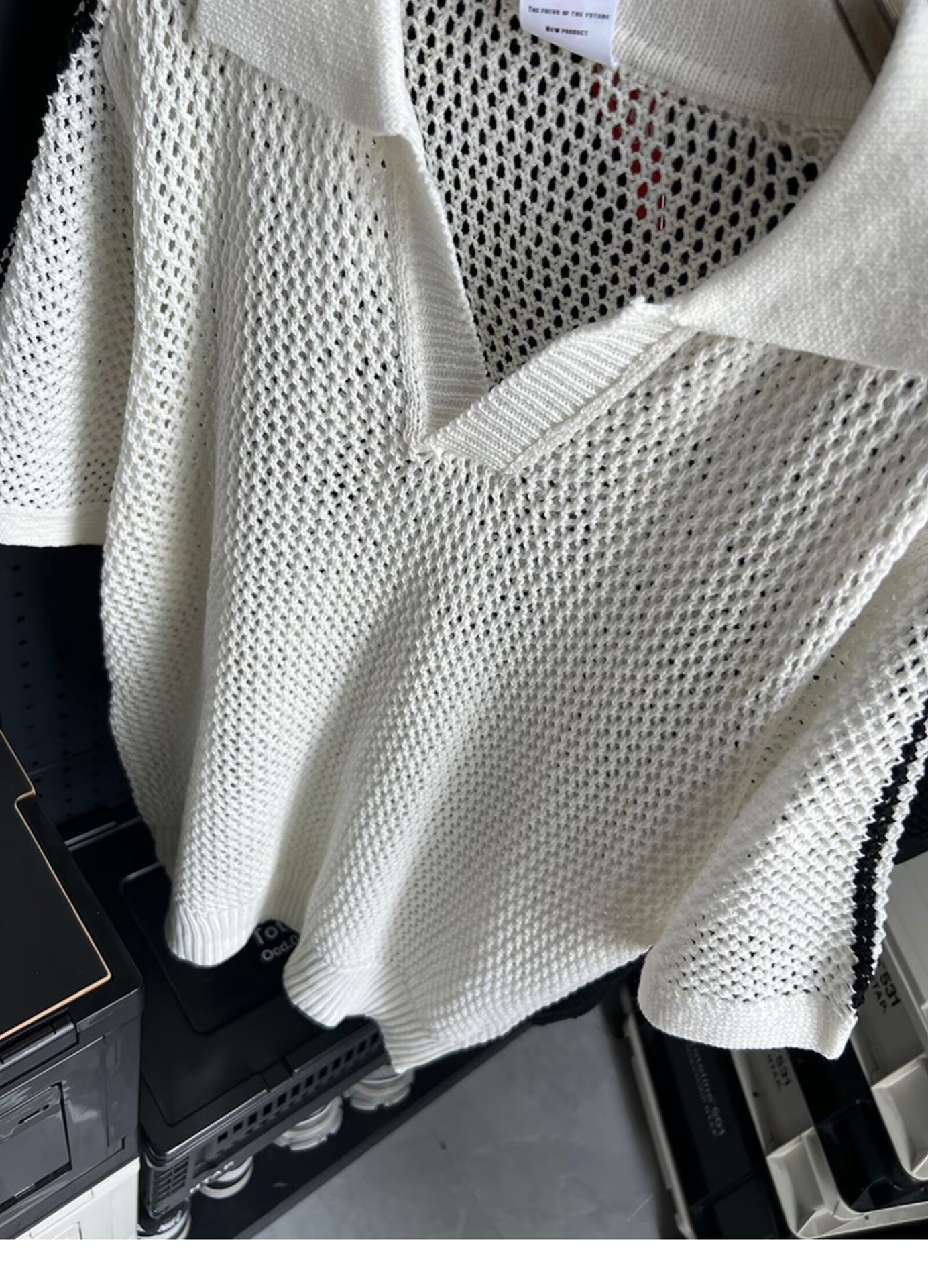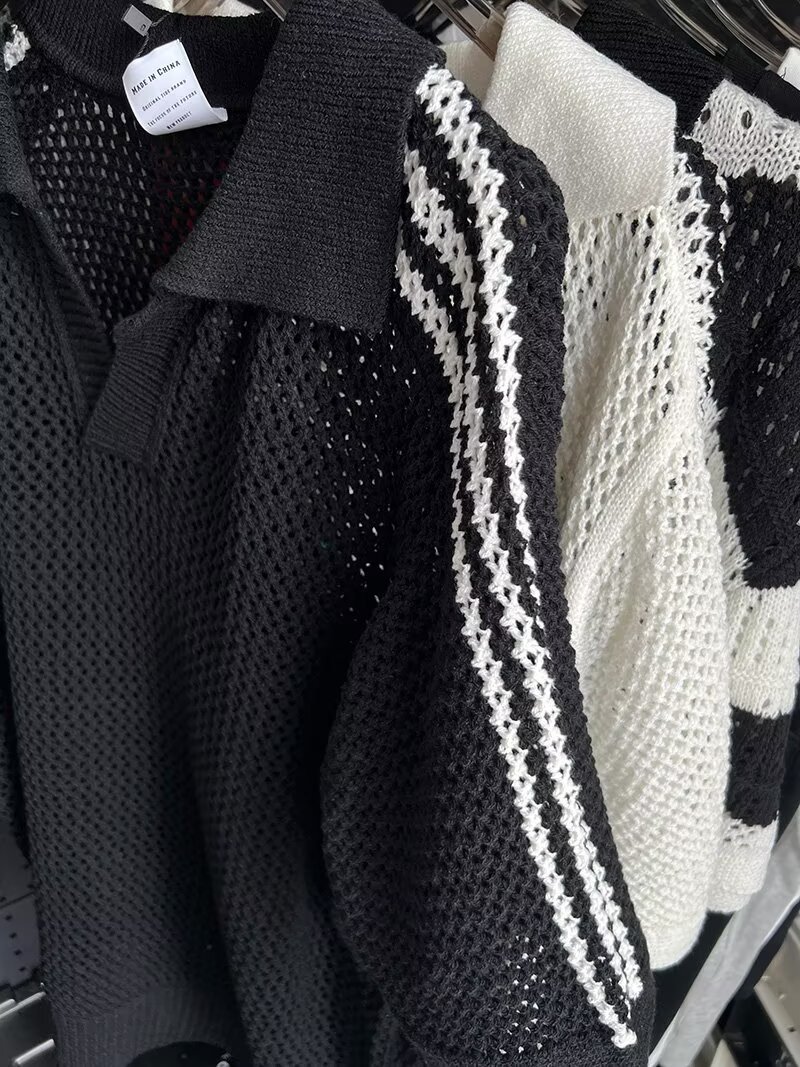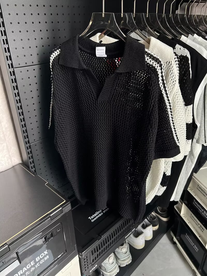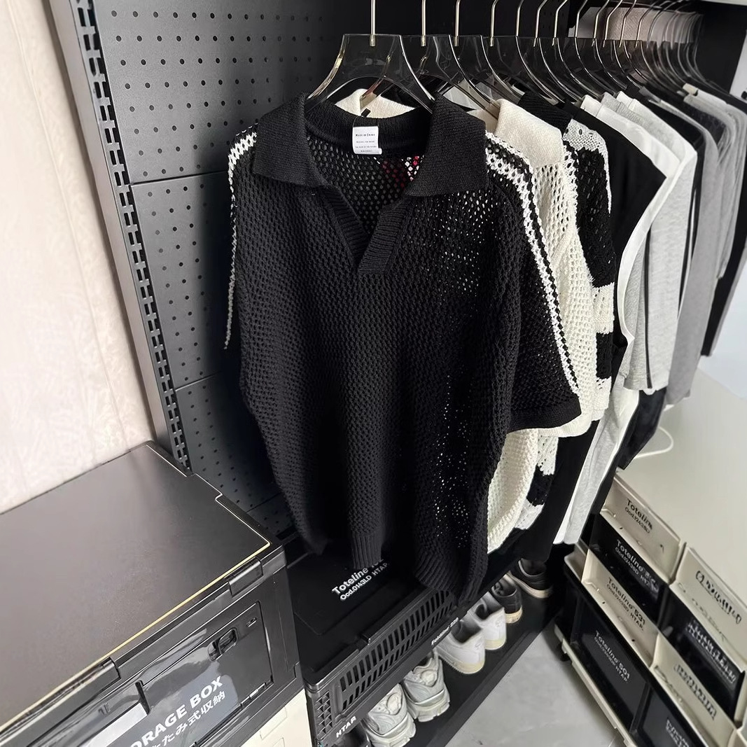 여름 할로우 통기성 V-Neck 최고 남성 아메리칸 스타일 레트로 느슨한 캐주얼 디자인 센스 래그 스웨터 반팔 트렌디스토어 가기