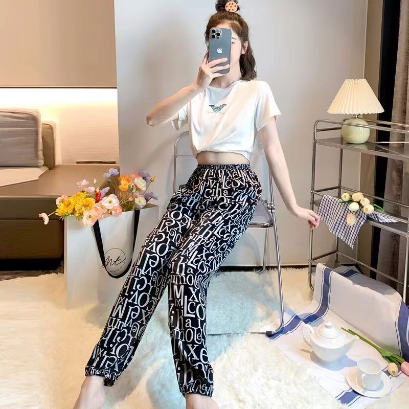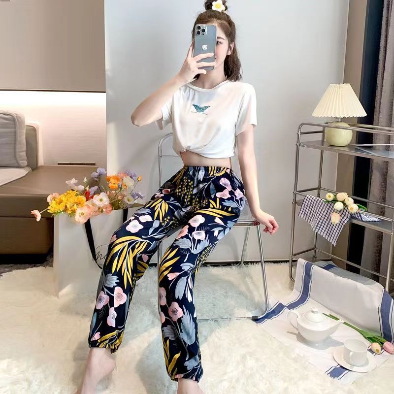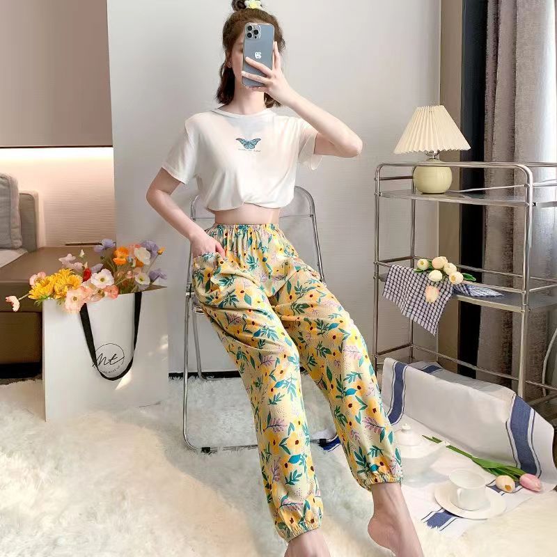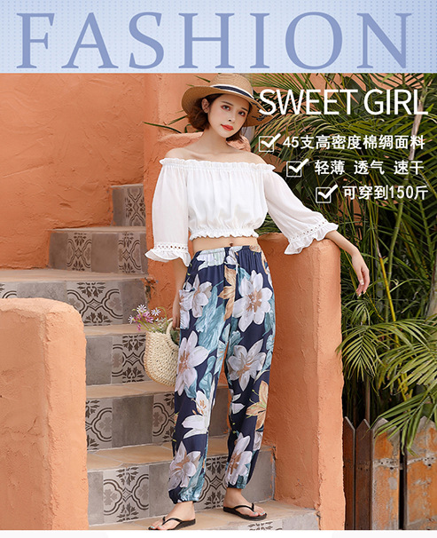 여름 여성용 면 실크 바지, 얇은 블루머, 성인 모기 방지 바지, 비치 바지, 인공 면 인터넷 연예인 루즈한 잠옷스토어 가기