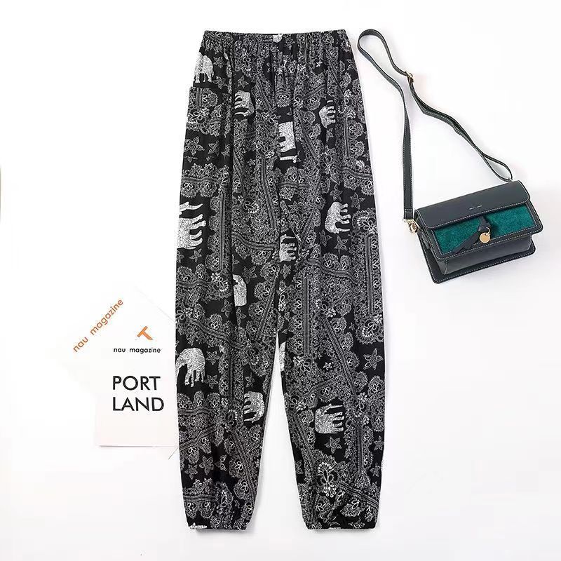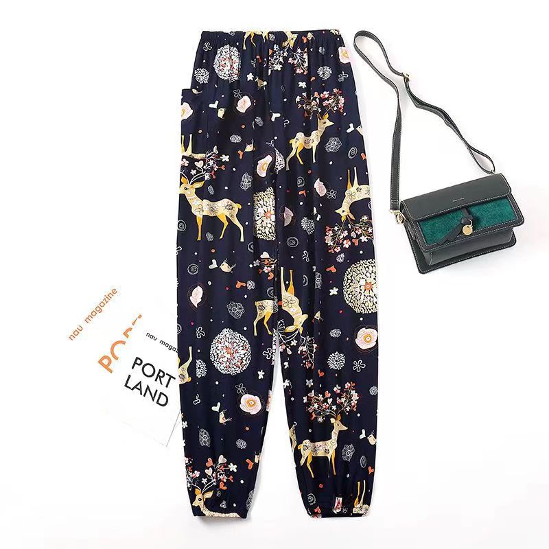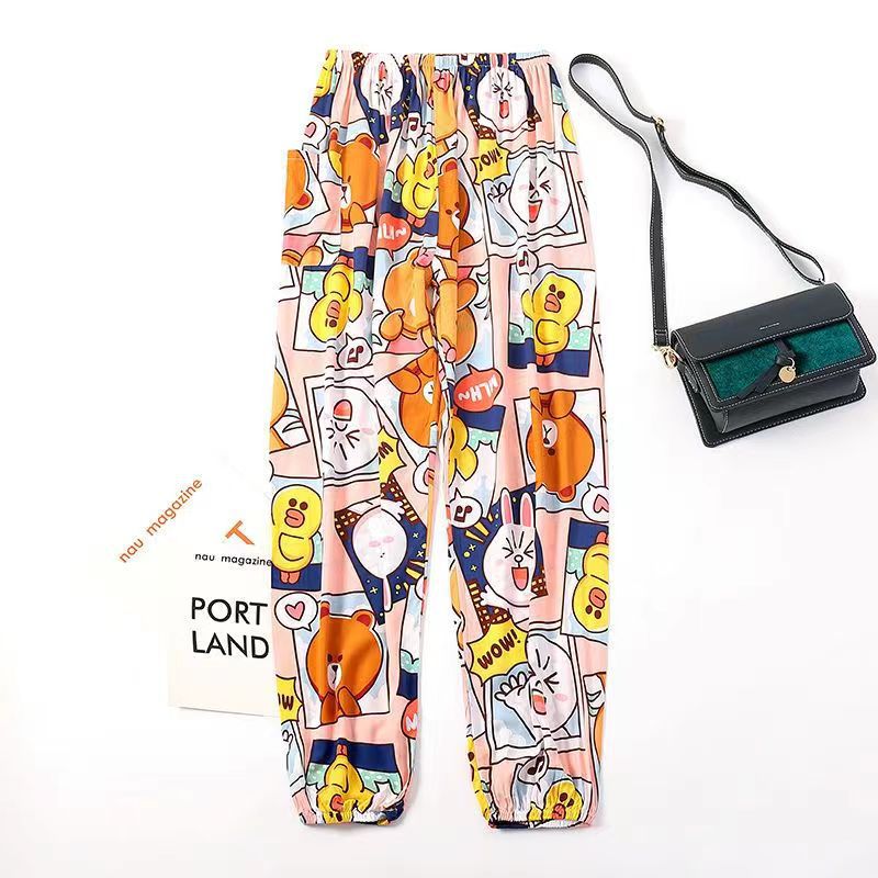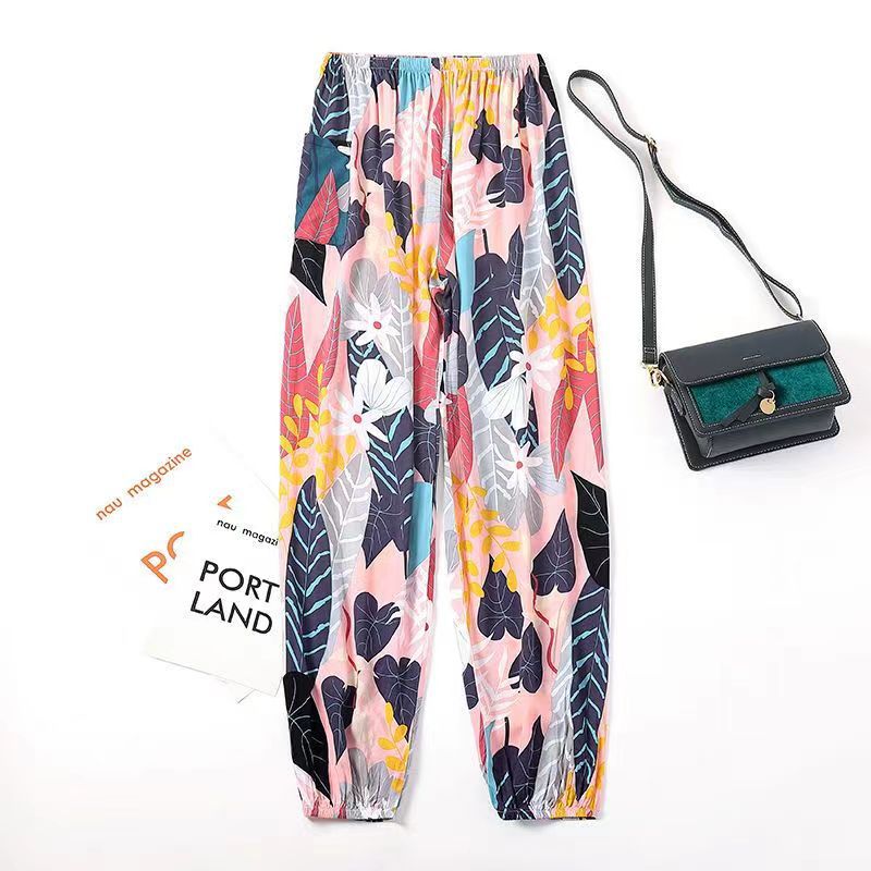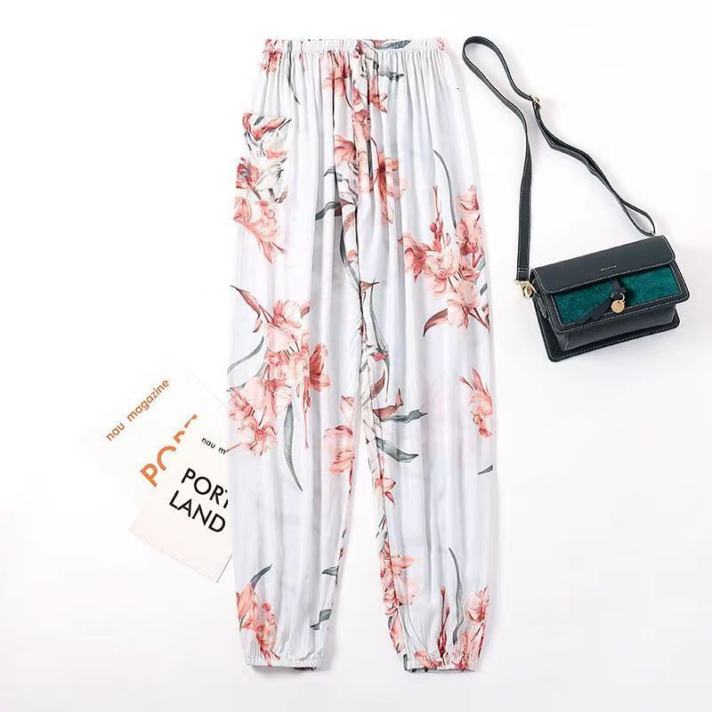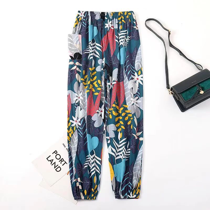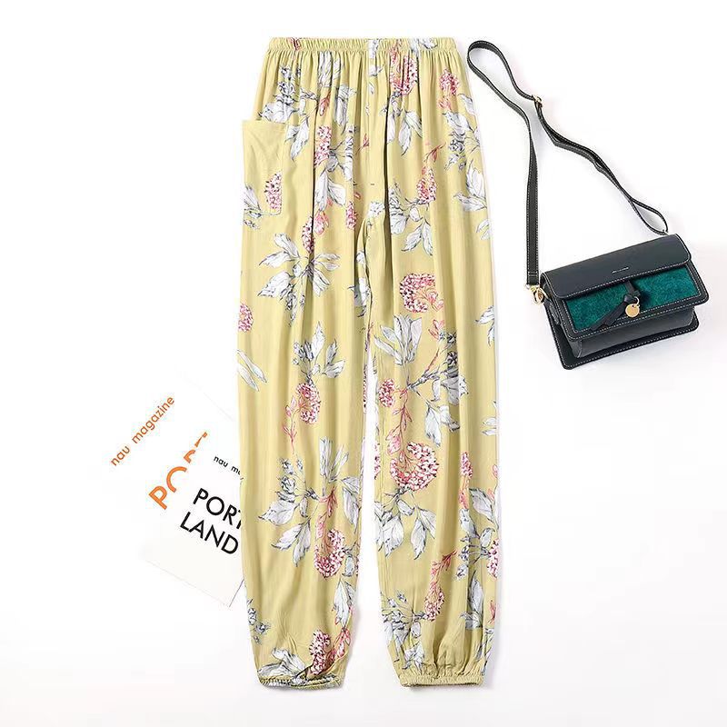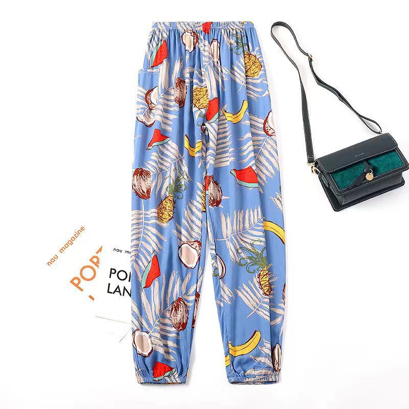 여름 여성용 면 실크 바지, 얇은 블루머, 성인 모기 방지 바지, 비치 바지, 인공 면 인터넷 연예인 루즈한 잠옷