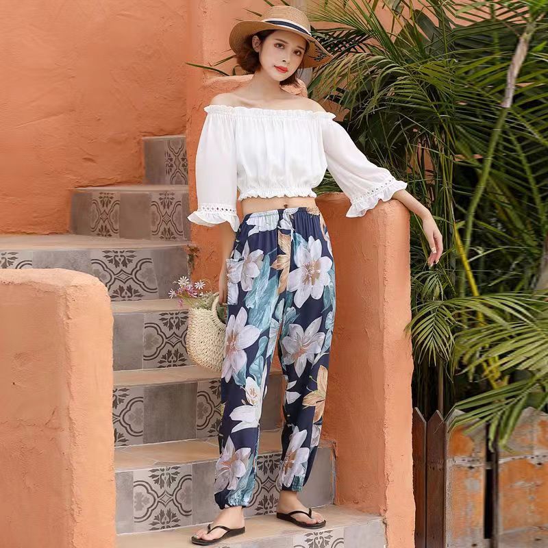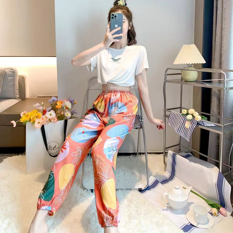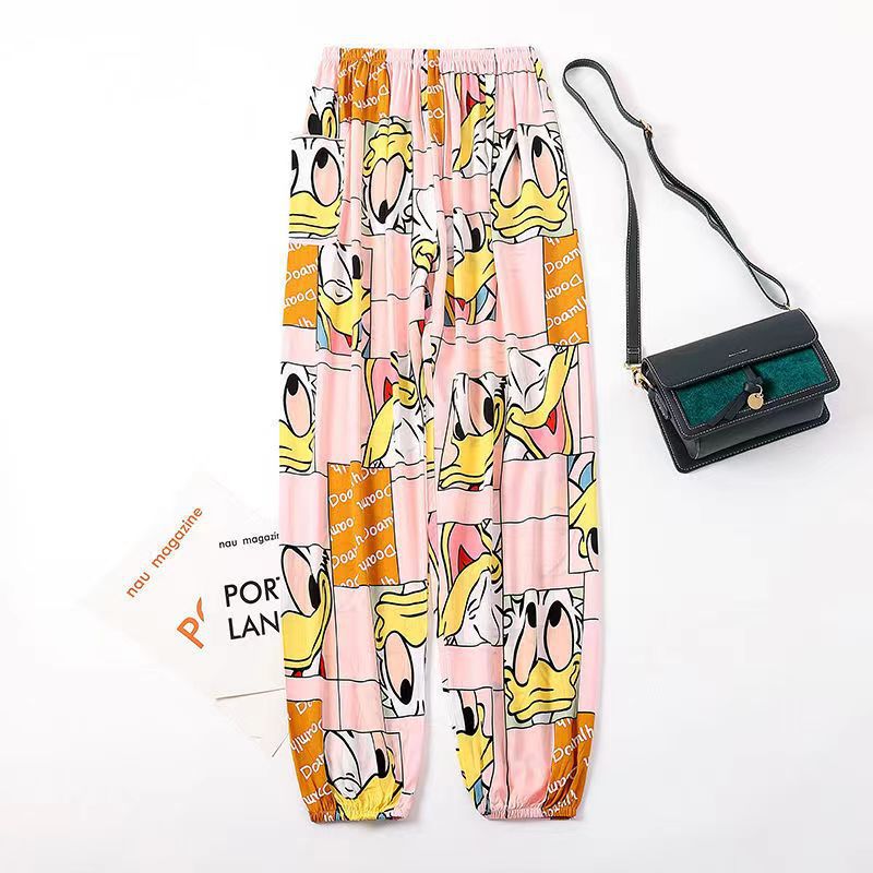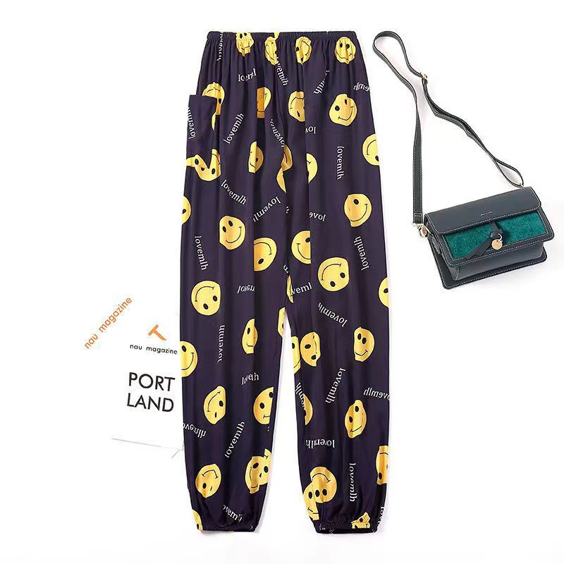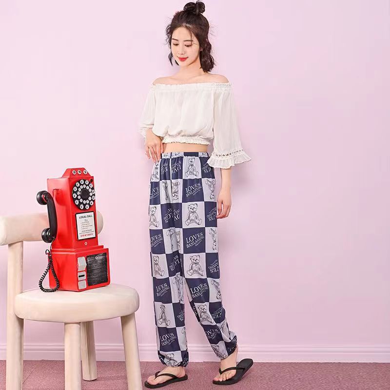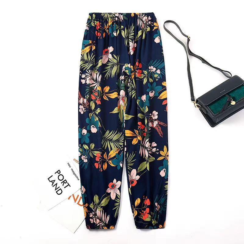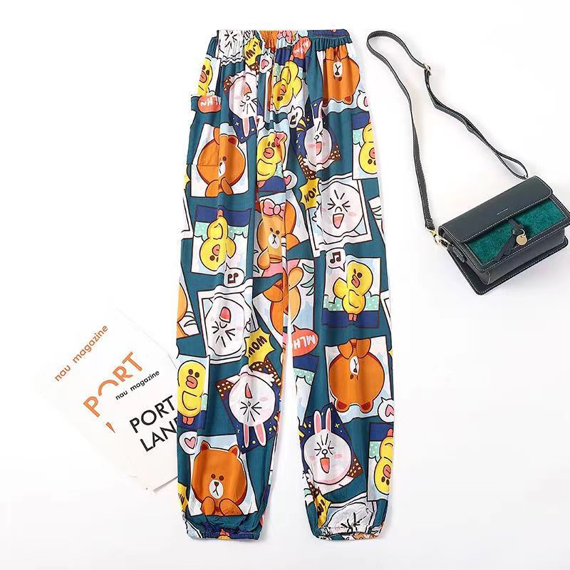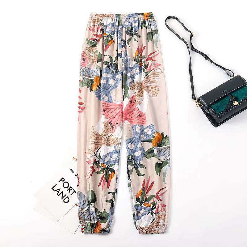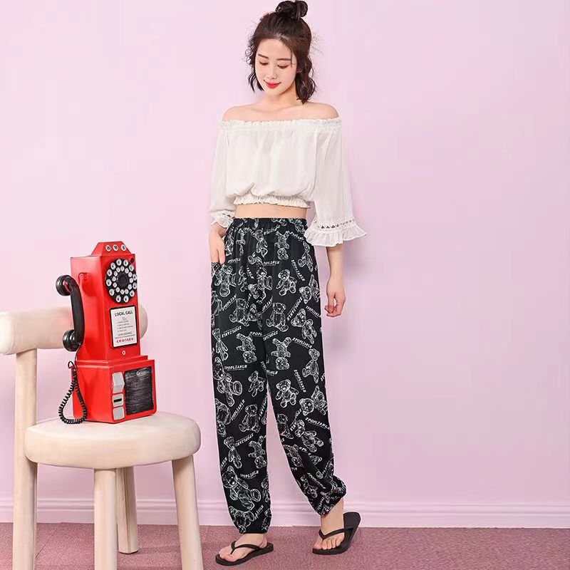 여름 여성용 면 실크 바지, 얇은 블루머, 성인 모기 방지 바지, 비치 바지, 인공 면 인터넷 연예인 루즈한 잠옷
