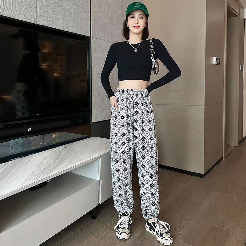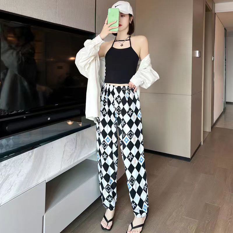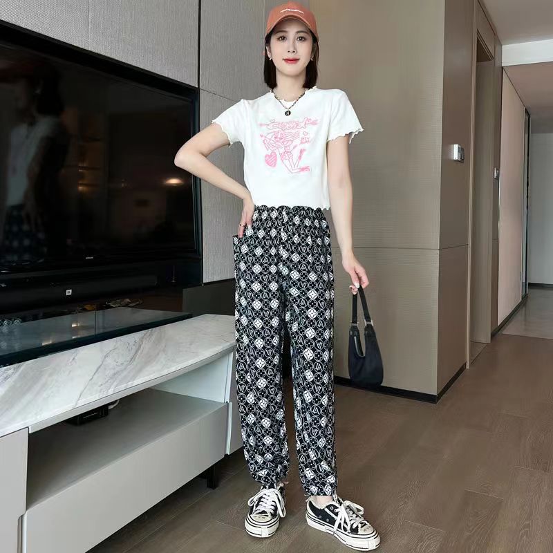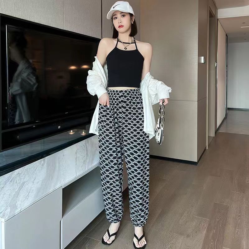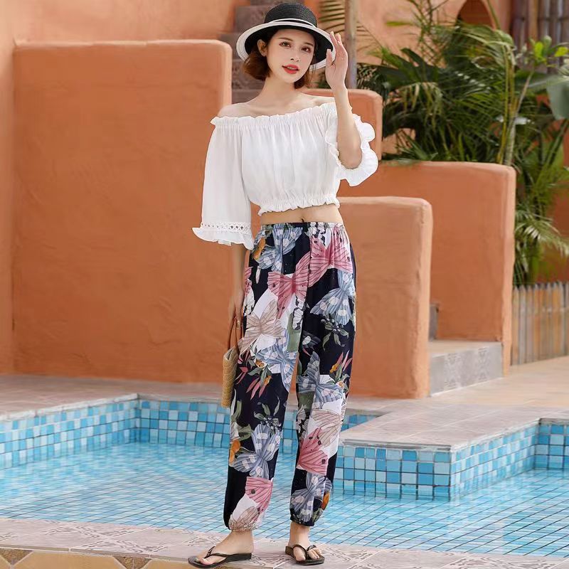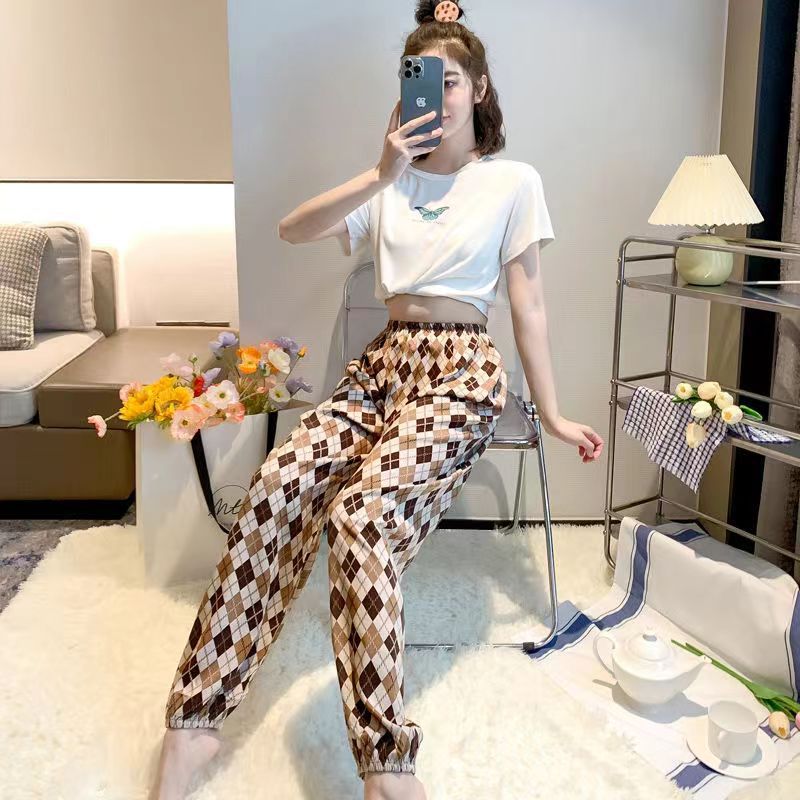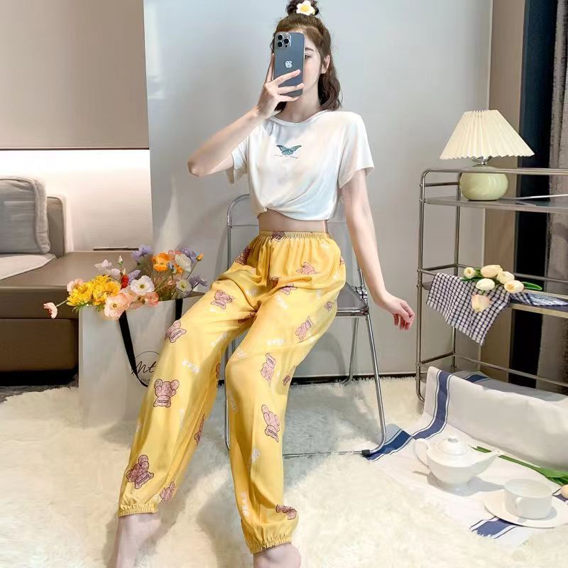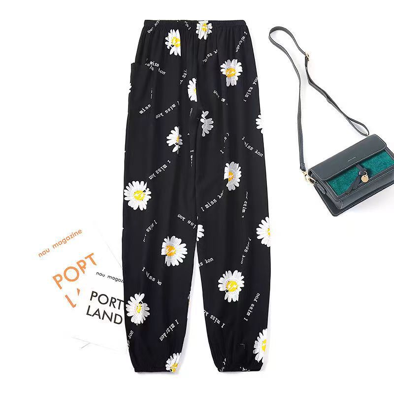 여름 여성용 면 실크 바지, 얇은 블루머, 성인 모기 방지 바지, 비치 바지, 인공 면 인터넷 연예인 루즈한 잠옷