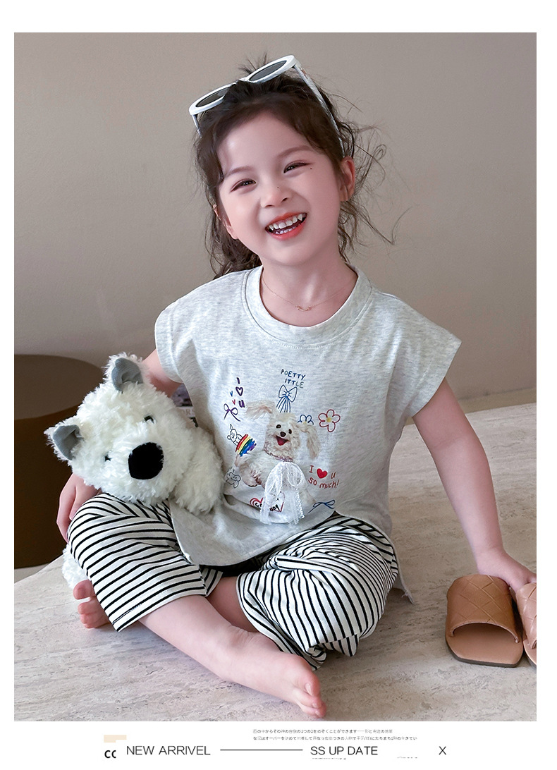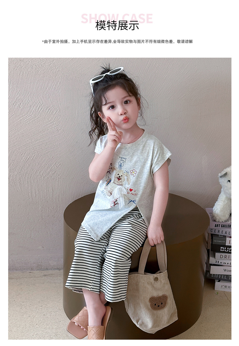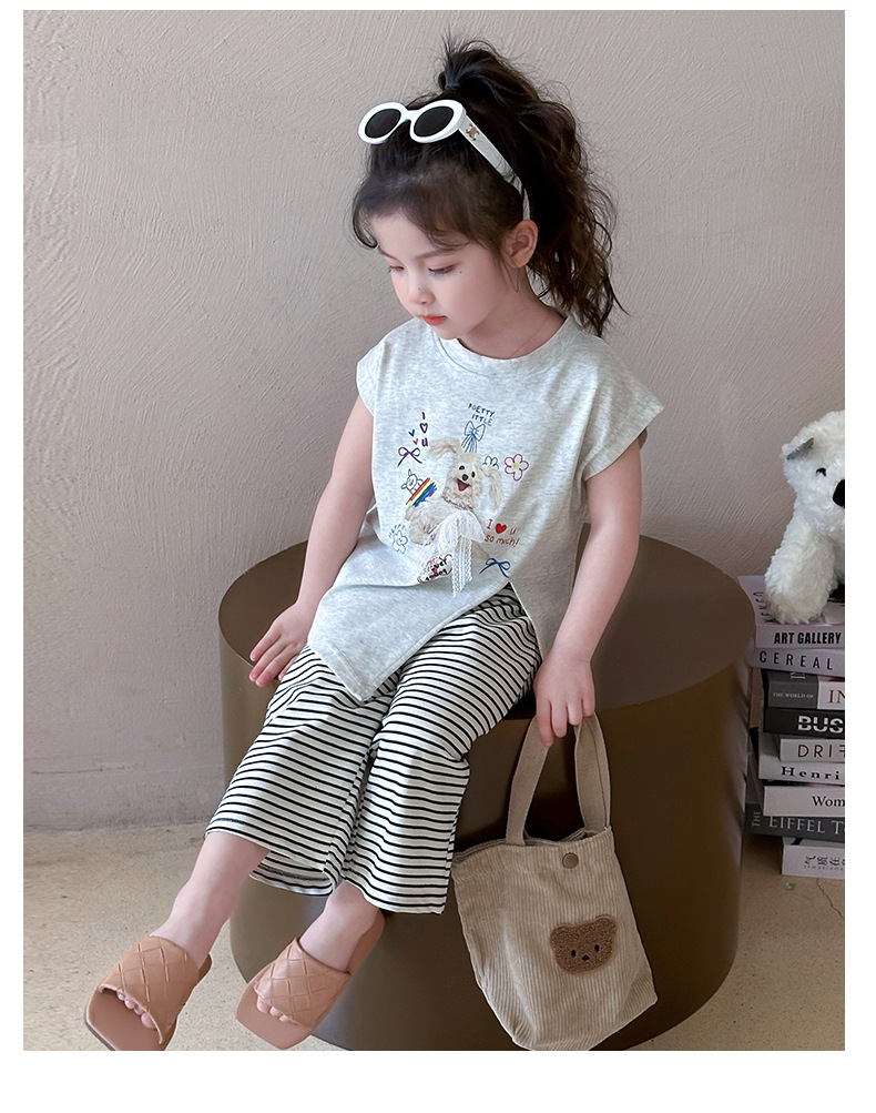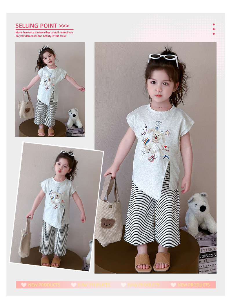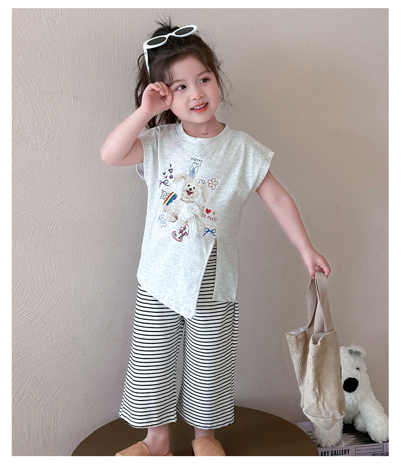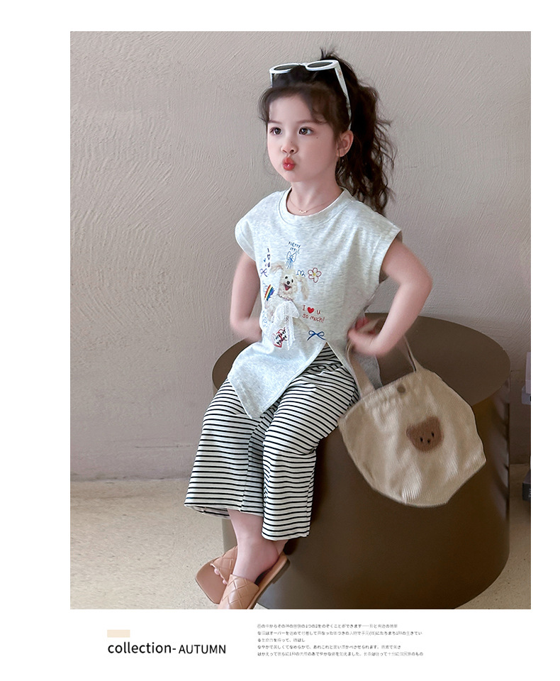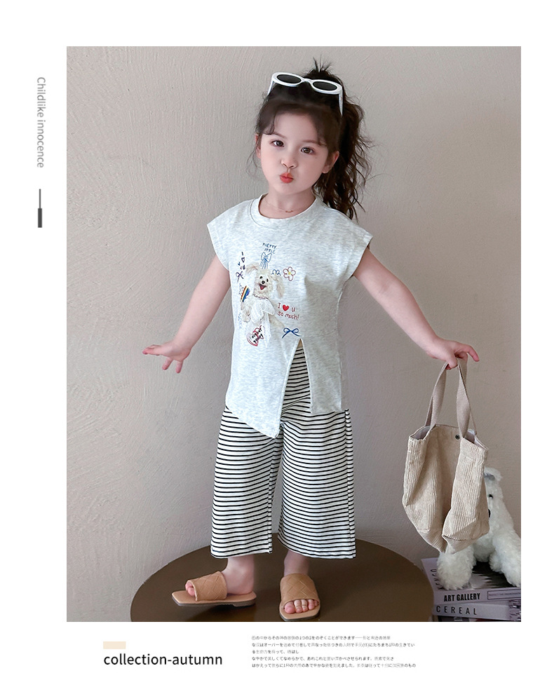 2026년 신상 슬릿 와이드 팬츠 세트, 중소형 아동용 인터넷 유명 패션 스타일리쉬 여아 투피스 캐주얼 세트스토어 가기