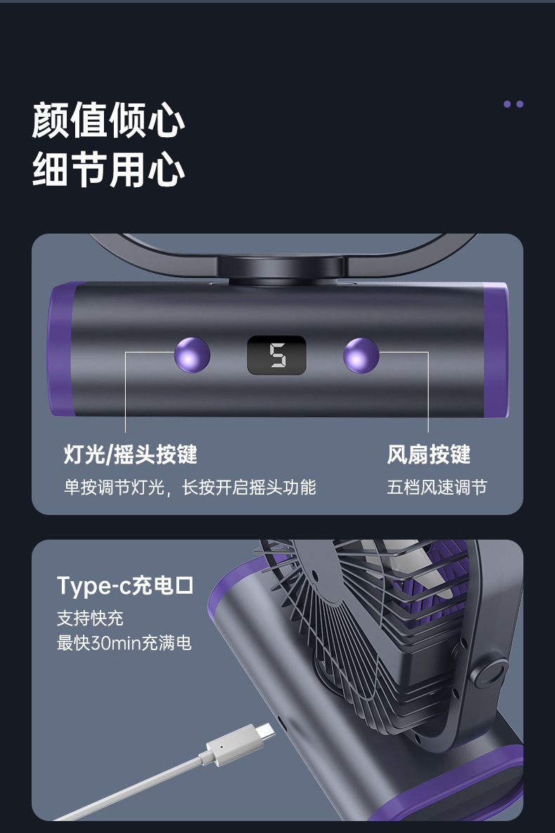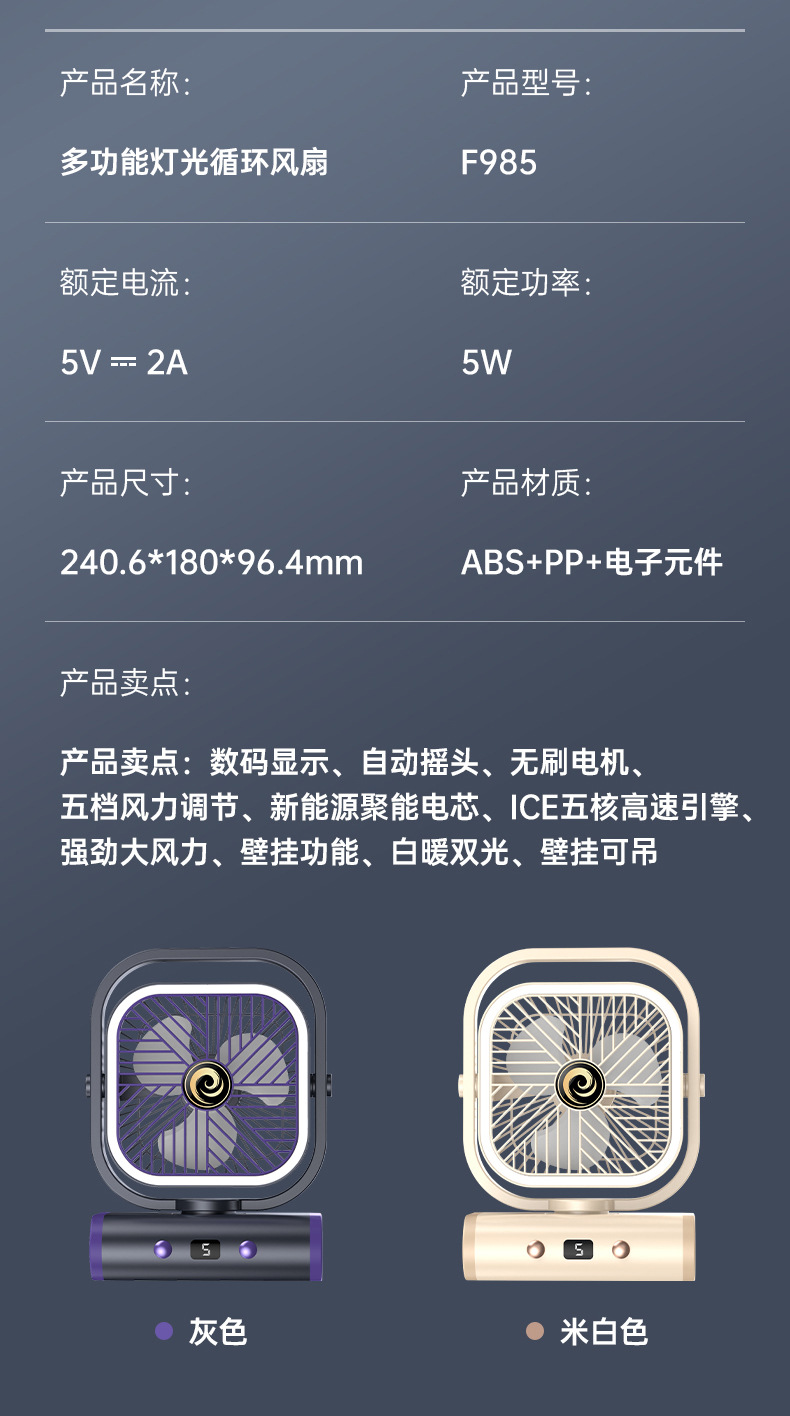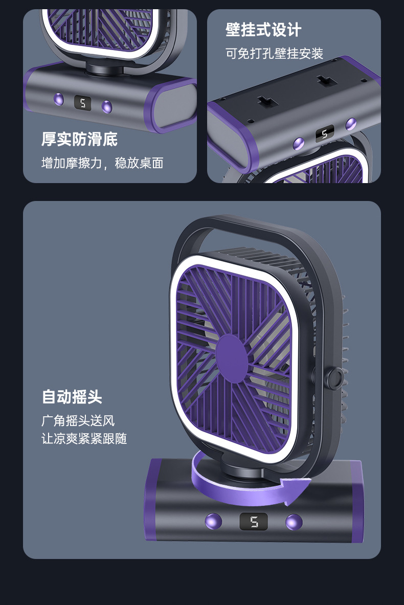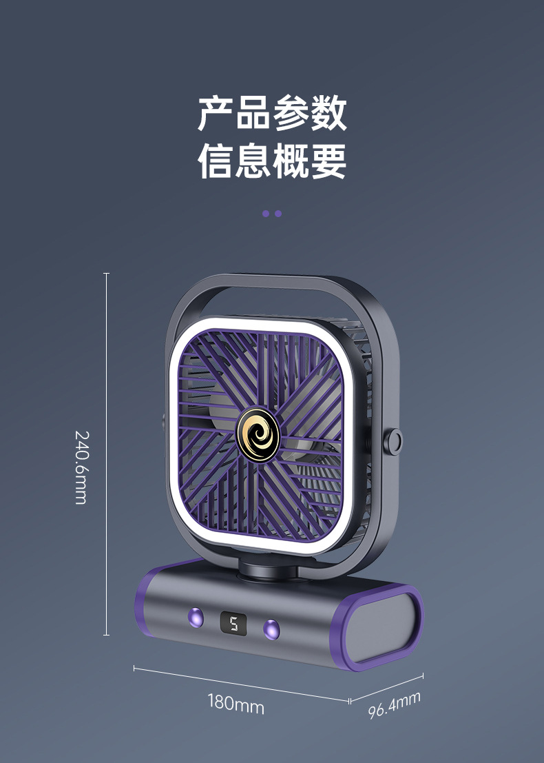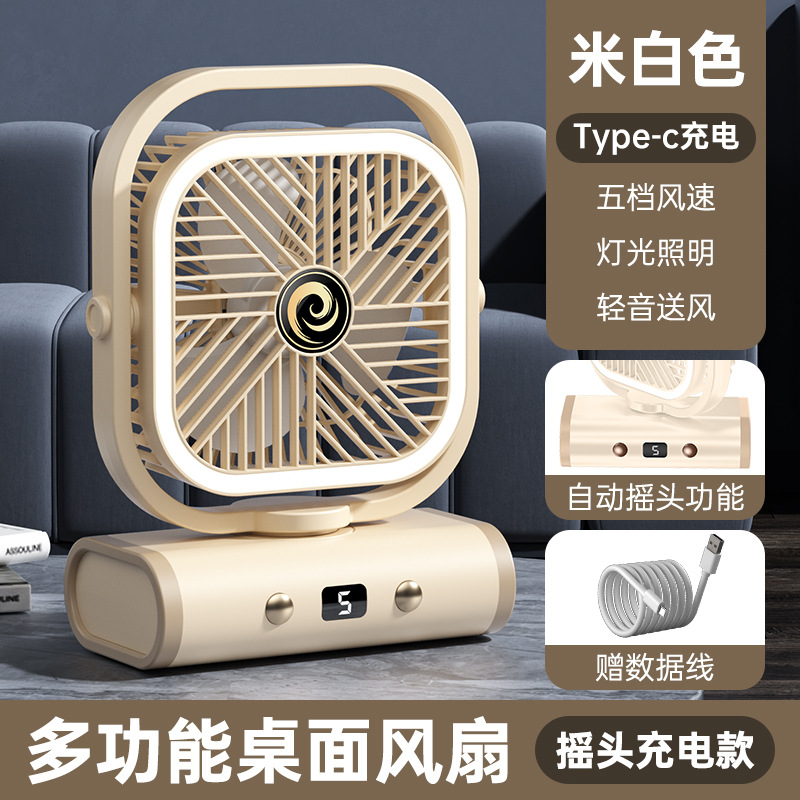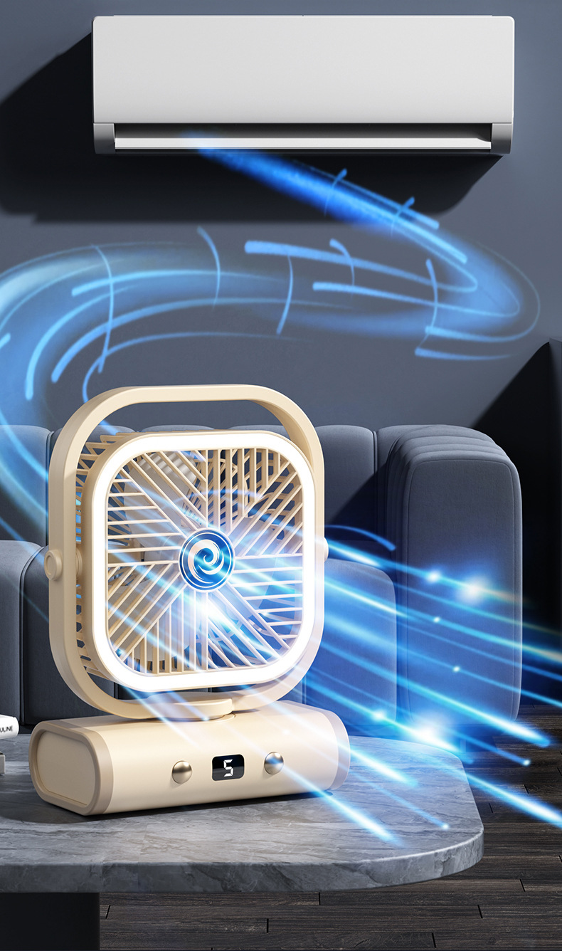 2025 디지털 스크린 흔들리는 머리 야외 캠핑 팬 야간 조명 다기능 충전식 순환 팬 텐트 선물 국경