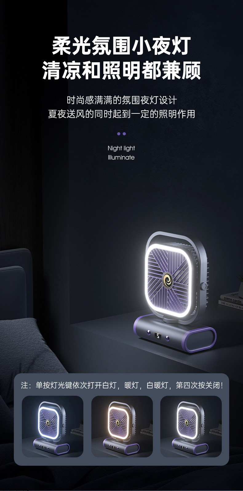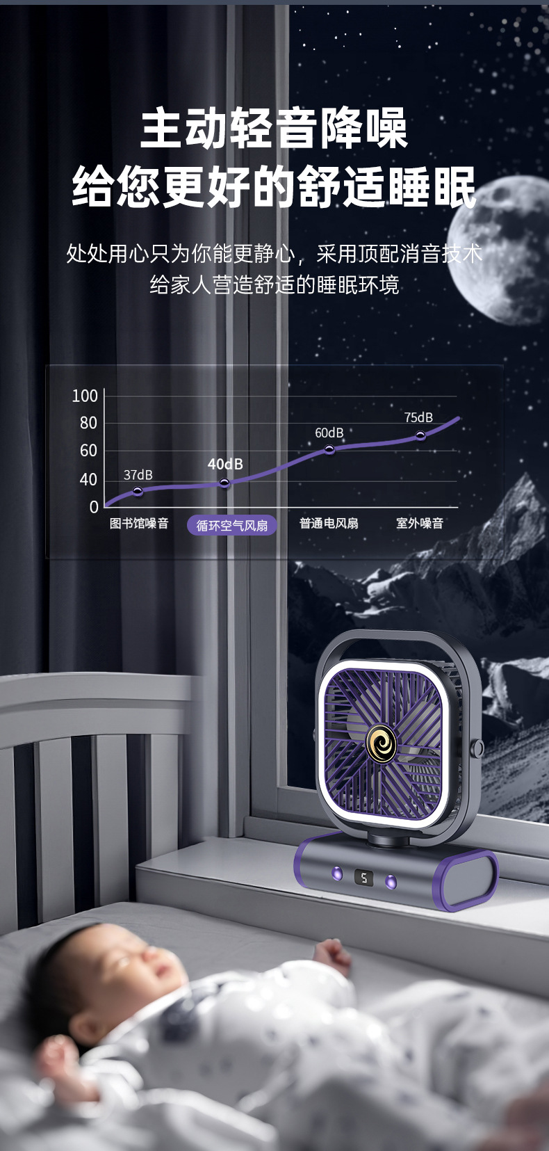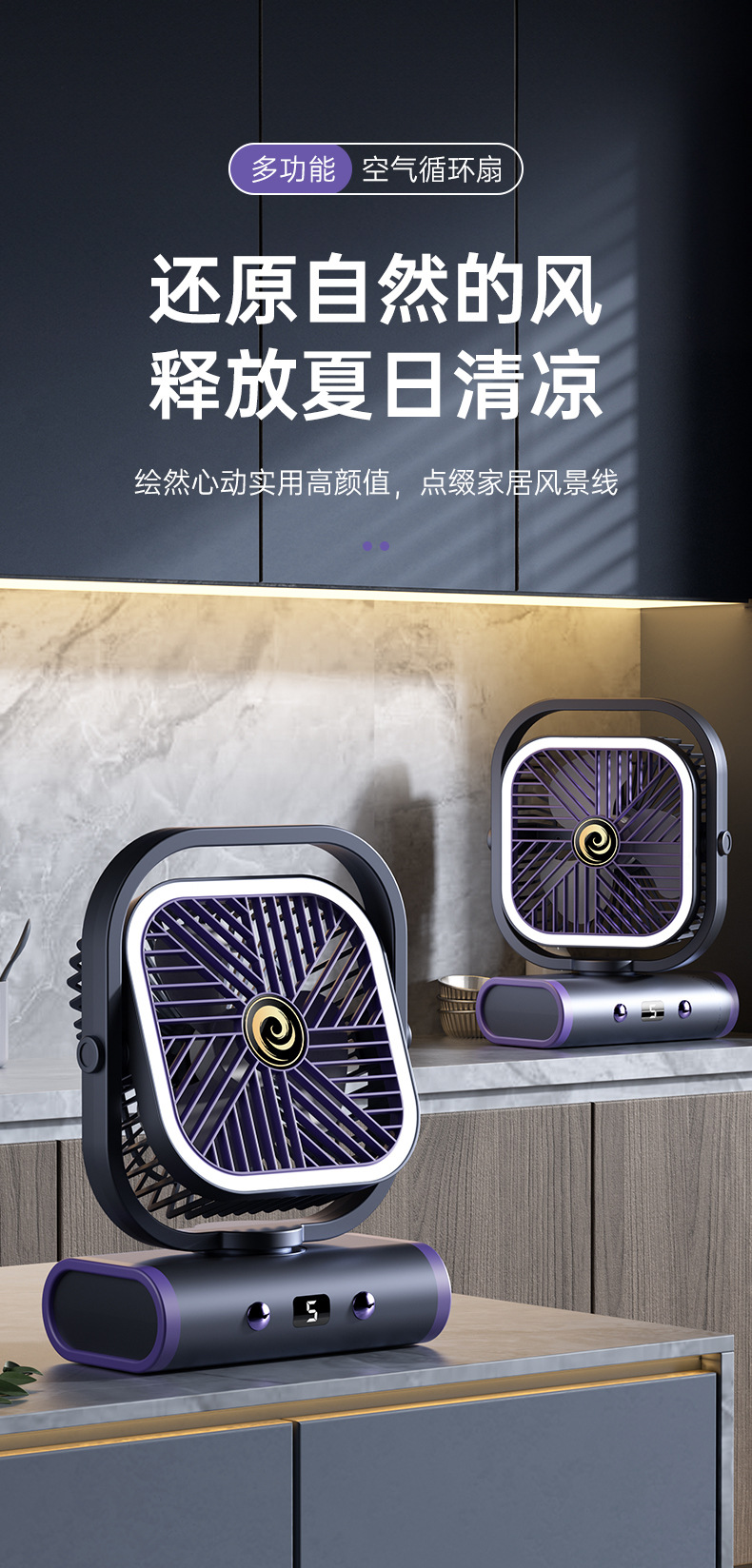 2025 디지털 스크린 흔들리는 머리 야외 캠핑 팬 야간 조명 다기능 충전식 순환 팬 텐트 선물 국경스토어 가기
