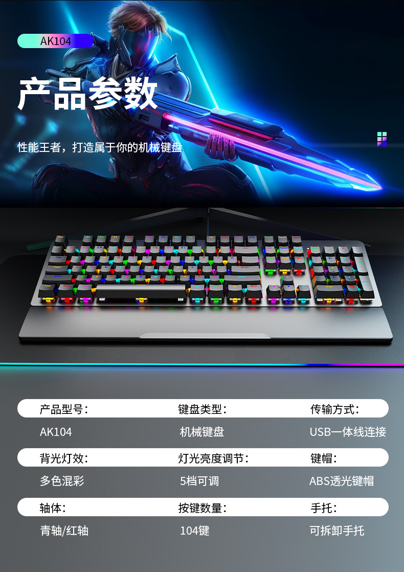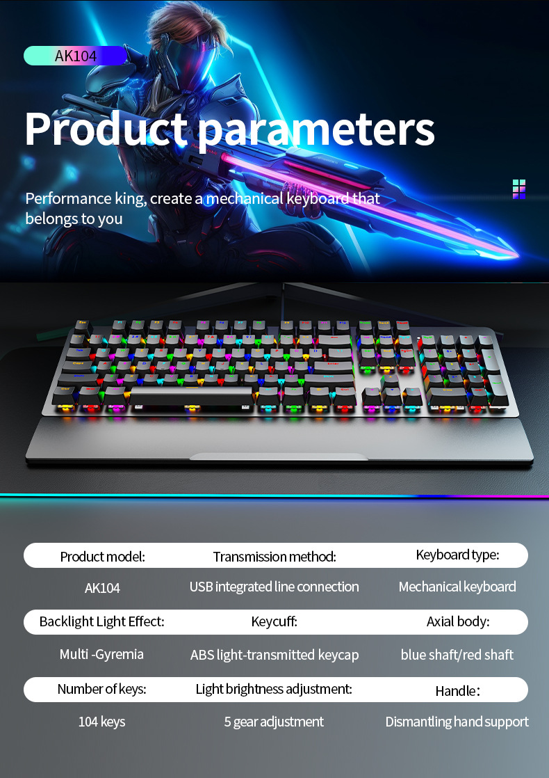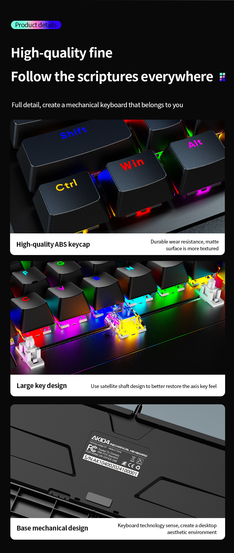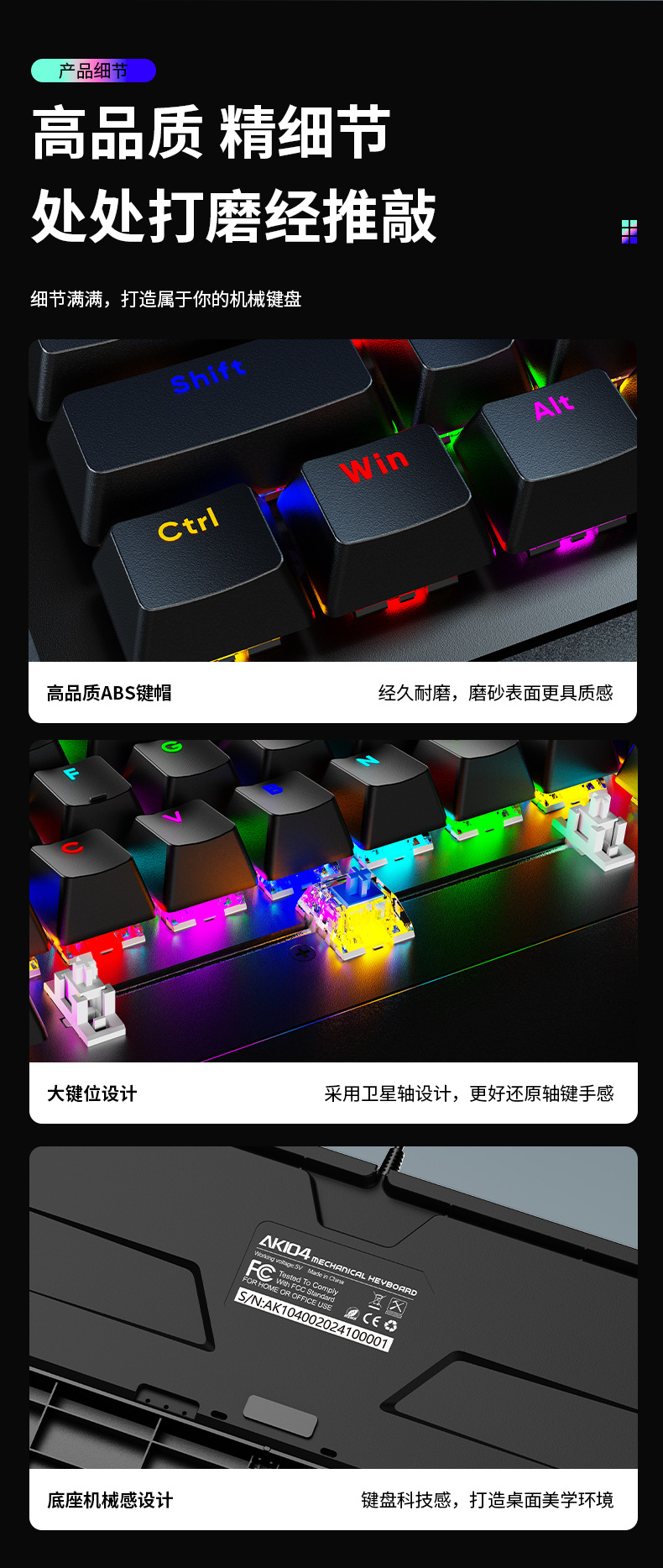 국경 간 유선 기계식 키보드 Esports 게임 컴퓨터 유선 사무실 RGB 백라이트 기계식 키보드 AK104 도매스토어 가기