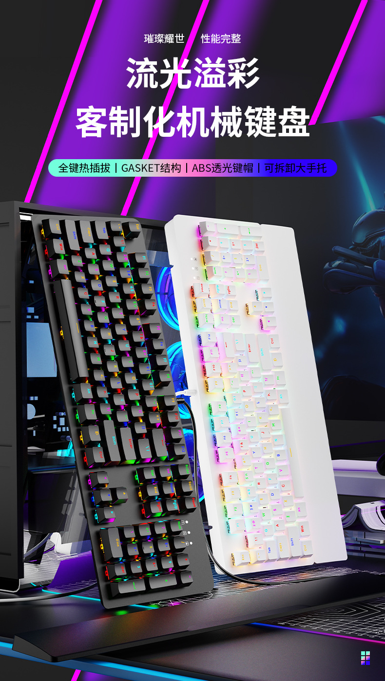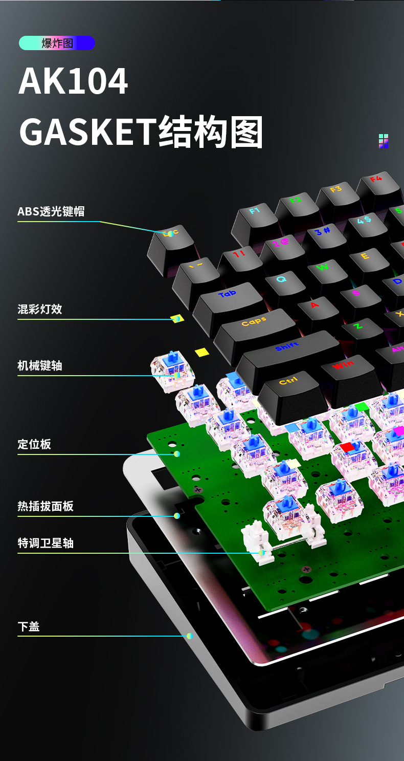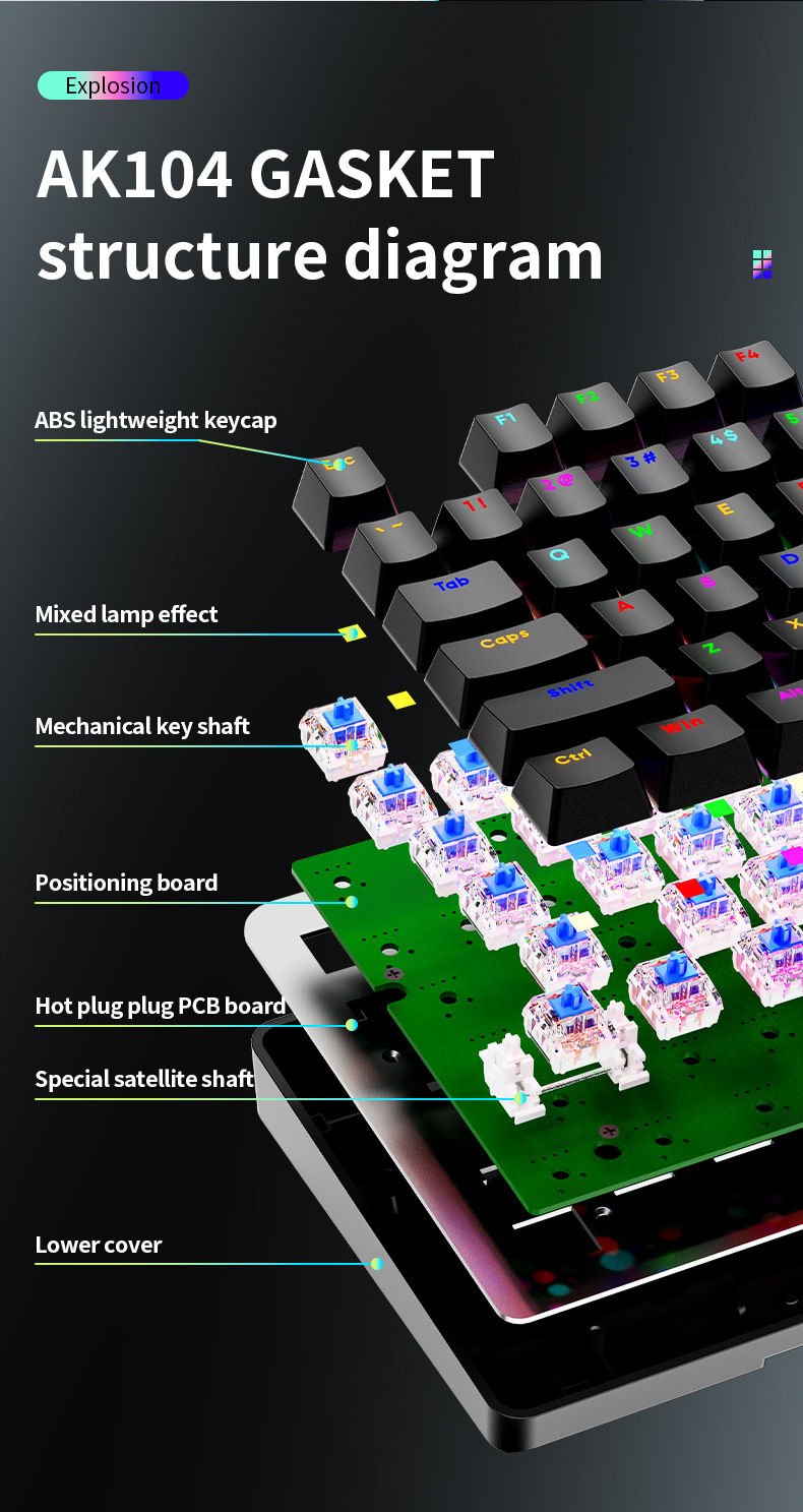 국경 간 유선 기계식 키보드 Esports 게임 컴퓨터 유선 사무실 RGB 백라이트 기계식 키보드 AK104 도매스토어 가기