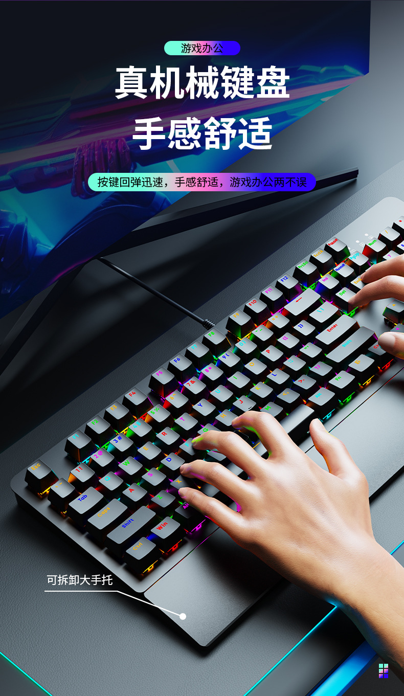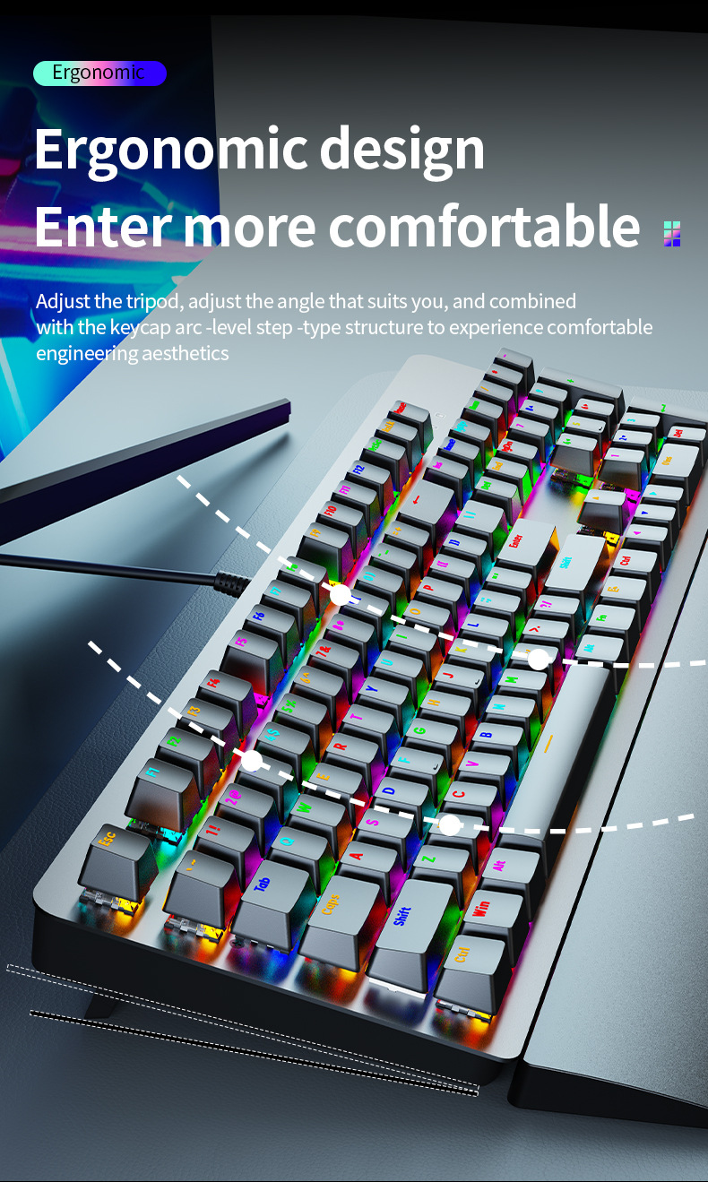 국경 간 유선 기계식 키보드 Esports 게임 컴퓨터 유선 사무실 RGB 백라이트 기계식 키보드 AK104 도매
