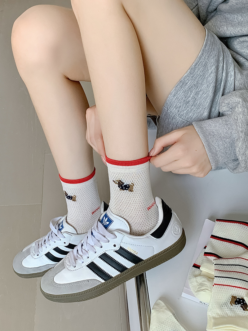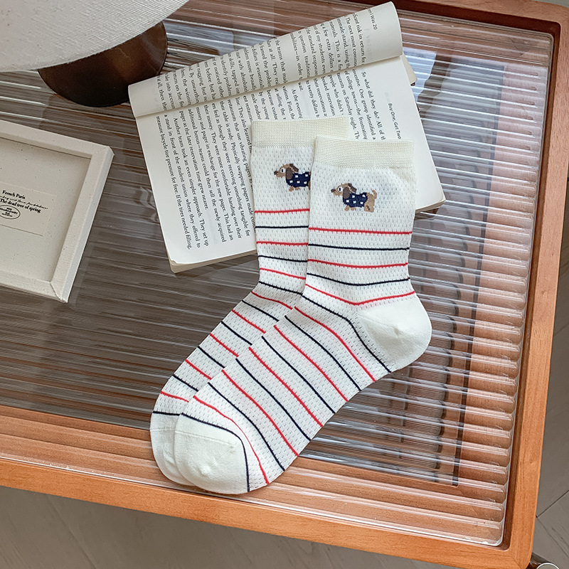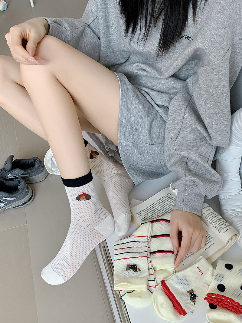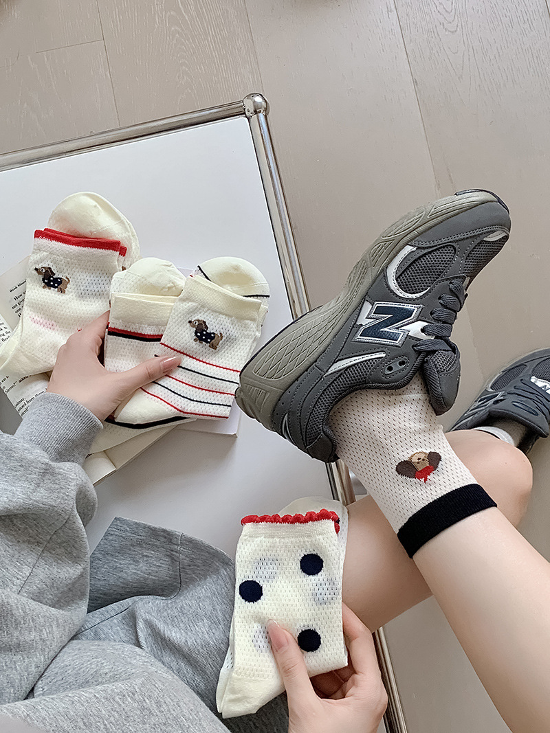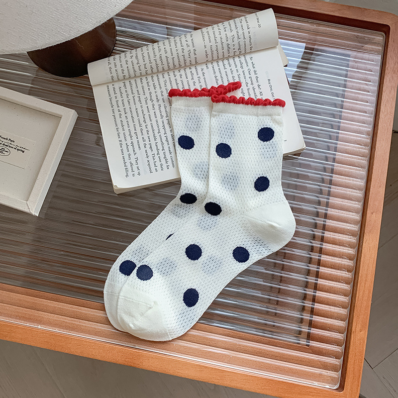 2025 어린이를위한 새로운 스타일의 미드 튜브 양말 여름 얇은 통기성 메쉬 웨이브 도트 개 여성용 양말 미드 튜브 올 매치 필 양말