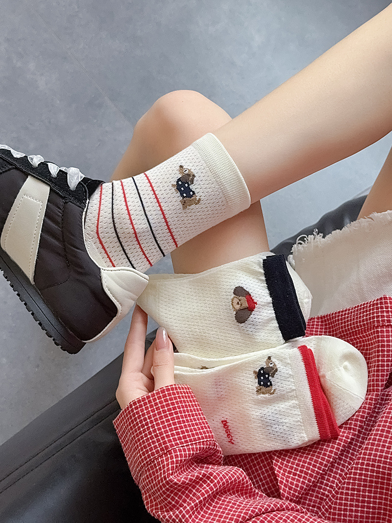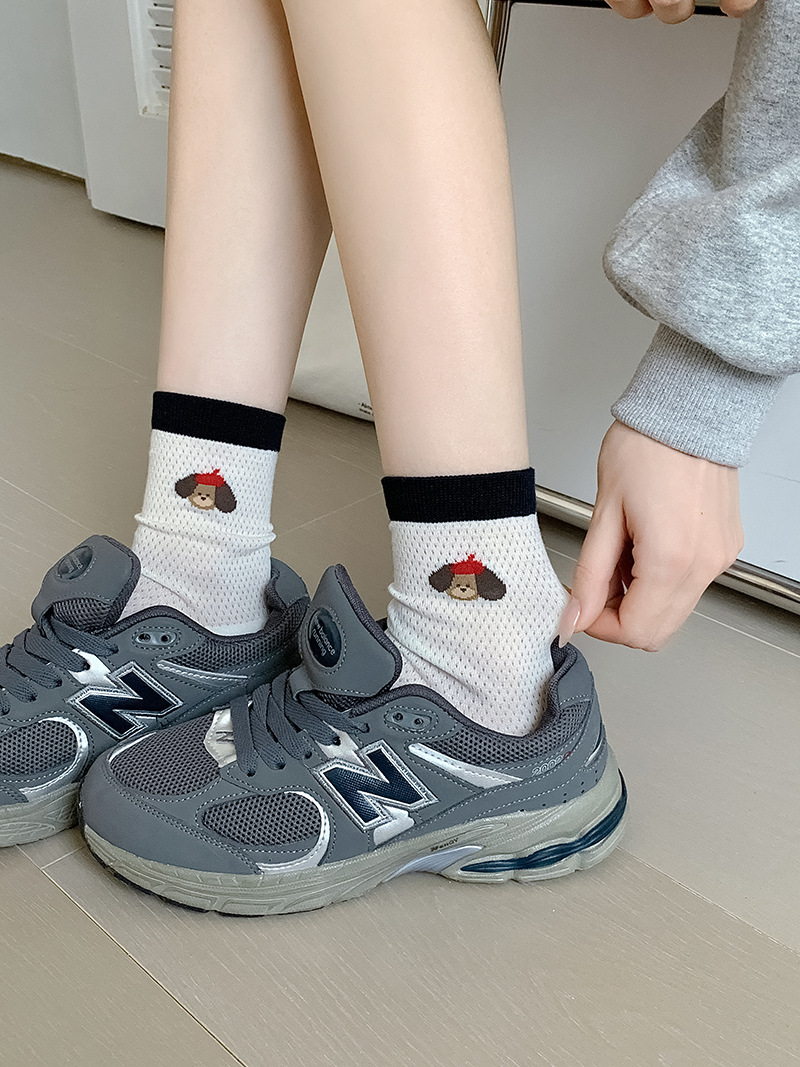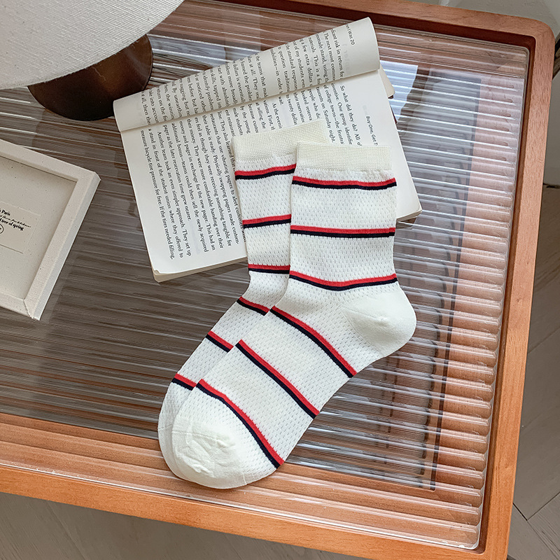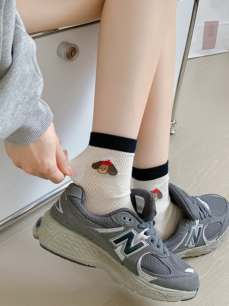 2025 어린이를위한 새로운 스타일의 미드 튜브 양말 여름 얇은 통기성 메쉬 웨이브 도트 개 여성용 양말 미드 튜브 올 매치 필 양말
