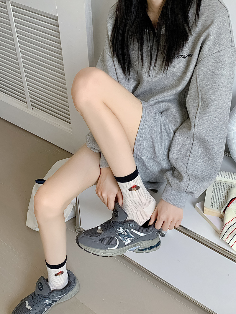 2025 어린이를위한 새로운 스타일의 미드 튜브 양말 여름 얇은 통기성 메쉬 웨이브 도트 개 여성용 양말 미드 튜브 올 매치 필 양말스토어 가기