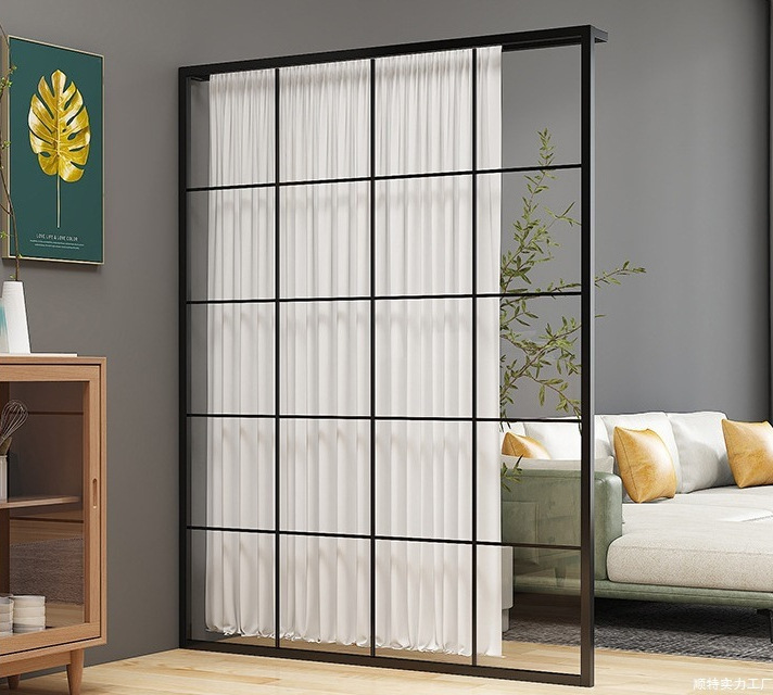 가정용 북유럽 스타일 철 파티션 스크린 거실 입구 뷰티 샵 파티션 벽 간단한 블랙 프레임 장식 교수형 커튼
