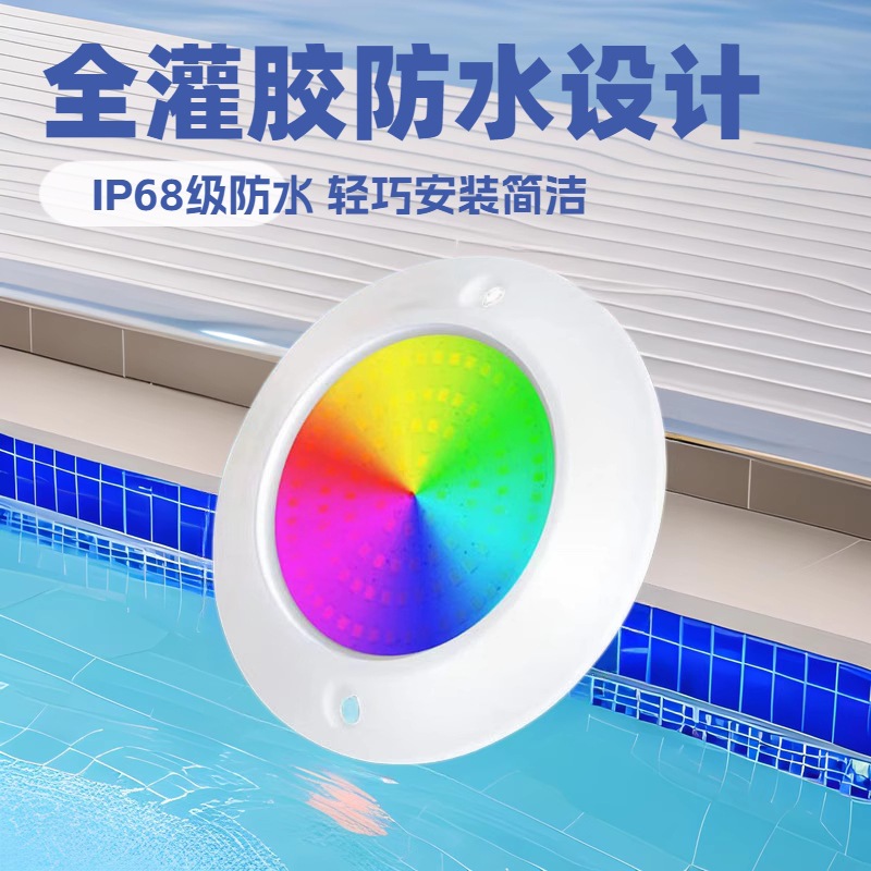 1树脂填充壁挂灯泳池灯以ABS+UV+PC透明罩为外壳 采用全树脂封装防水,防水等级系数高,观赏效果好,透光性强,方便拆卸。