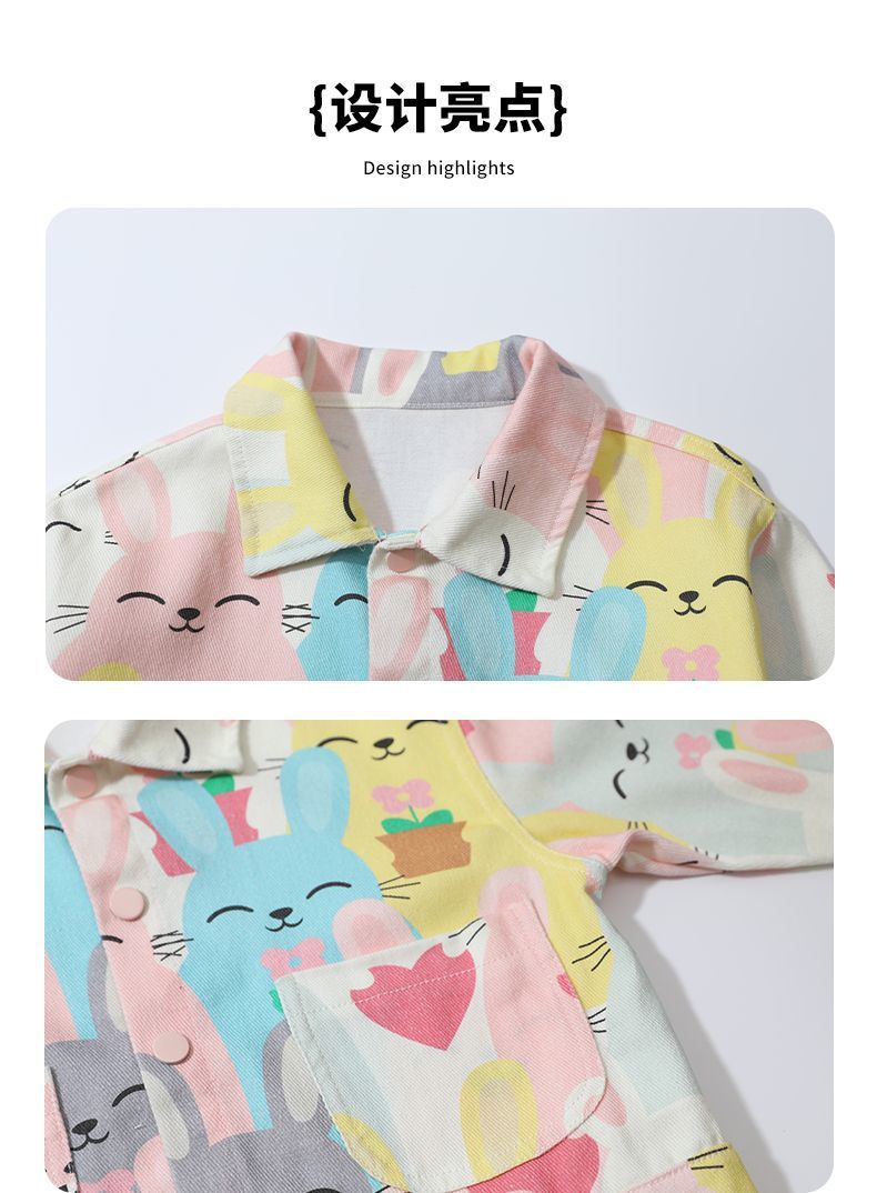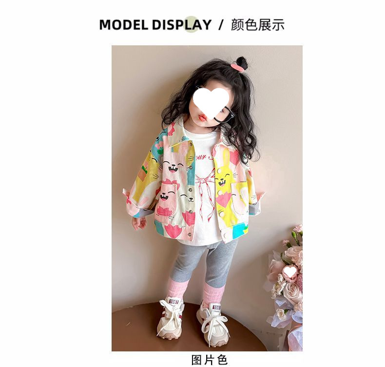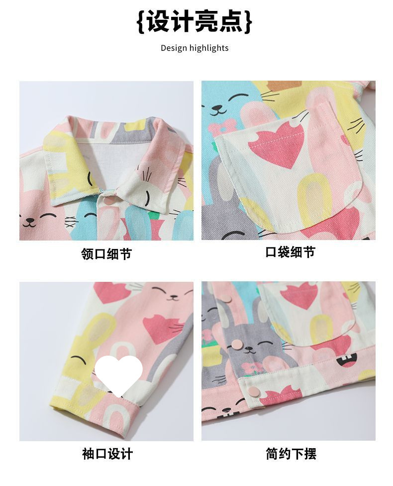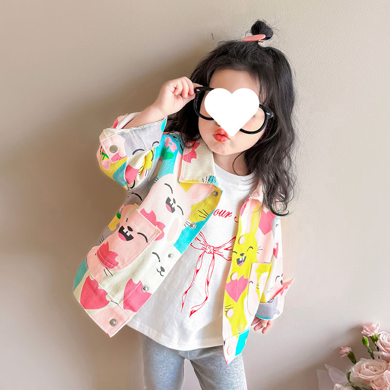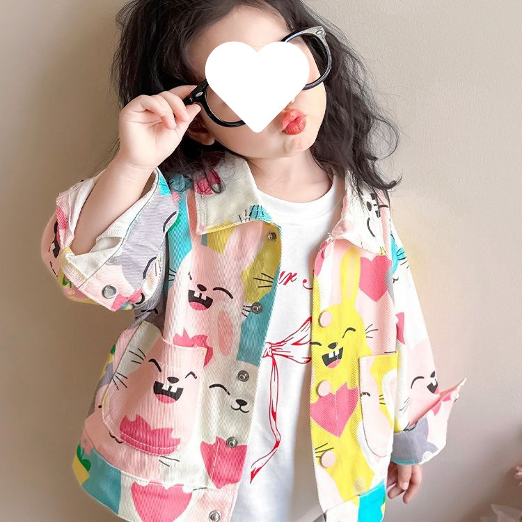 여자 낙서 데님 재킷 봄과 가을 아기 소녀 유행 캐주얼 재킷 봄 옷 어린 소녀 루즈 탑