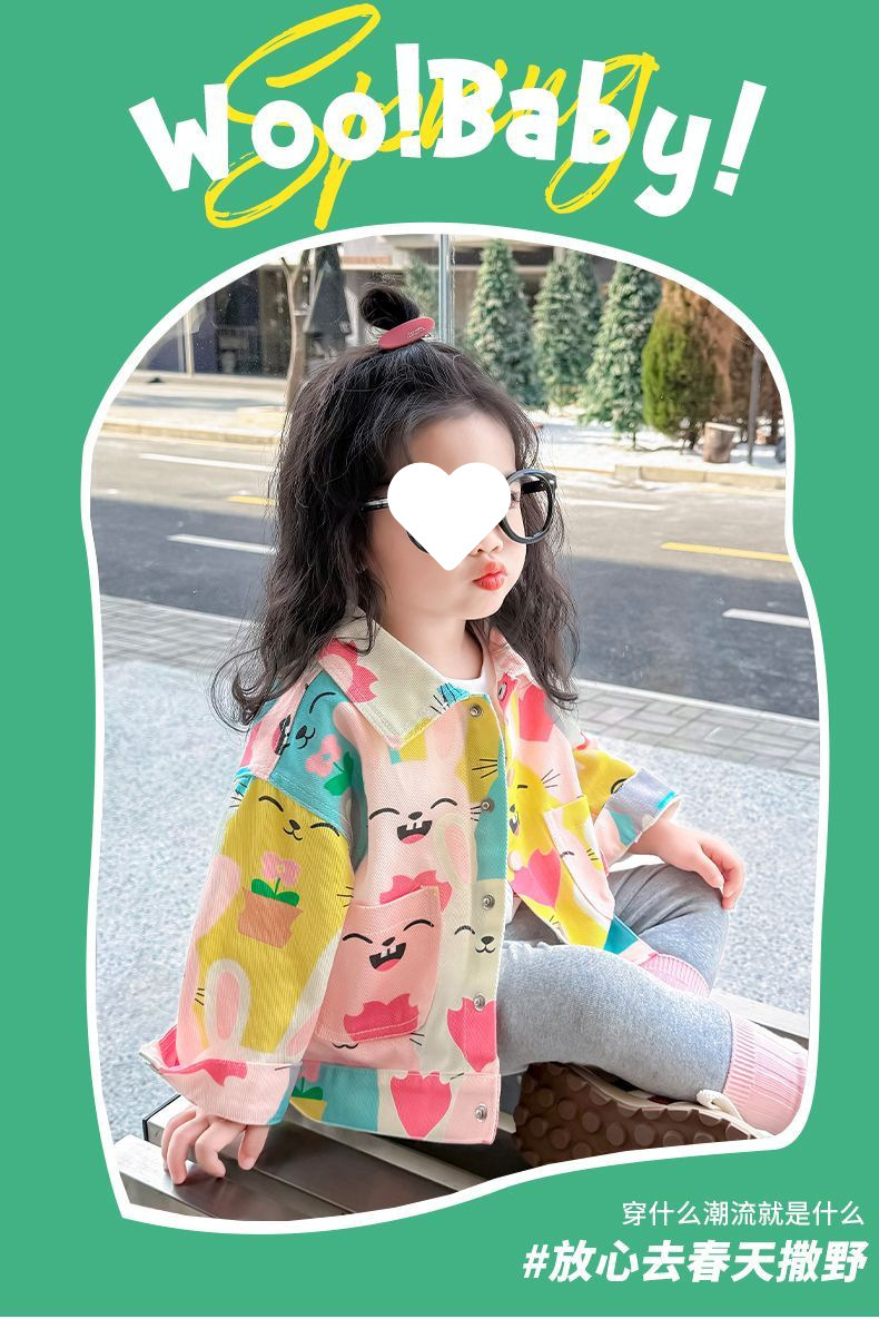 여자 낙서 데님 재킷 봄과 가을 아기 소녀 유행 캐주얼 재킷 봄 옷 어린 소녀 루즈 탑스토어 가기