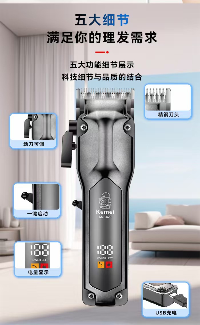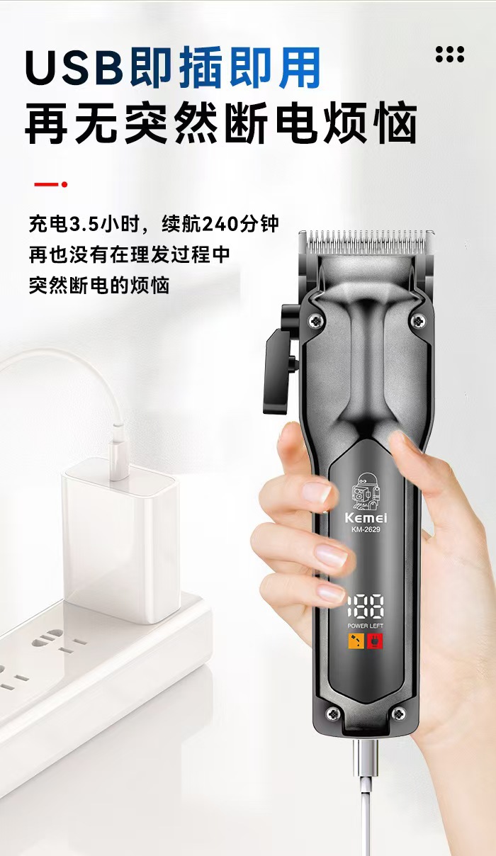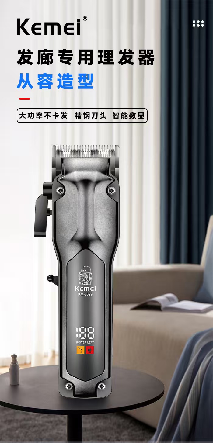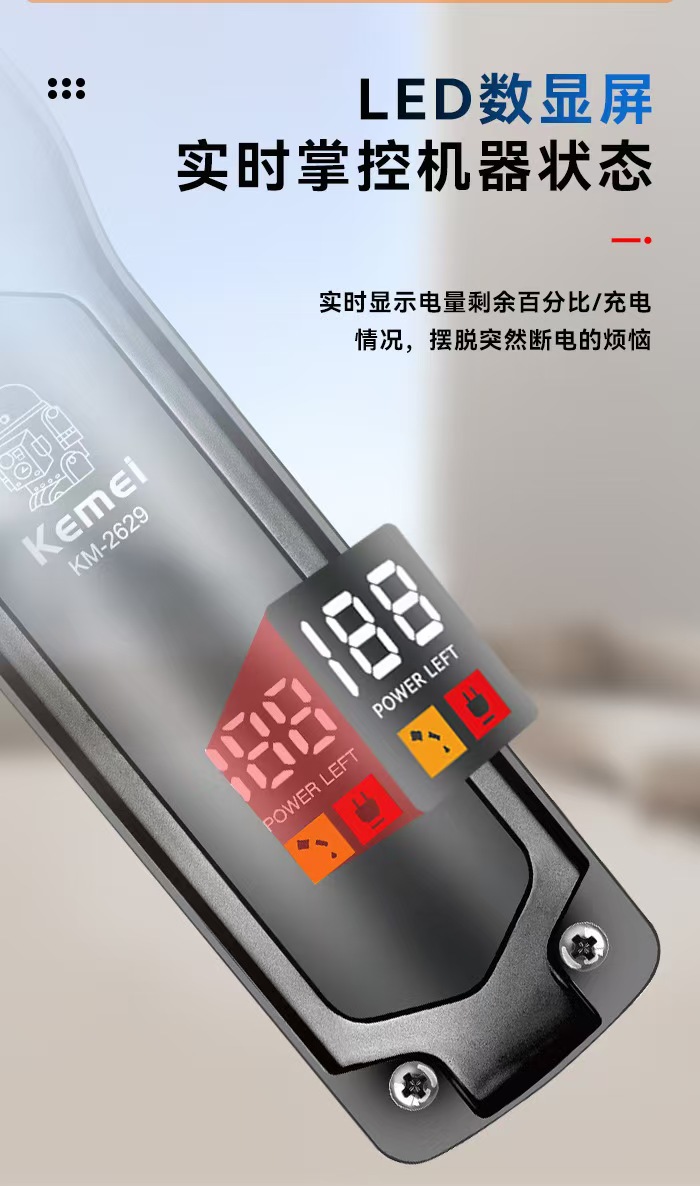 Kemei KM-2629 새로운 LCD 디지털 디스플레이 전문 이발사 이발기 면도기 이발사 등급 이발기