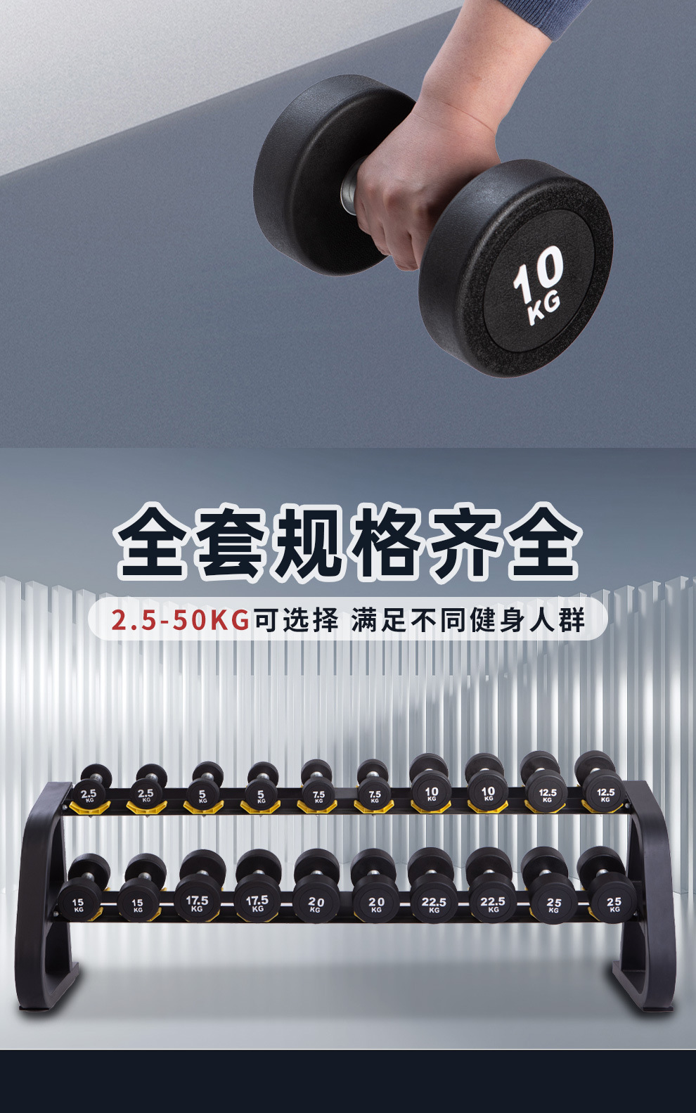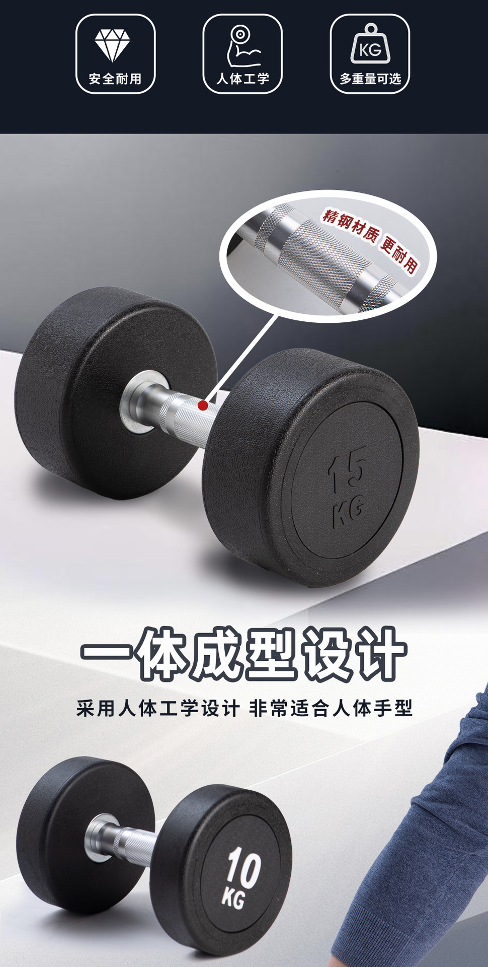도매 맞춤형 남성용 피트니스 덤벨 세트 2.5-60kg 순수 철 솔리드 5kg 원형 헤드 고무 덤벨 쌍