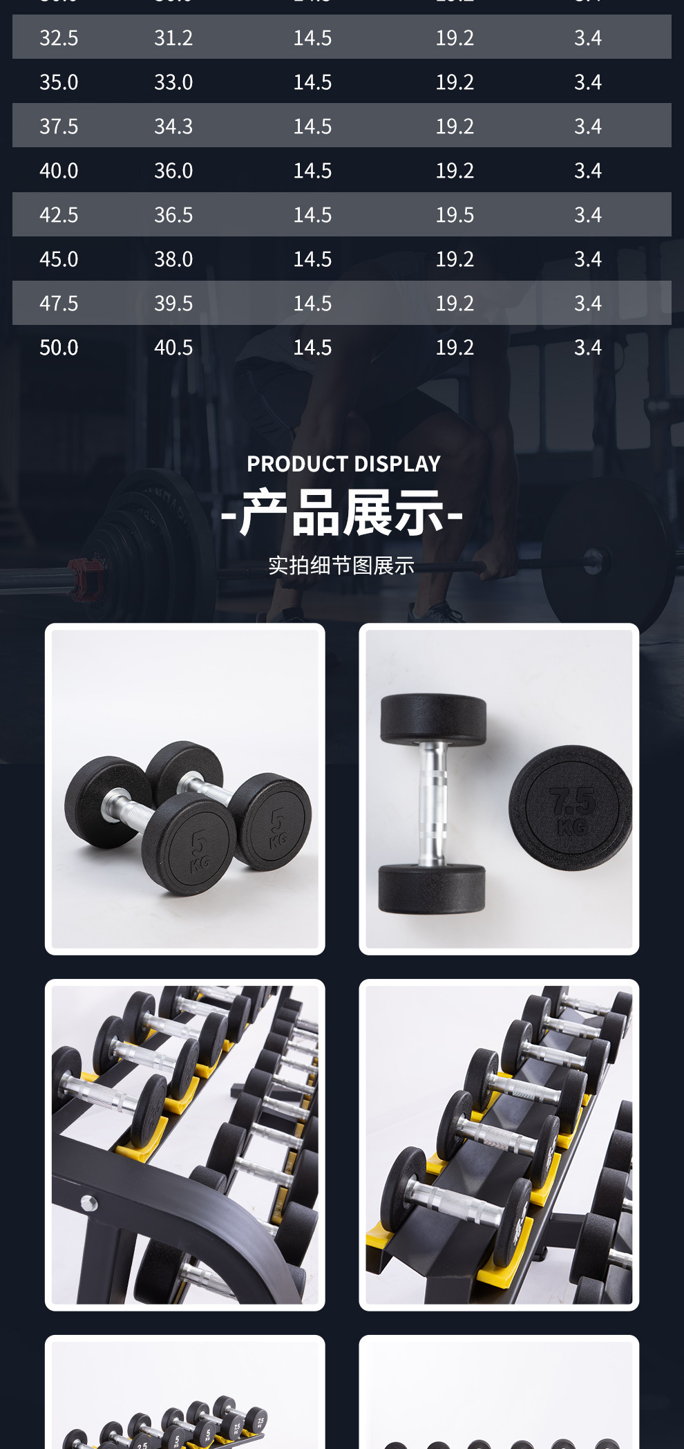 도매 맞춤형 남성용 피트니스 덤벨 세트 2.5-60kg 순수 철 솔리드 5kg 원형 헤드 고무 덤벨 쌍스토어 가기