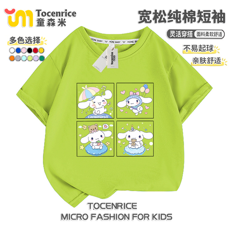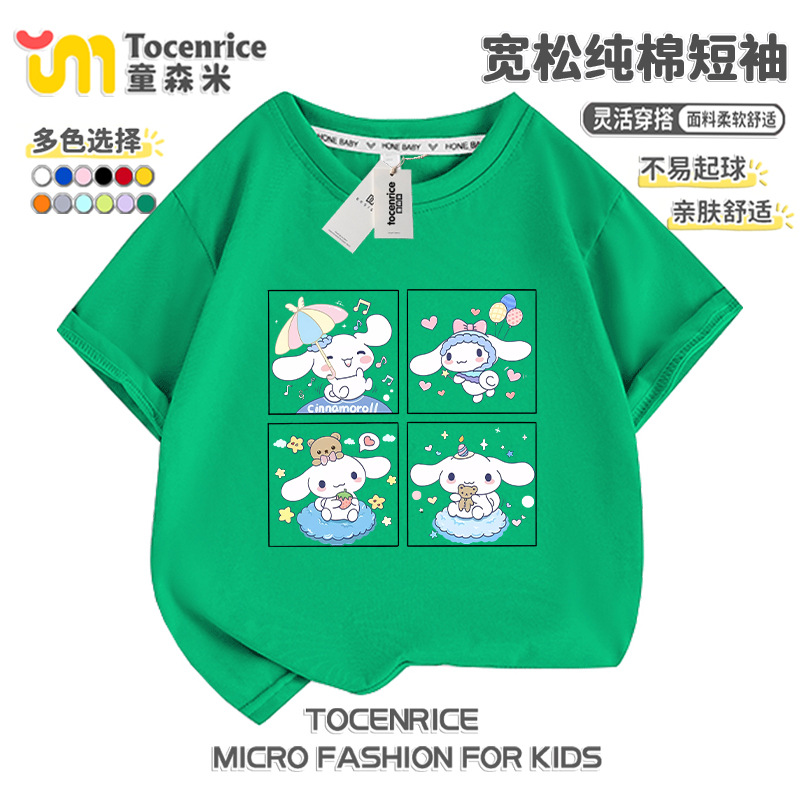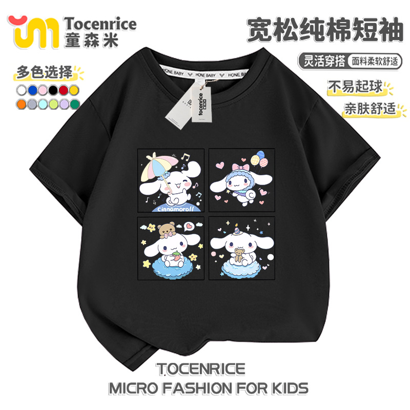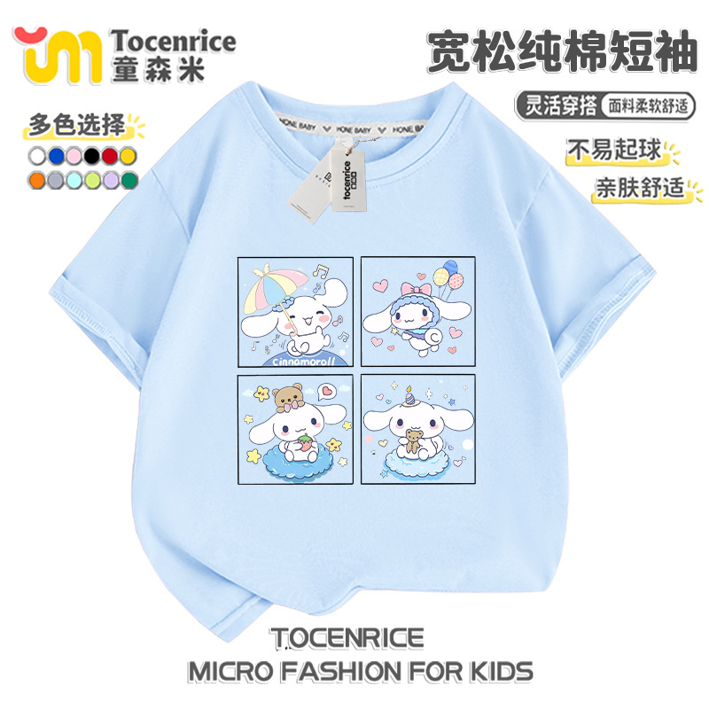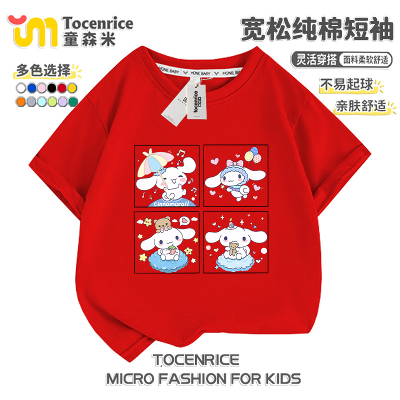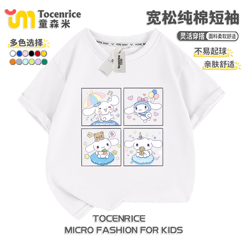 2025 새로운 계피 개 큰 귀 개 어린이 반팔 소녀 티셔츠 여름 중형 및 대형 어린이 반팔 라운드 넥 소녀 티셔츠스토어 가기
