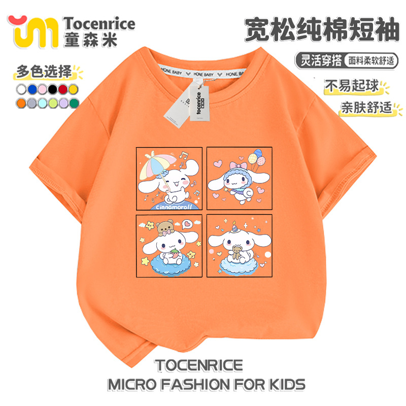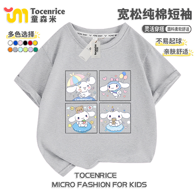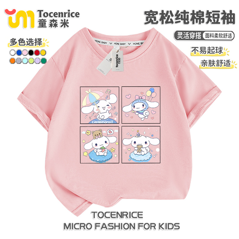 2025 새로운 계피 개 큰 귀 개 어린이 반팔 소녀 티셔츠 여름 중형 및 대형 어린이 반팔 라운드 넥 소녀 티셔츠