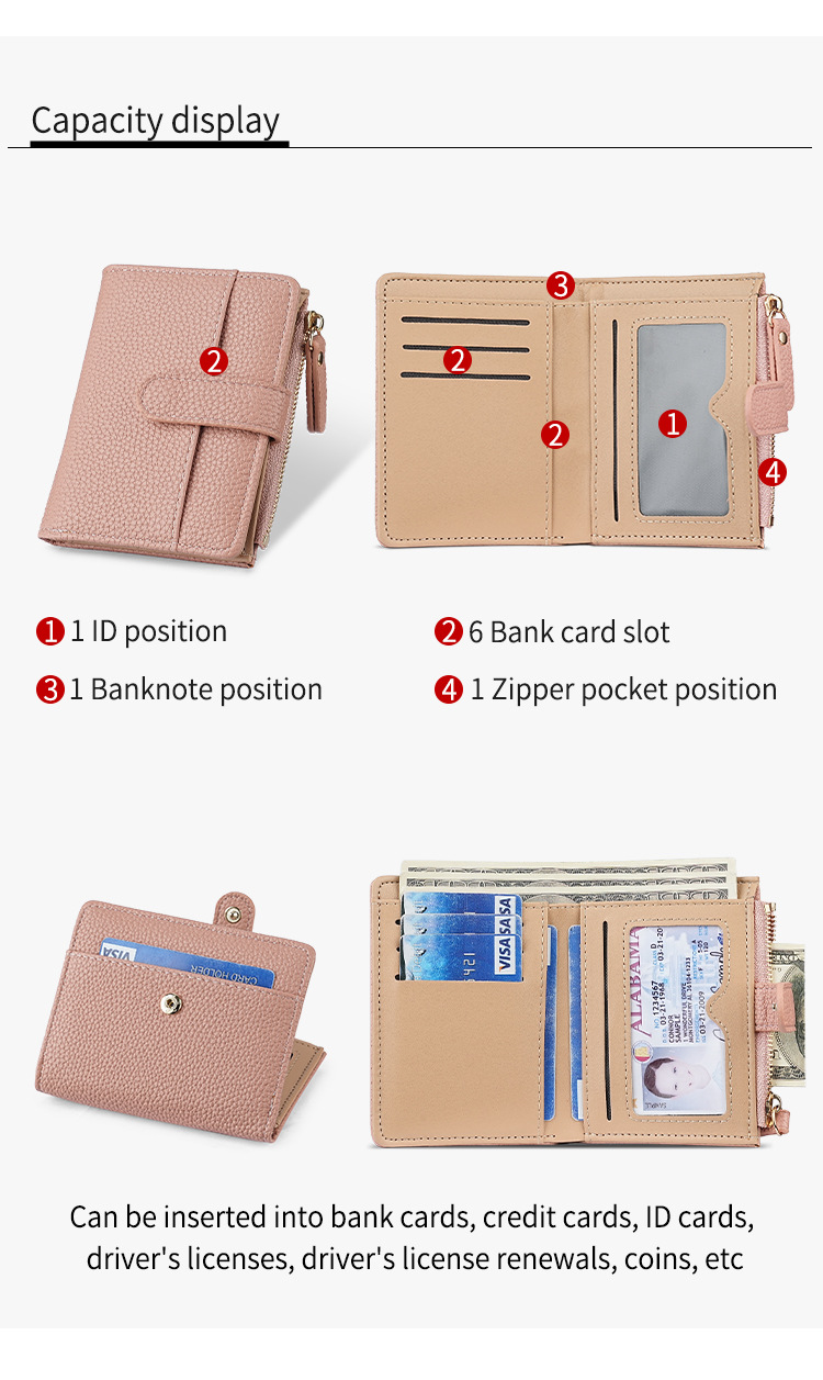 새로운 여성 지갑 짧은 국경 패션 카드 가방 여성 하이 엔드 우아한 두 배 멀티 카드 지퍼 동전 지갑스토어 가기