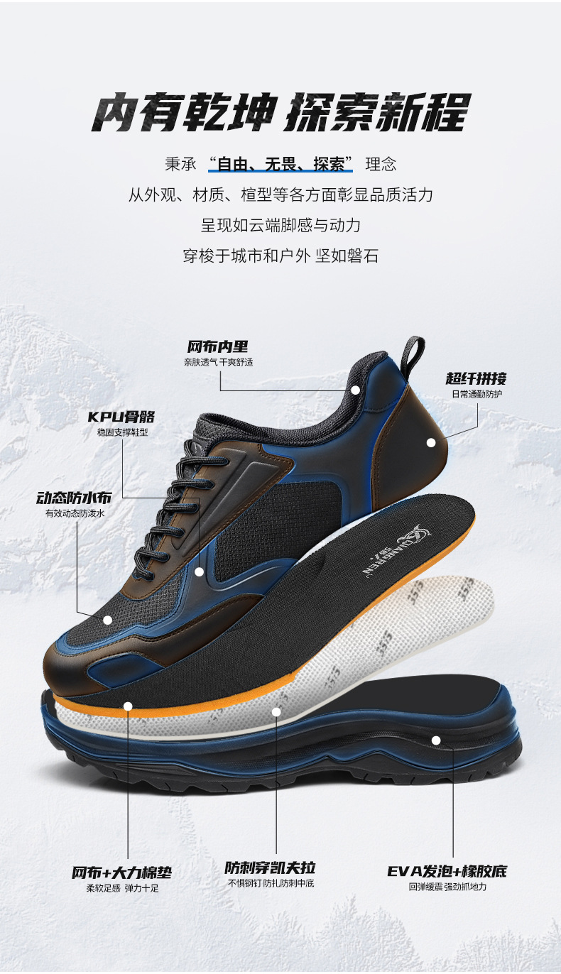 3515 강한 남자의 새로운 운동화 검은 두꺼운 밑창 하이킹 신발 야외 크로스 컨트리 하이킹 신발 펑크 방지 내마모성 남성 신발