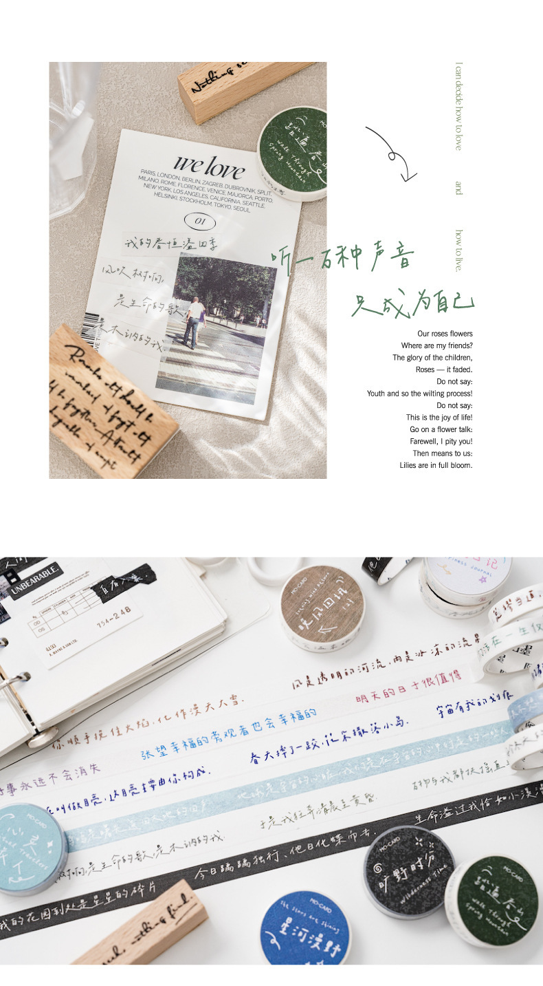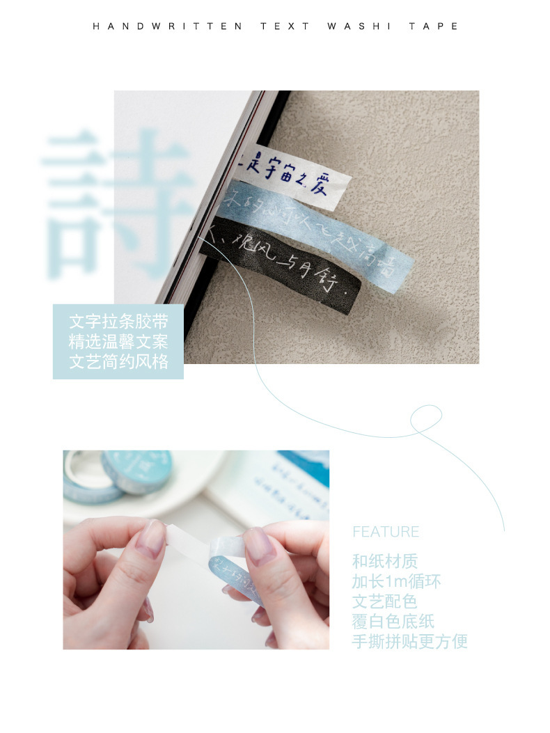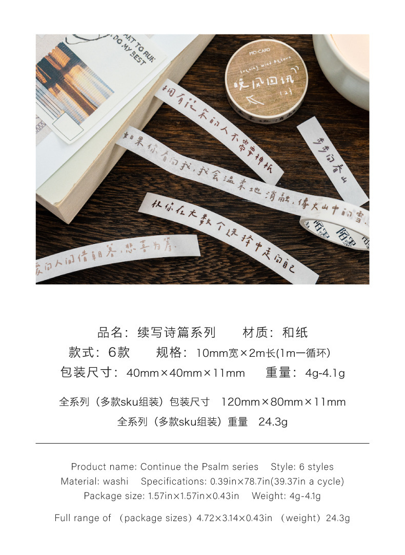 모모 일본 종이 텍스트 스트립 테이프 시 시리즈 문학 축복 핸드북 장식 콜라주 테이프