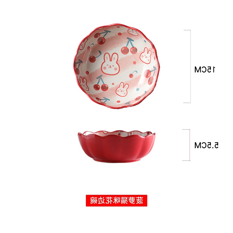 일본 손으로 그린 귀여운 체리 그릇 가정용 창조적 인 맞춤형 세라믹 그릇 과일 샐러드 그릇 밥 그릇 찜 그릇 접시