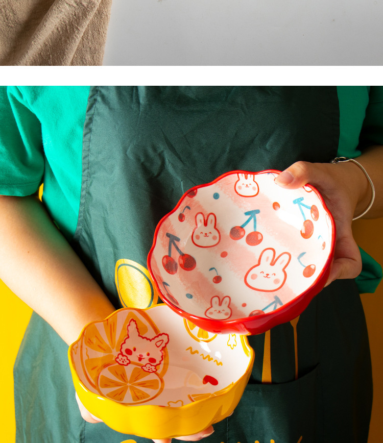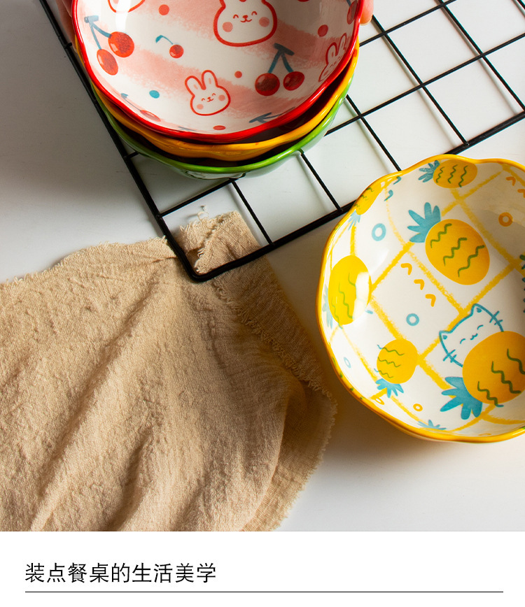 일본 손으로 그린 귀여운 체리 그릇 가정용 창조적 인 맞춤형 세라믹 그릇 과일 샐러드 그릇 밥 그릇 찜 그릇 접시스토어 가기